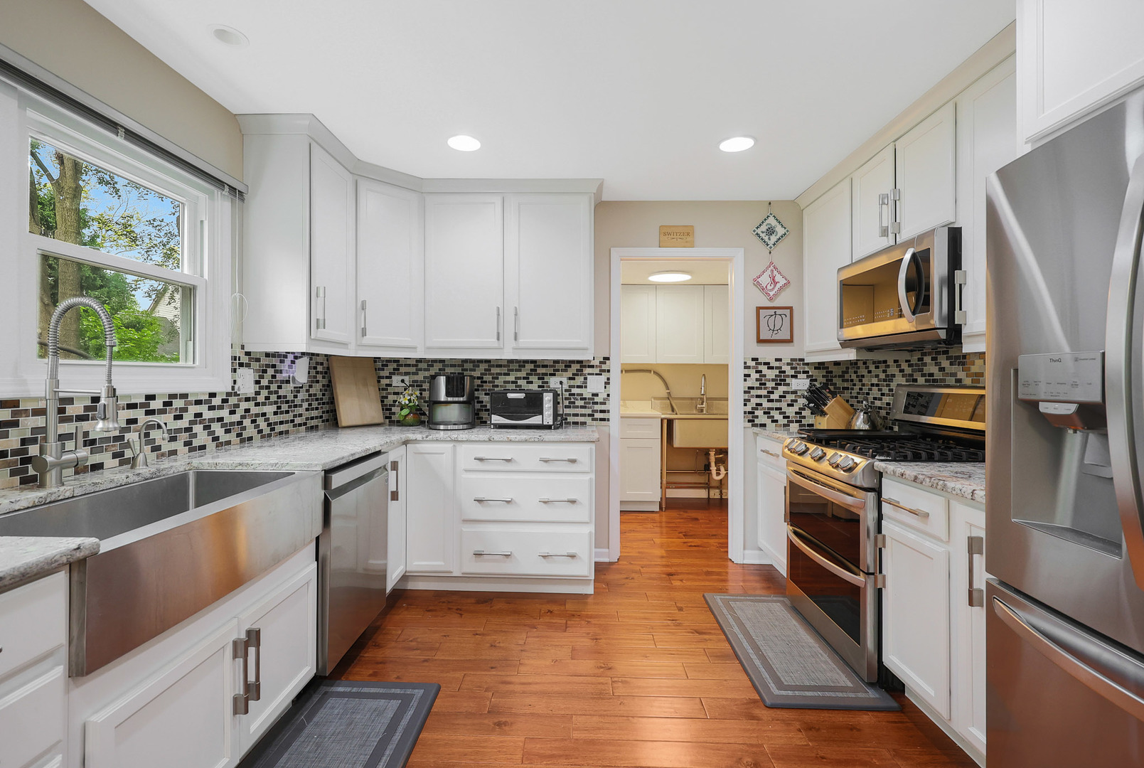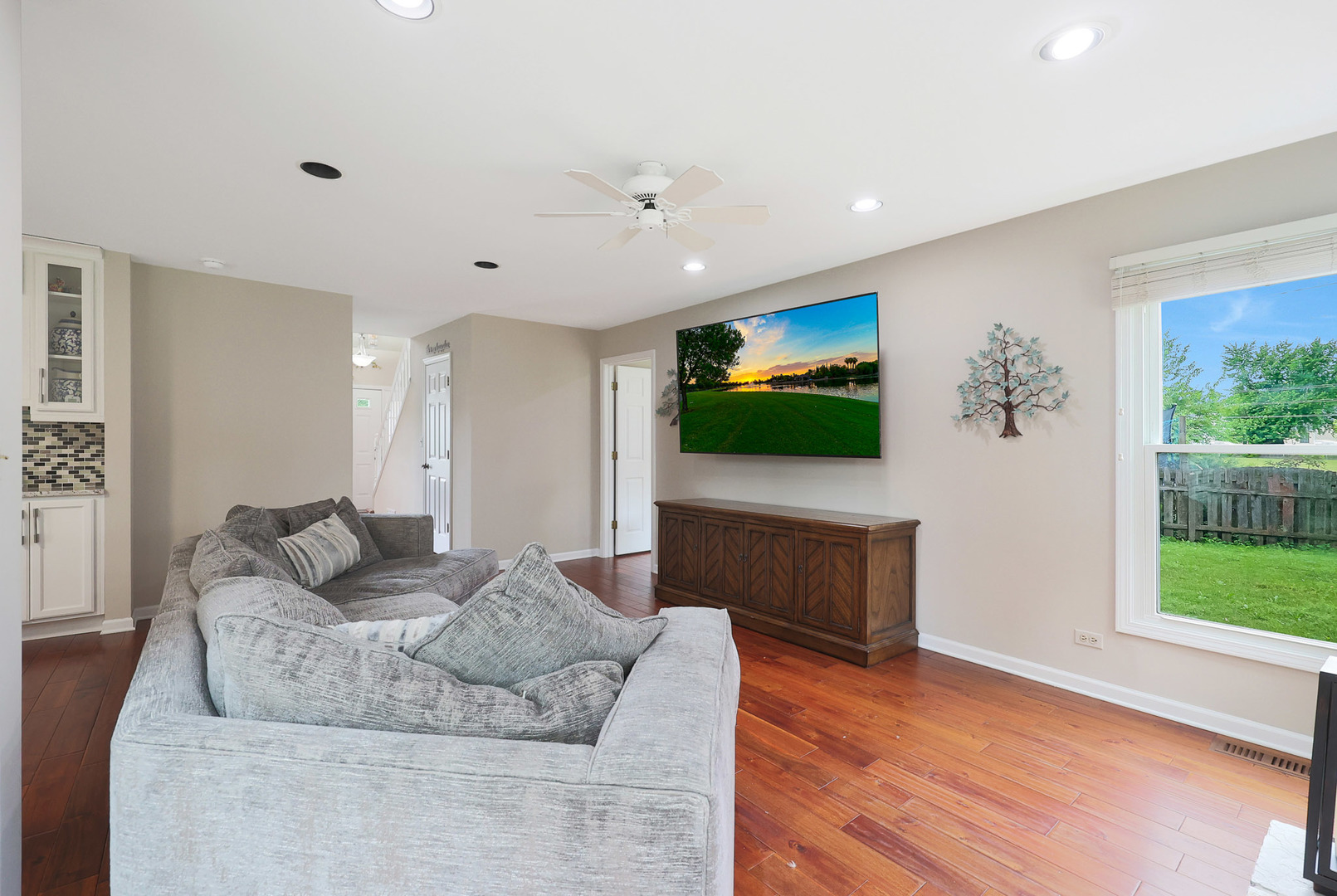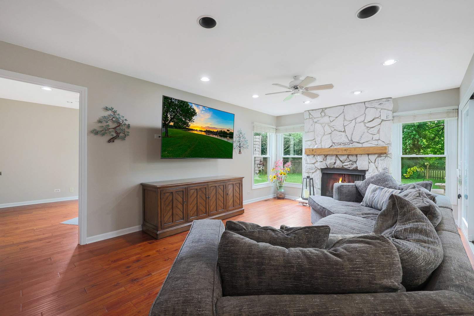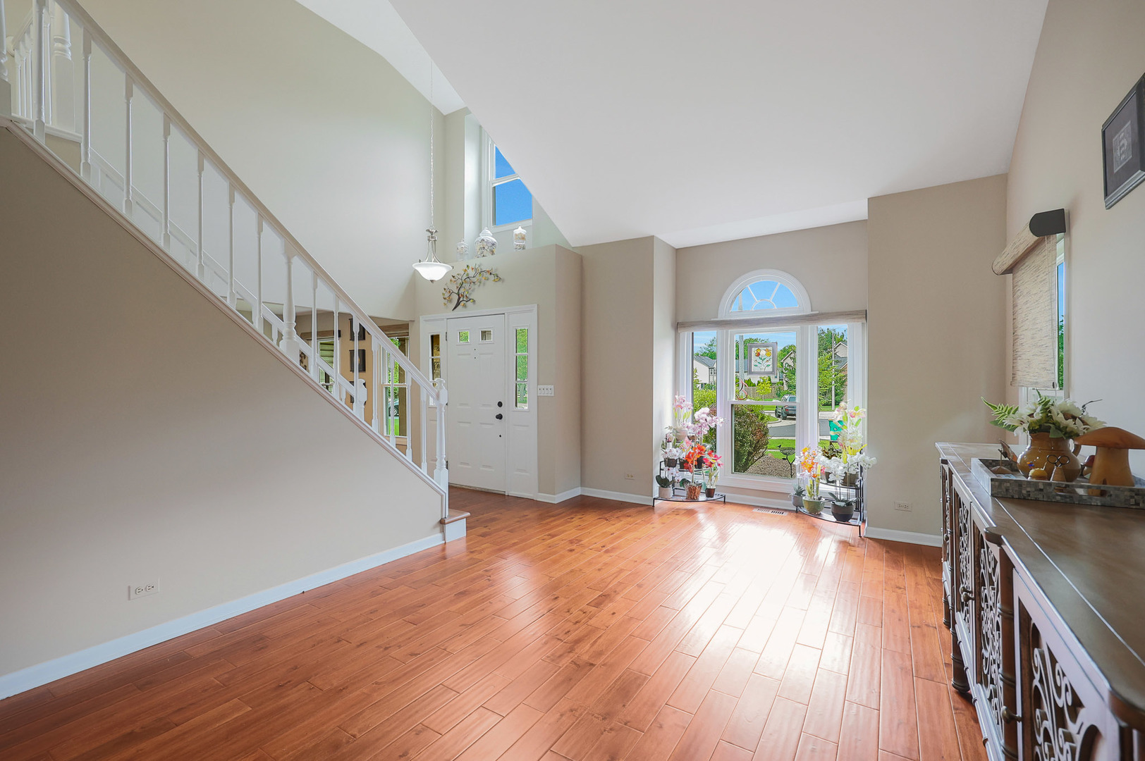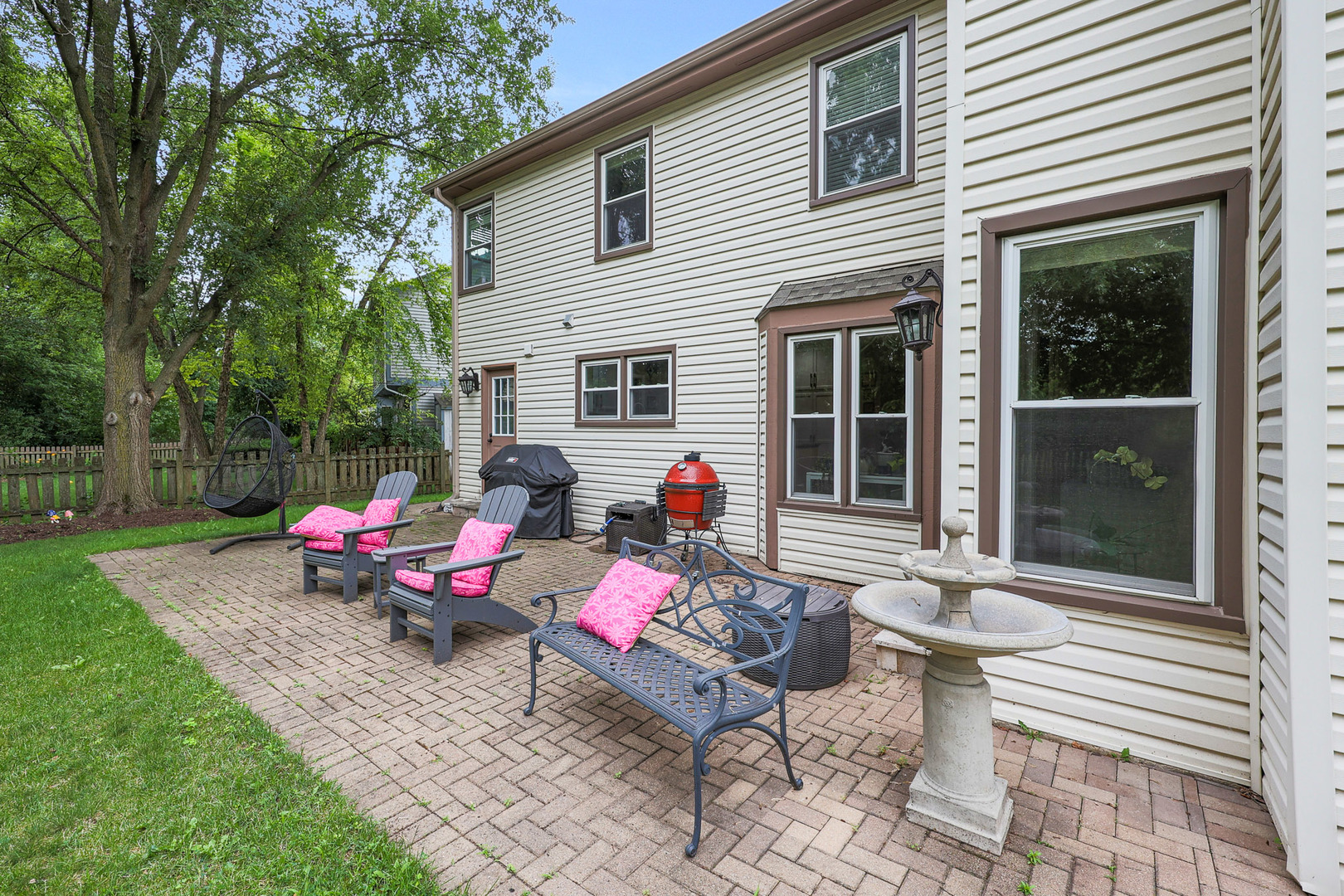 Great updated Coventry model in Old Farm Village. New white kitchen with granite countertop, new stainless appliances including a double oven, and space for eating. Flow through from the kitchen into the family room with a fireplace adjacent to first floor office. Formal living room with built-in shelving plus a spacious formal dining room. Renovated laundry room with new top end LG washer & dryer and stainless steel laundry sink. Updated powder room with new vanity and fixture. First floor has hardwood floors throughout and new fixtures. Large master with walk-in closet, fireplace, and master bath with skylight. 3 additional good size bedrooms. Second floor has new luxury vinyl flooring. Spacious finished basement with built-in shelving. New battery back-up sump pumps, new hot water heater. Brand new roof. Enjoy your own vast forest oasis in the fenced in backyard with a brick patio and fire pit to enjoy every season. Award-Winning Elementary District 102 and Stevenson High School.