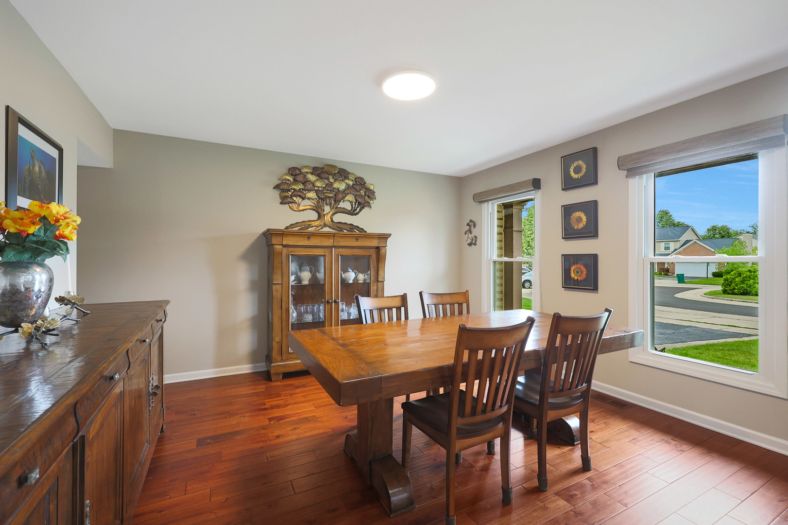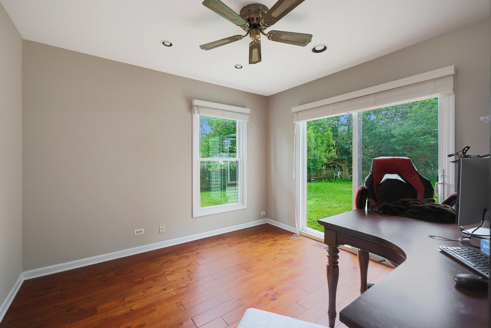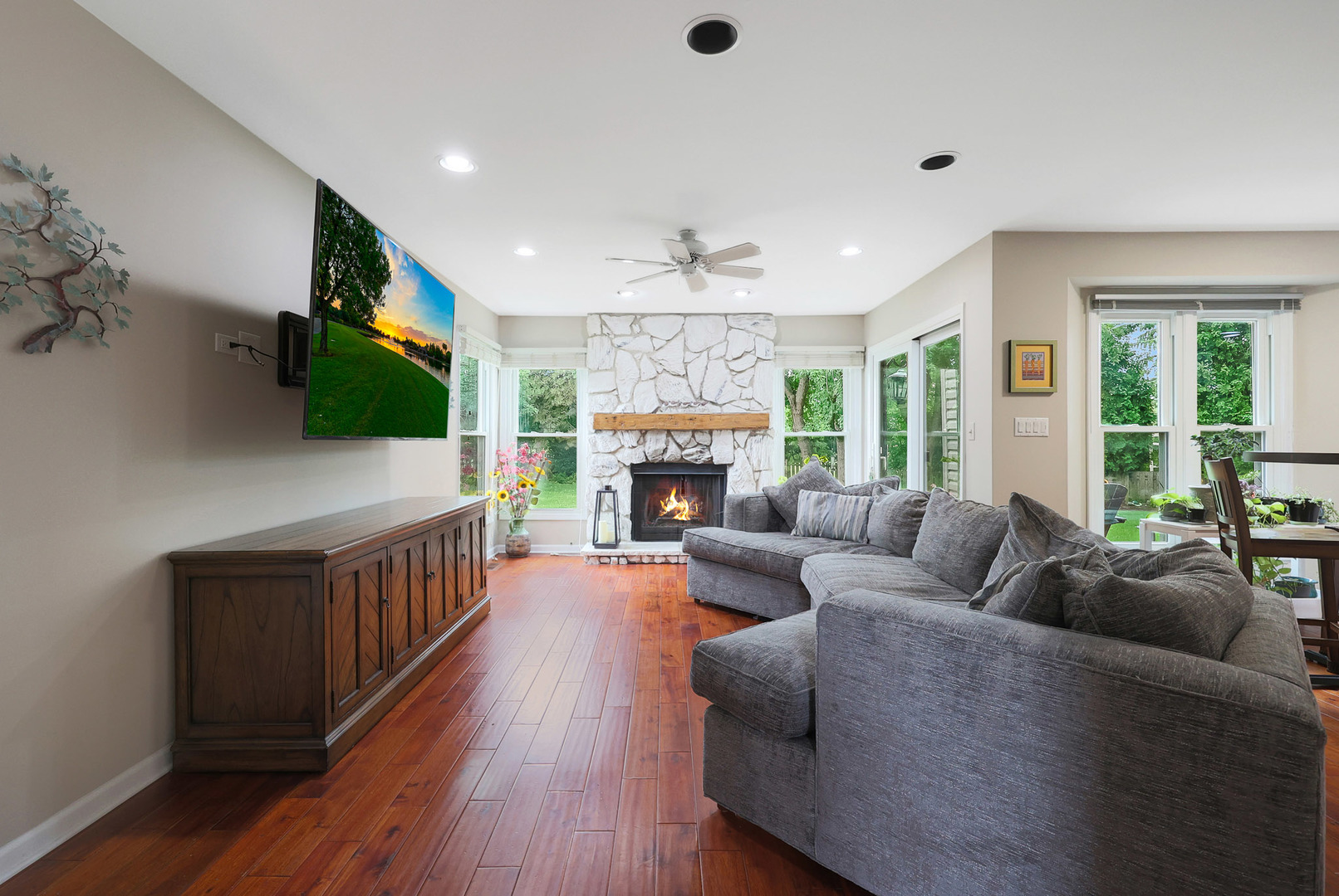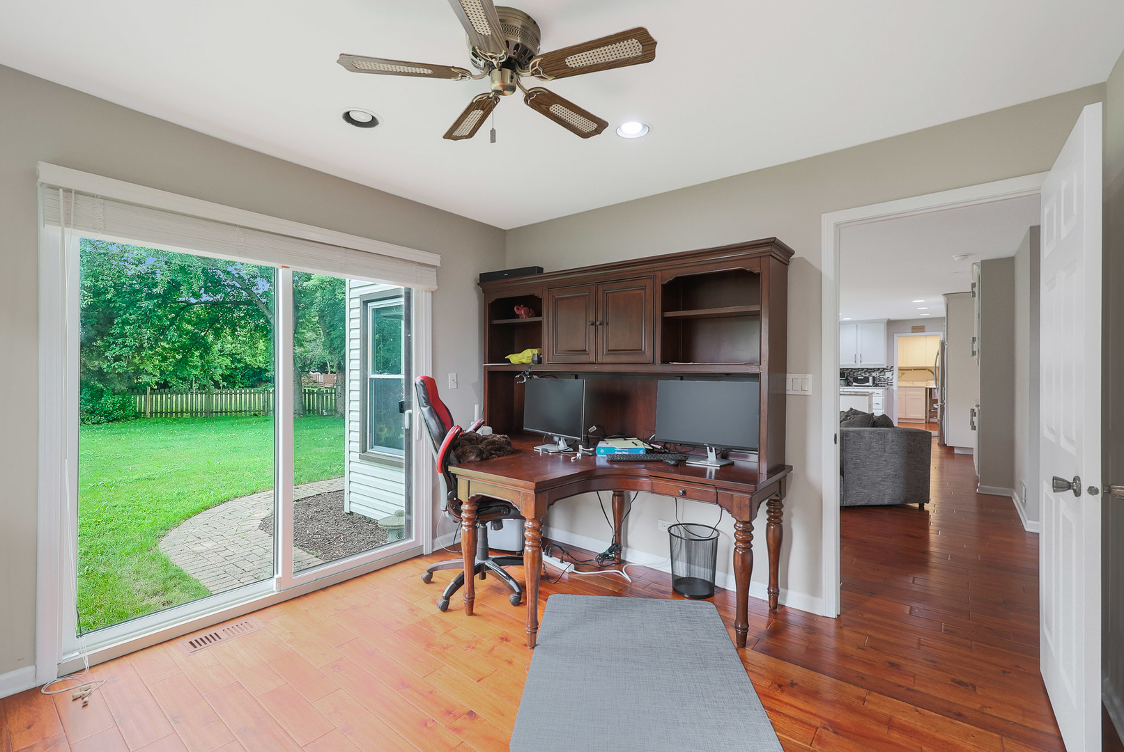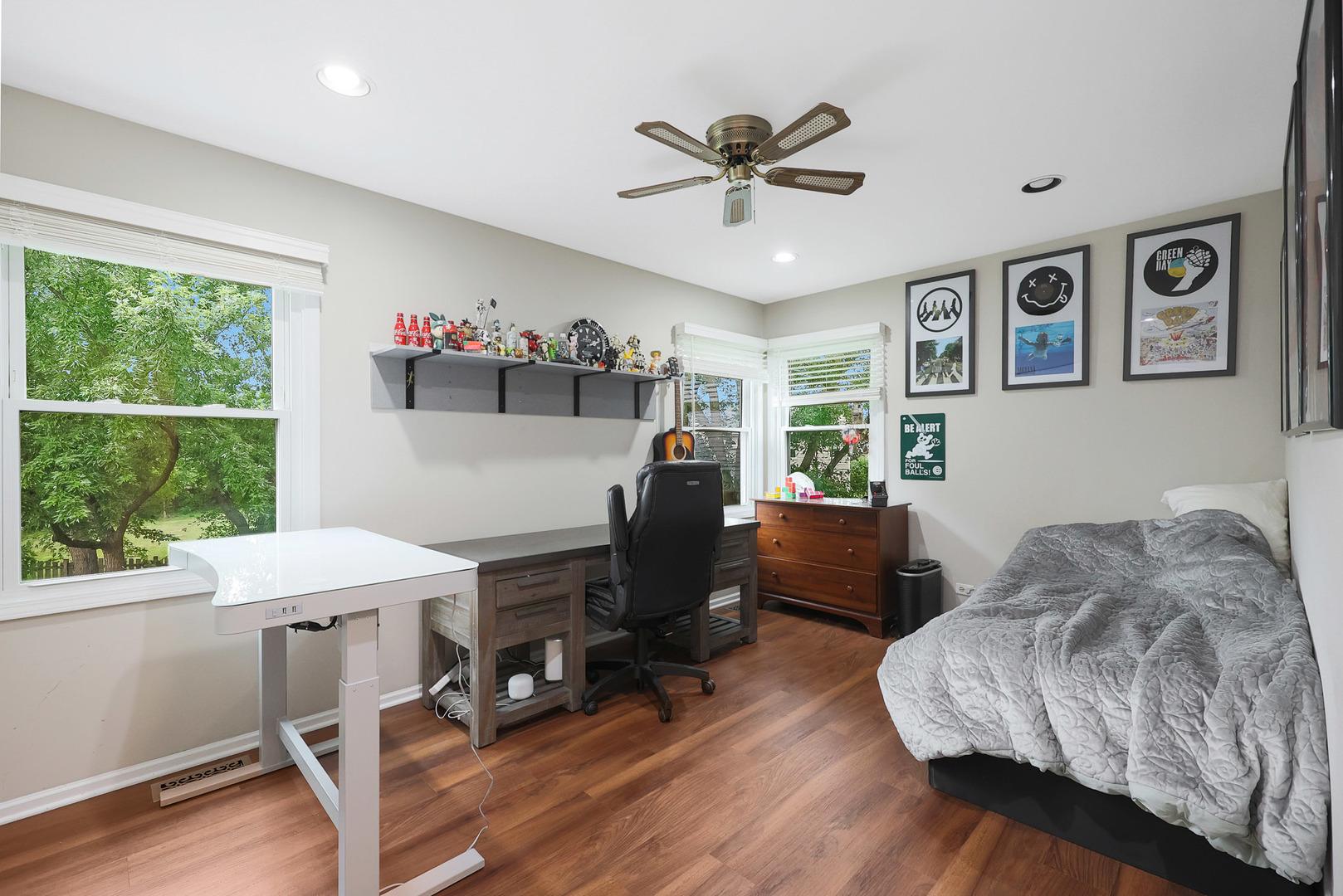 Great updated Coventry model in Old Farm Village. New white kitchen with granite countertop, new stainless appliances including a double oven, and space for eating. Flow through from the kitchen into the family room with a fireplace adjacent to first floor office. Formal living room with built-in shelving plus a spacious formal dining room. Renovated laundry room with new top end LG washer & dryer and stainless steel laundry sink. Updated powder room with new vanity and fixture. First floor has hardwood floors throughout and new fixtures. Large master with walk-in closet, fireplace, and master bath with skylight. 3 additional good size bedrooms. Second floor has new luxury vinyl flooring. Spacious finished basement with built-in shelving. New battery back-up sump pumps, new hot water heater. Brand new roof. Enjoy your own vast forest oasis in the fenced in backyard with a brick patio and fire pit to enjoy every season. Award-Winning Elementary District 102 and Stevenson High School.