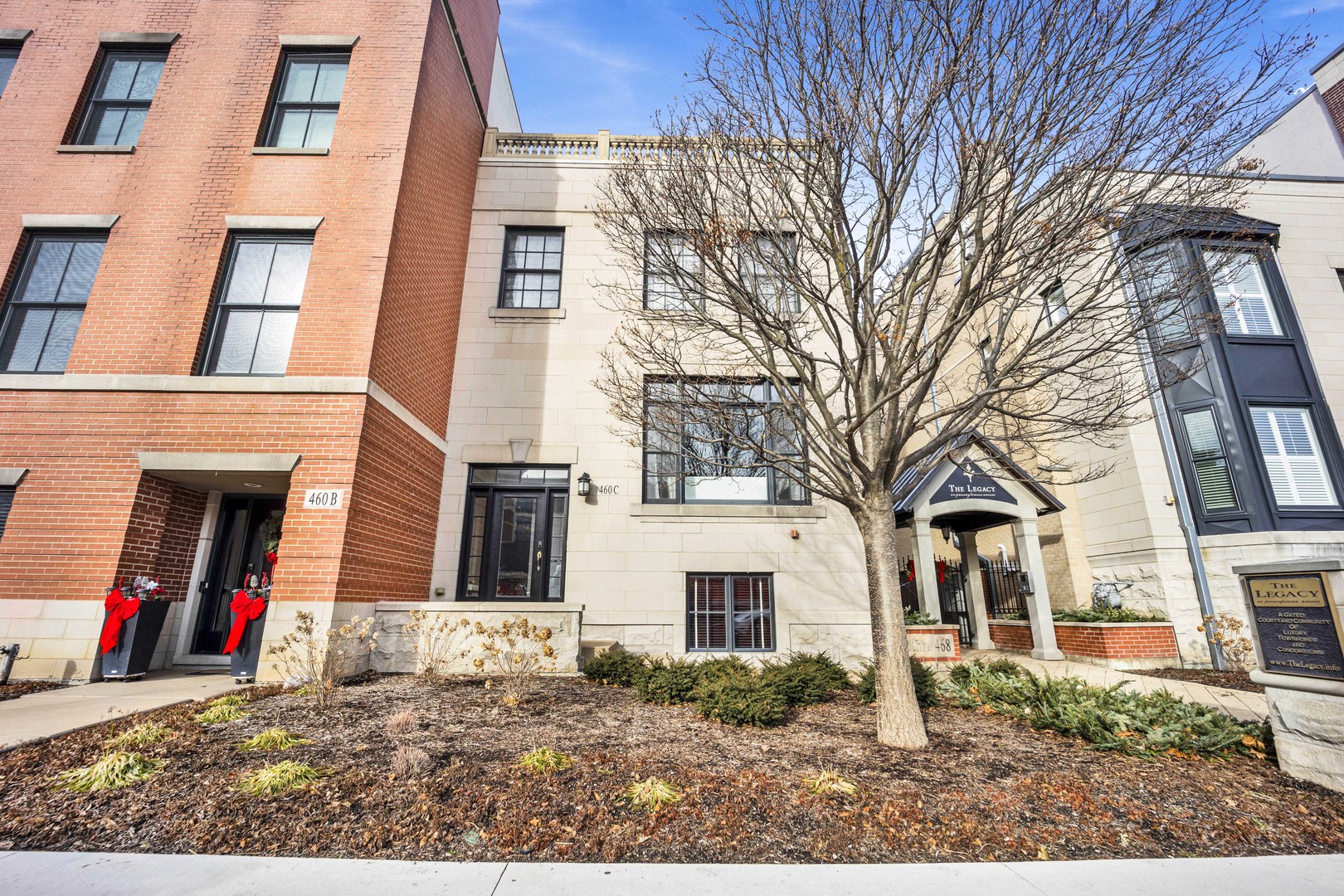 Stylish and Modern Corner Townhome in the heart of downtown Glen Ellyn! Come see this south-facing 2-bedroom + den offering contemporary design, luxurious finishes, and exceptional outdoor spaces. The open-concept main level is perfect for entertaining, featuring a bright, designer kitchen with granite countertops, custom cabinetry, stainless steel appliances, and a large island with breakfast bar. The adjacent dining area opens to a private terrace, ideal for morning coffee or evening relaxation. Hardwood floors flow throughout the main level, which also includes a guest powder room. Upstairs, the primary suite boasts a walk-in closet and a spa-like bath with a jetted tub, separate shower, and dual vanities. A spacious second bedroom with a private en-suite bath completes the upper level. The lower-level den offers flexibility as a home office, fitness room, or additional living space. Enjoy unbeatable outdoor living with a private rooftop deck, complete with a pergola and views of charming downtown Glen Ellyn. Additional highlights include an attached 2-car garage, plenty of storage, and an unbeatable in-town location close to dining, shopping, and schools. This townhome is the perfect blend of style, comfort, and convenience. Don’t miss it!
