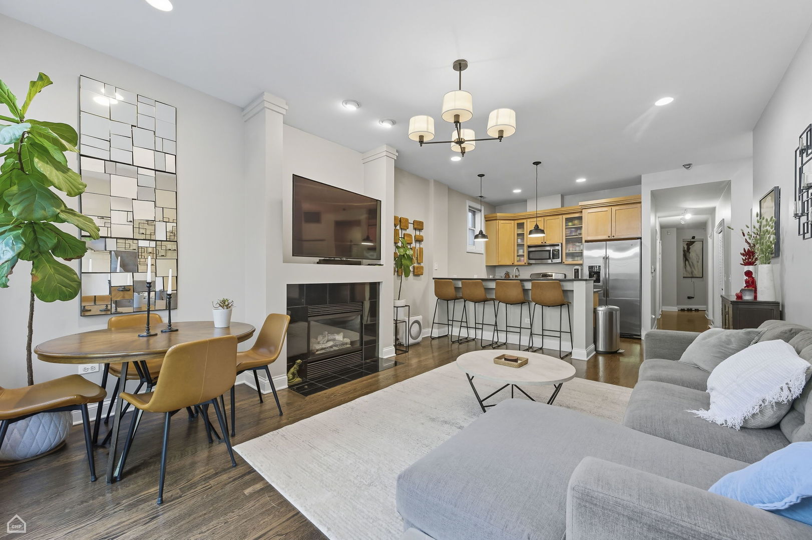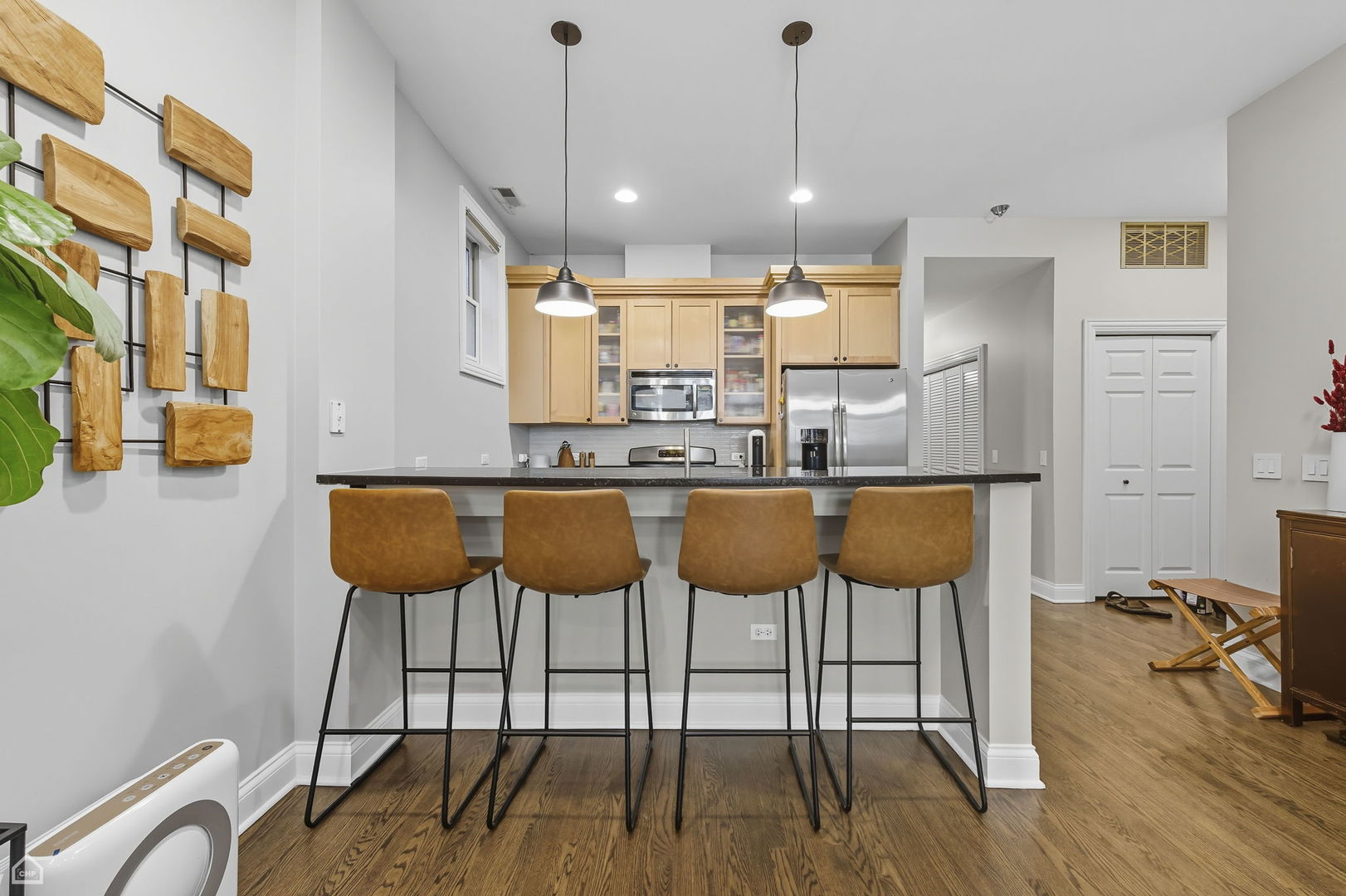 Welcome to 4606 North Malden Street, a charming unit located in Sheridan Park. This inviting 2-bedroom, 2-bathroom home offers a generous 1,200 square feet of thoughtfully designed living space. Step inside to discover a spacious open-concept living area featuring rich hardwood floors and a cozy gas fireplace, perfect for relaxing or entertaining guests. The gourmet kitchen is a chef’s delight, equipped with sleek stainless steel appliances, granite countertops, and a convenient breakfast bar. Whether you’re hosting a dinner party or enjoying a quiet meal, this space is sure to impress. The primary suite boasts an en-suite bathroom, providing a private retreat within the home. Both bedrooms are well-appointed with ample closet space and natural light. The unit also includes a newer full-size washer and dryer. Step outside to your private patio, ideal for enjoying a morning coffee or an evening under the stars. Additional features include central air conditioning, ceiling fans, gas heat, and a security system for your peace of mind. The building offers common storage, and the unit comes with assigned on-site gated parking. Enjoy the ease of access to nearby entertainment, dining options, and the beauty of Lake Michigan’s beaches. Close to the Red Line and Target!