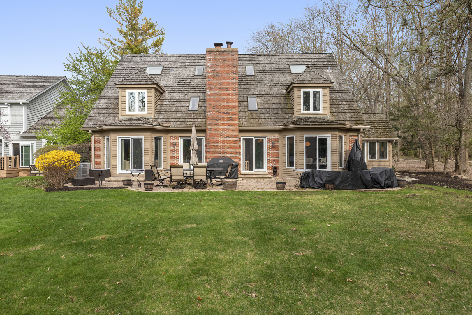 Welcome to your serene suburban retreat! This elegant 3-bedroom, 3.1-bath home offers a spacious, light-filled layout with updated finishes throughout, nestled on a premium wooded cul-de-sac lot in the highly sought-after Fields of Long Grove subdivision. Step inside to discover stunning two-story cathedral ceilings and a grand foyer that flows seamlessly into a sophisticated living room featuring a chic fireplace and custom wraparound cabinetry that extends into the family room. The formal dining room leads to a designer kitchen equipped with a large island, granite countertops, professional-grade stainless steel appliances-including a gas cooktop, double oven, dishwasher, and microwave-and beautifully lit with under- and over-cabinet lighting. Enjoy daily meals in the spacious eating area, which accommodates any table size, and relax in the family room or the bright four-season room, both offering breathtaking views of the surrounding forest. The first-floor primary suite includes a sitting area with direct access to the brick patio-perfect for morning coffee-a walk-in closet with custom organization, and a luxurious updated en-suite bath featuring a Jacuzzi-style tub and a steam shower. A powder room and mudroom with laundry hook-up complete the main level. Upstairs, two generously sized bedrooms each have their own full bathrooms, offering ultimate privacy for family or guests. Updates include: Basement partially finished, Culligan home water system, circulating tankless water heater Rinnai (25 years lifetime warranty – instant hot water in the tap), Daikin Mini-split heat exchanger AC unit for one upstairs bedroom , Stone Patio – 950 SF, Interior painting – living room, dining room, master bedroom, kitchen, upstairs bedrooms and bathrooms, Upstairs bedrooms – walk-in-closet remodel, new carpeting and wallpaper in both rooms, 2024 Sump pump, Gutter screens, Cedar Shake Roof was completely replaced in 2016, HVAC in 2019. Community has walking paths – convenient access to beautiful 40min walking path. Located within walking distance of scenic trails and just a short drive to award-winning schools (Country Meadows, Woodlawn, and Stevenson High School), downtown Long Grove, forest preserves, restaurants, and shopping. This exceptional home offers luxury living surrounded by nature-schedule your private showing today!