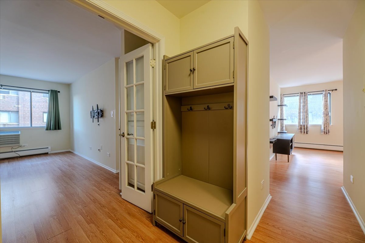 Rarely available end unit in the highly sought-after Pueblo Condominiums-beautifully updated and truly move-in ready! A commuter’s dream with easy access to buses, trains, expressways, and tollways. Pride of ownership shines throughout this meticulously maintained home, offering tasteful finishes and a neutral color palette that complements any decor. The bright, fully applianced white kitchen features granite countertops, brand-new stainless steel appliances (refrigerator, oven, microwave, and dishwasher-all new in 2022), and modern floating shelves in both the kitchen and living room. Both bathrooms have been stylishly remodeled, and the entire home has been freshly painted. Other highlights include light-toned laminate flooring throughout, a full primary bathroom, ample closet space, two newer air conditioning units, updated dining room lighting, and a custom wine wall. TV mounts with hidden cable management in every room add a sleek, modern touch. Enjoy one of the best garage parking spaces in the building-#82-conveniently located right next to the entryway, along with an additional storage unit (#19). The monthly assessment of $529.11 includes heat, gas, and water, making for easy, affordable living. Low property taxes further enhance this home’s appeal. Don’t miss this opportunity to own one of the most desirable units in Pueblo Condominiums. Beautifully updated, perfectly located, and ready for you to move in-schedule your showing today before it’s gone!
