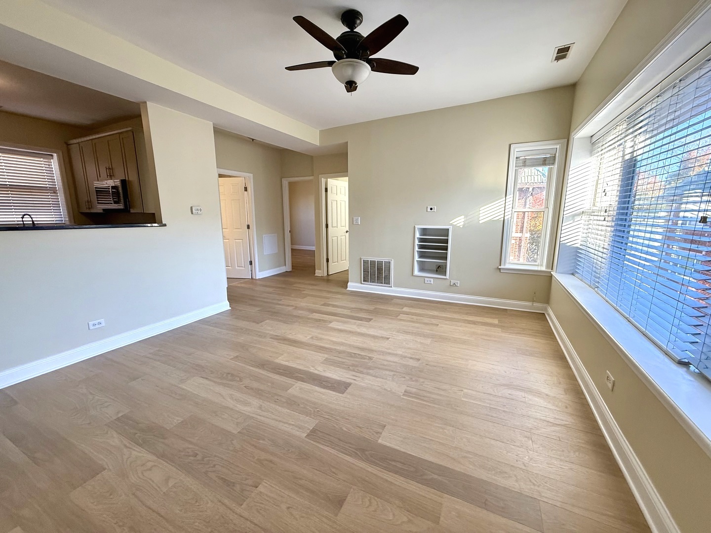 Updated sunny spaciouse unit with courtyard views. New beautiful brand wide plank laminate flooring throughout. Bathroom has been completely gutted with a new huge shower with rain head and handle, new vanity, mirror, light fixture and toilet. Kitchen has brand new dishwasher/refrigerator/microwave/range and freshly painted cabinets. Unit comes with a private storage unit in the basement. Coin laundry also located in the basement in the same tower. HVAC replaced in 2020. Brown line EL stop is 1.5 blocks away. Unit can be rented.