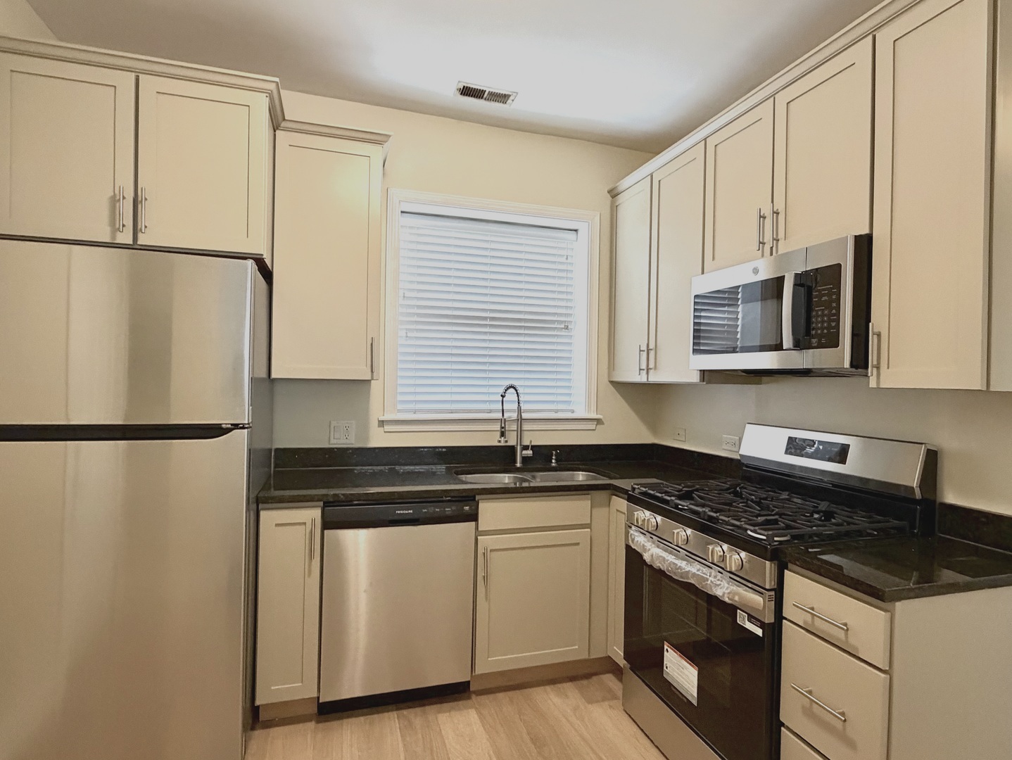Updated sunny spaciouse unit with courtyard views. New beautiful brand wide plank laminate flooring throughout. Bathroom has been completely gutted with a new huge shower with rain head and handle, new vanity, mirror, light fixture and toilet. Kitchen has brand new dishwasher/refrigerator/microwave/range and freshly painted cabinets. Unit comes with a private storage unit in the basement. Coin laundry also located in the basement in the same tower. HVAC replaced in 2020. Brown line EL stop is 1.5 blocks away. Unit can be rented.