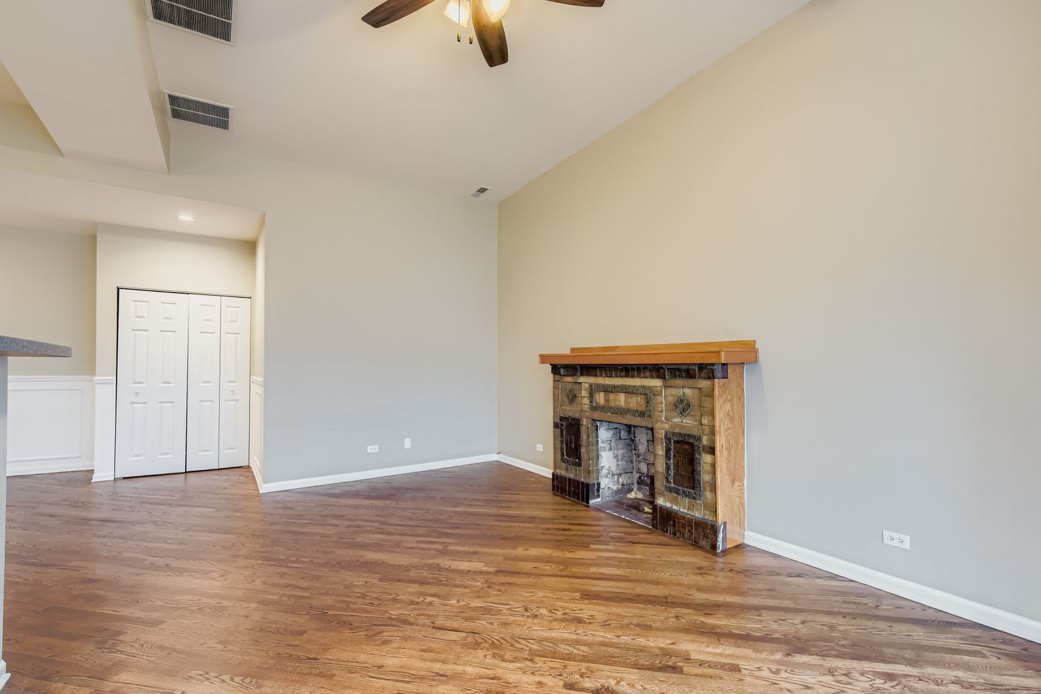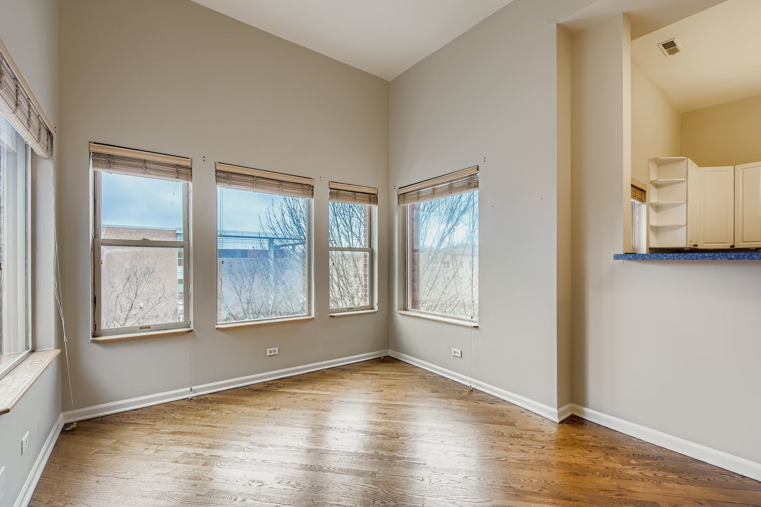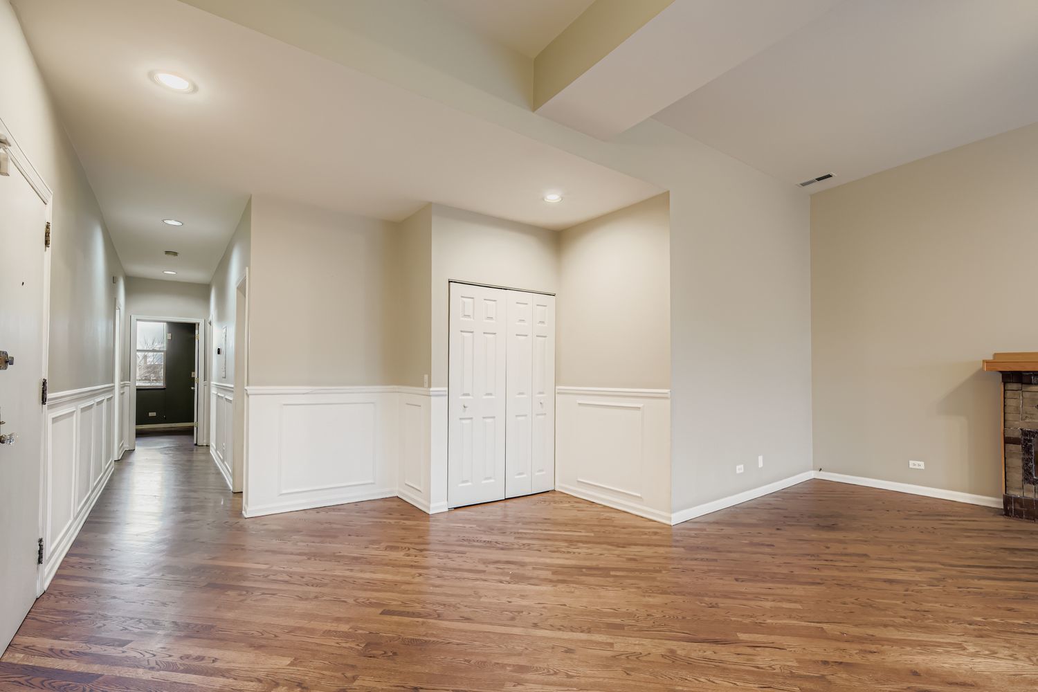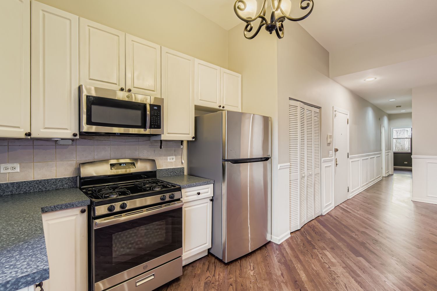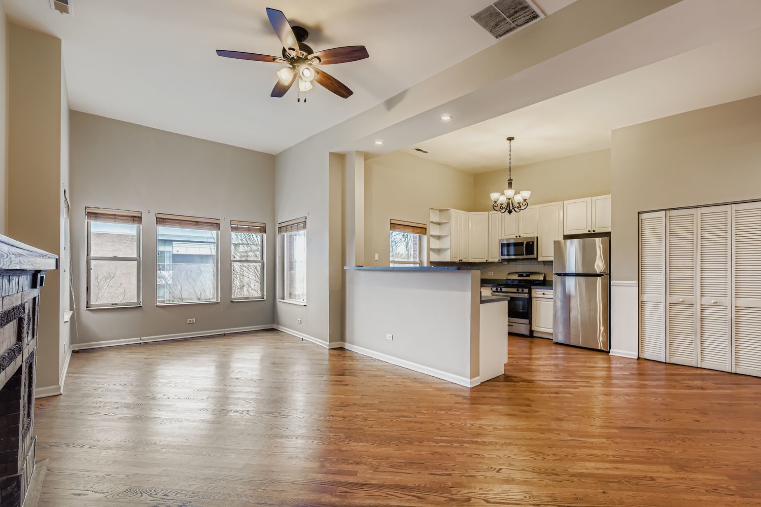 Looking for the perfect place to call home? This charming 3-bed, 2-bath penthouse condo blends classic character with modern convenience in the heart of a bustling neighborhood. Step inside to find gleaming hardwood floors and high ceilings throughout. The spacious living/dining combo is filled with natural light from numerous windows with the living room featuring a decorative fireplace for added warmth and style. The open-concept kitchen offers stainless steel appliances, a generous breakfast bar, and additional space for a table plus tons of cabinets and lots of counterspace. The primary bedroom includes a private ensuite bath with a jetted tub. Bedroom two features an additional tantem den area-ideal for a home office, playroom, or reading nook. Bedroom three provides access to the in-unit laundry and the rear balcony. Additional highlights include: In-unit laundry. Parking space in a gated lot. Secure basement storage, Prime Albany Park location near the Kimball Ave. Brown Line. Mechanicals & Appliances: HVAC (2021), Water Heater (2018), Range & Microwave (2020), Refrigerator & Dishwasher (2017), Washer/Dryer (2015). This penthouse offers space, charm, and convenience-don’t miss it!