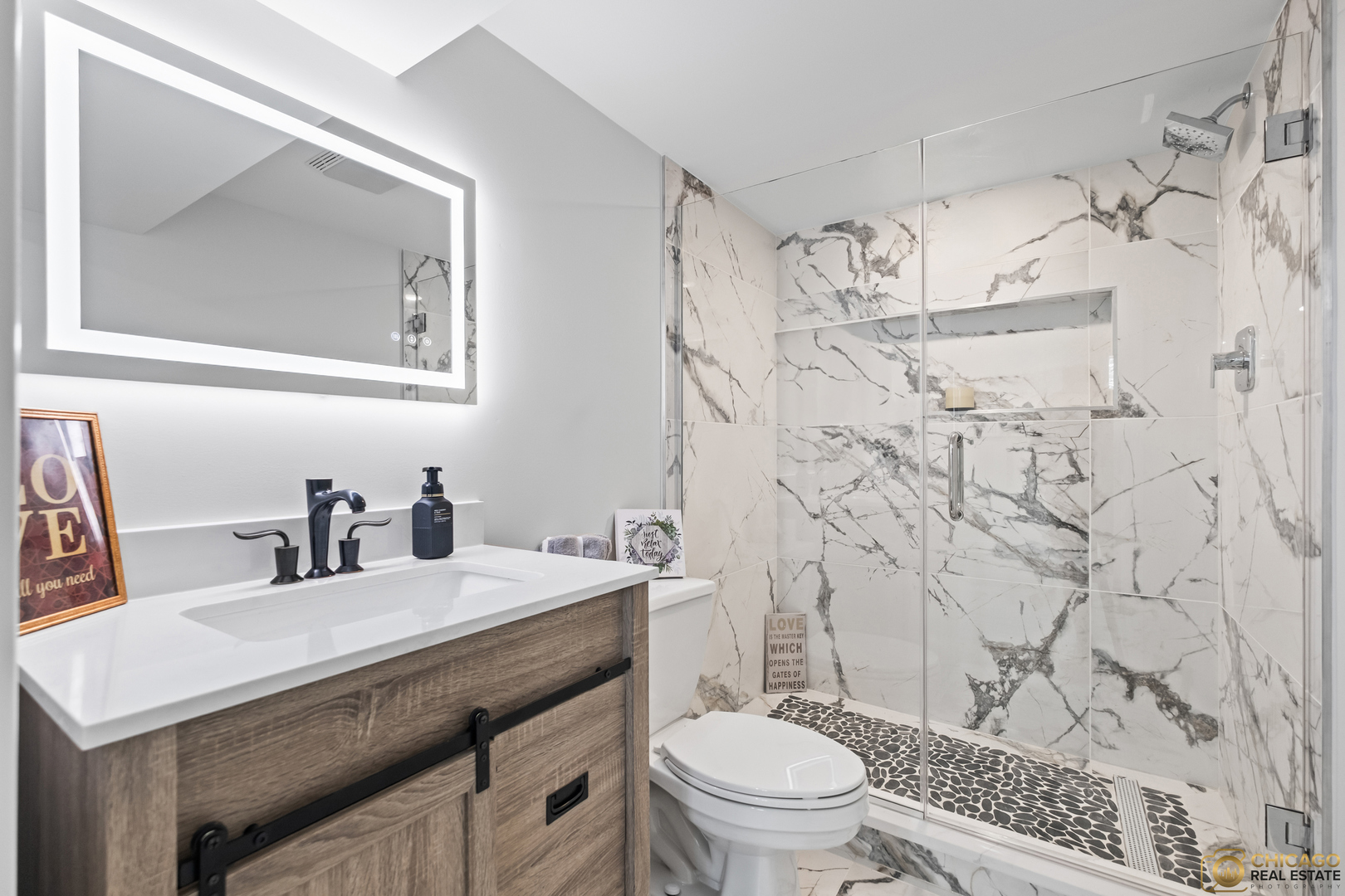 This luxurious 5-bedroom 3 bath residence has been completely renovated, blending modern elegance with peace of mind. Step inside to a bright, open-concept layout featuring rich hardwood floors, recessed lighting, and oversized energy-efficient windows that flood the home with natural light. The chef’s kitchen is outfitted with top-tier finishes and premium appliances sourced from ABT, while the spa-inspired bathrooms offer sleek, designer touches. Enjoy total comfort year-round with brand-new electrical, plumbing, HVAC, mechanicals, siding, and a new roof. The entire home has been professionally spray foam insulated for superior energy efficiency. A large back porch off the kitchen invites outdoor relaxation and entertaining. Downstairs, the fully finished basement offers flexible space perfect for a media room, home office, or game room. All this, just minutes from the Jefferson Park bus station, Metra and Blue Line, expressways, downtown Chicago, shopping, dining, parks, Lake Michigan and top-rated schools Beaubien Elementary School. Don’t miss your chance to own this beautifully reimagined home in one of Chicago’s most convenient and charming neighborhoods!
