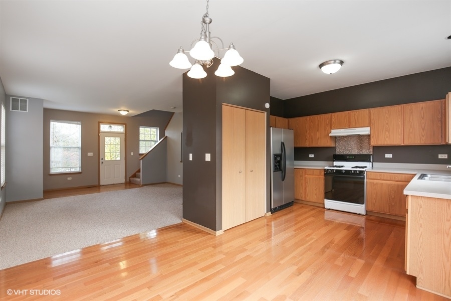 End Unit Townhome! 2 bedrooms + 1.5 baths. Main floor includes large living room, eat-in kitchen and powder room. Second floor bedrooms plus one full bathroom. Lower level includes two car garage, laundry room and utility room. Great location. HOA fee includes common insurance, snow removal, landscaping and exterior building maintenance. Sold AS-IS. Broker interest.