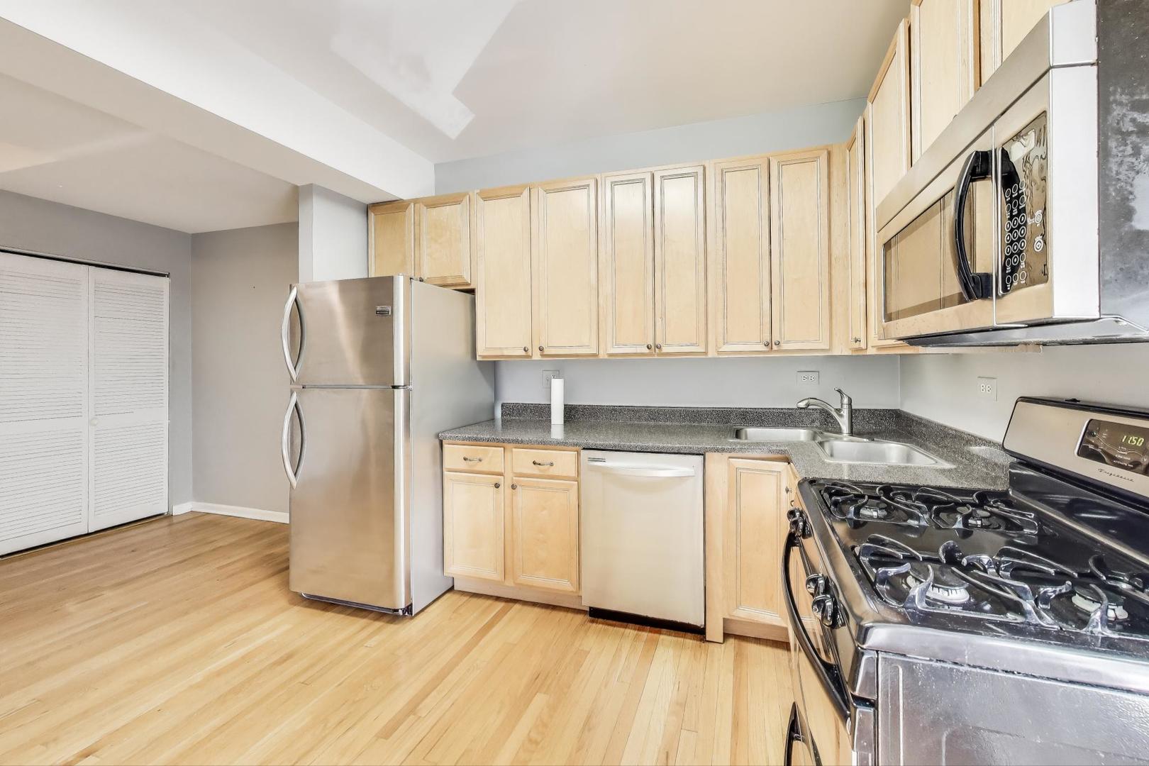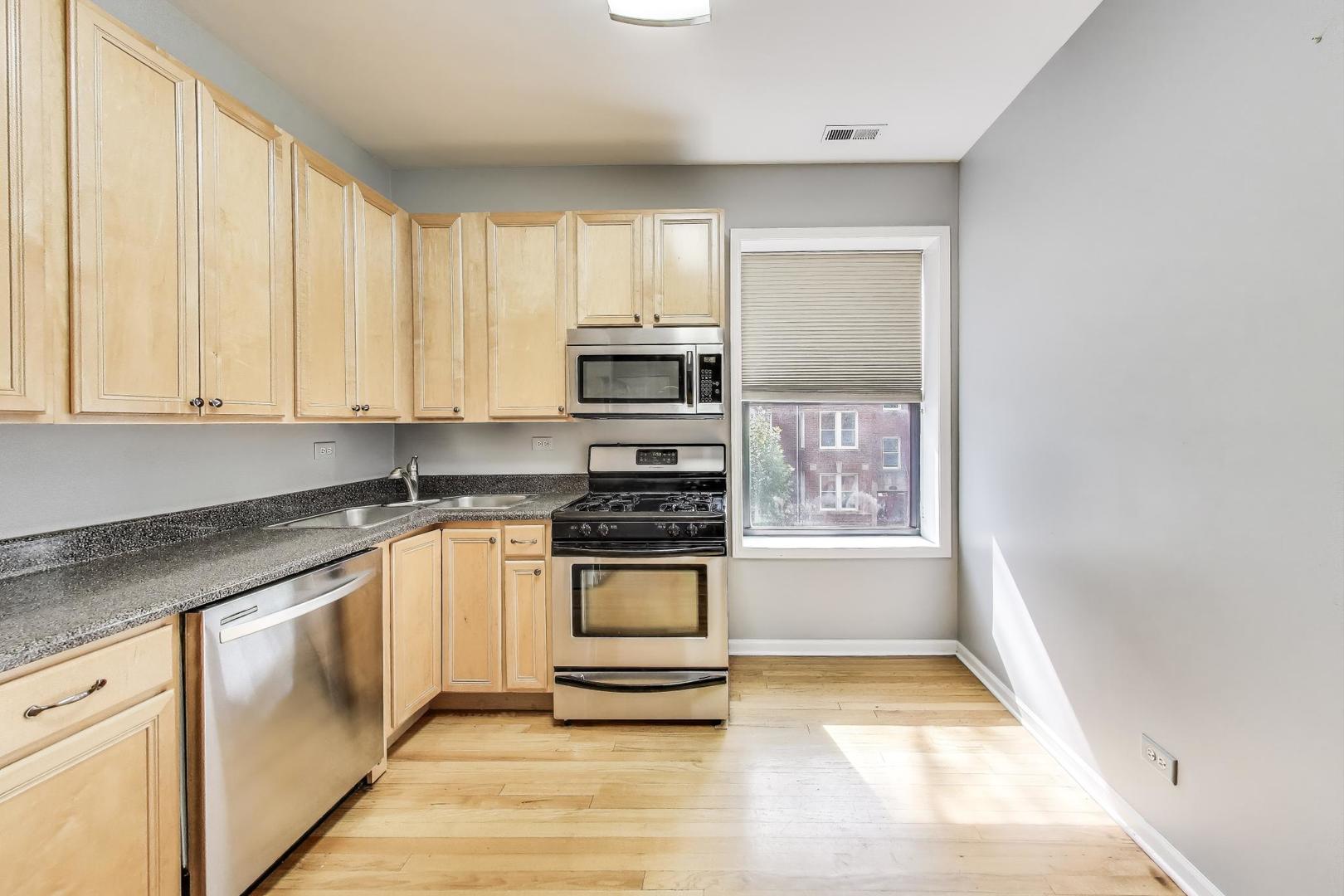 Spacious corner condo in a vintage Lincoln Square building featuring a large living room with a sunroom, an eat-in kitchen, and a back deck perfect for grilling. It offers in-unit laundry, central A/C, and hardwood floors throughout. The kitchen is a great size with a pantry and stainless steel appliances. Updates include: furnace 2022, washing machine 2024, hot water heater 2025. Building improvements: new roof, tuckpointing and back deck work. The building provides additional storage, including bike storage, and is pet-friendly. Easy Street parking. Enjoy everything Lincoln Square has to offer, from fantastic restaurants and shops to the Old Town School of Music, Welles Park, and the nearby Brown Line stations at Rockwell or Western, all within walking distance!