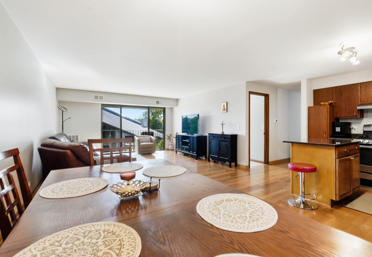 Welcome to this spacious third-floor condominium, where natural light, hardwood floors, and an open layout create a warm and inviting atmosphere. At the heart of the home, where the kitchen is located, open in design, and finished with stainless steel appliances. A private balcony it’s a true extension of the living space, offering views of greenery and mature trees. Perfect for a morning coffee or evening relaxation. One of the bedrooms features a Australian wool carpet, one year old, adding both comfort and elegance. Both bathrooms have been renovated, and this unit also includes new windows – a valuable upgrade, as each owner in the building is responsible for their own. Ample closet space and additional basement storage provide practical convenience. The unit includes a garage parking spot conveniently located by the elevator plus an additional outdoor space. Recent building improvements includes brand-new driveway and an outdoor security camera system. Set in the a quiet, concrete-structured building. Heat, gas is included in the assessment. One garage space and one outdoor parking space. GREAT LOCATION! RENTS ARE ALLOWED!