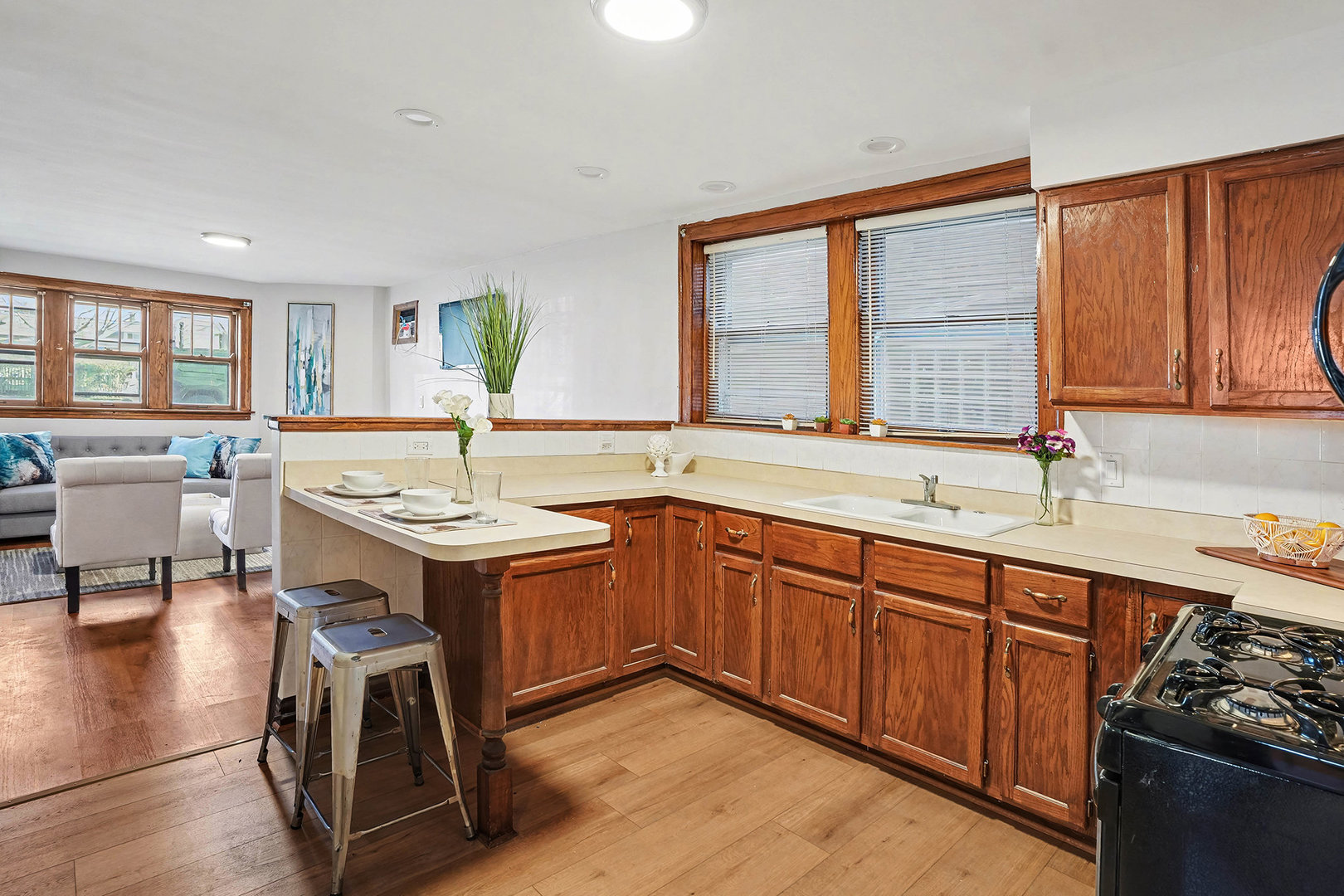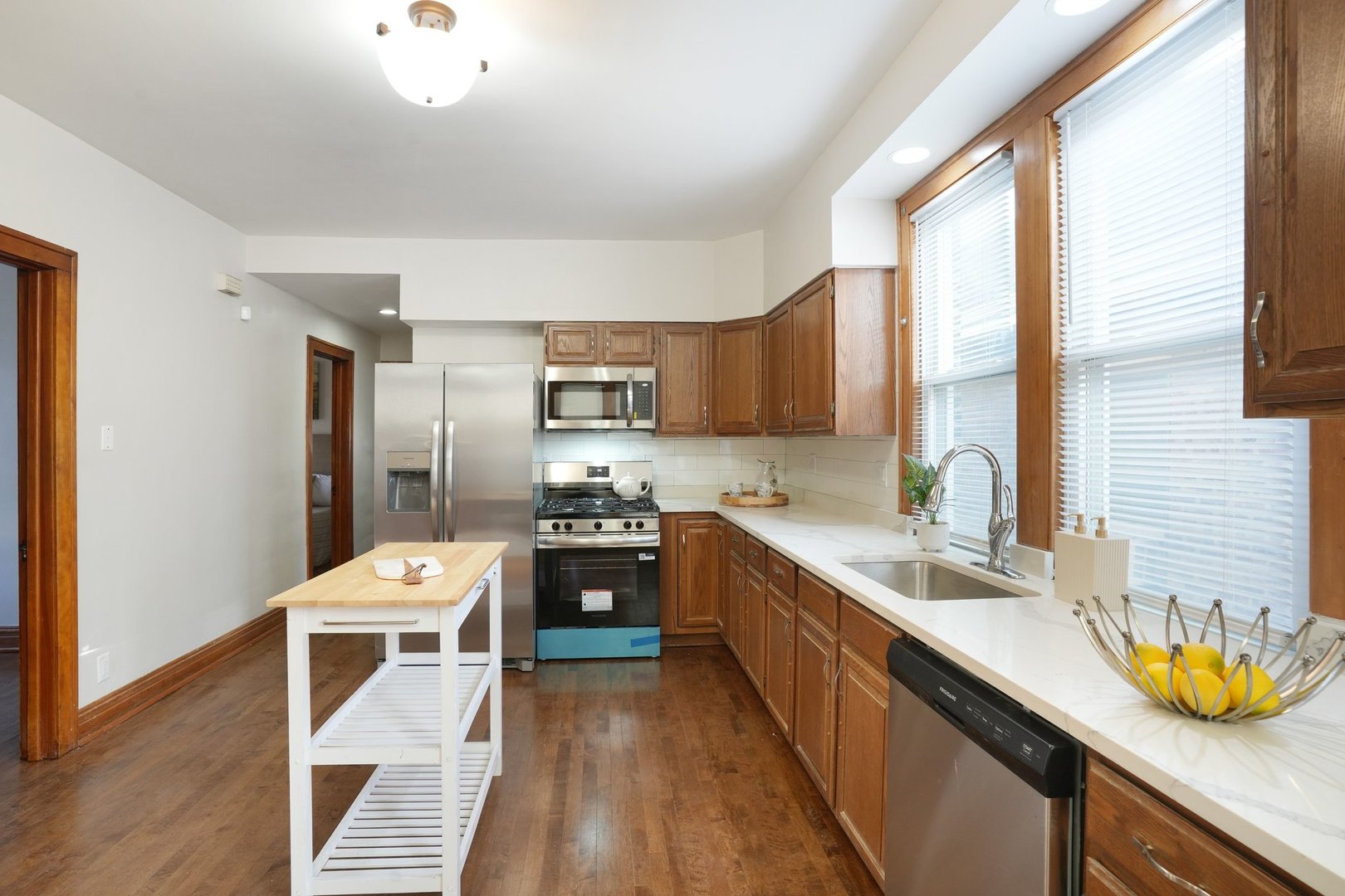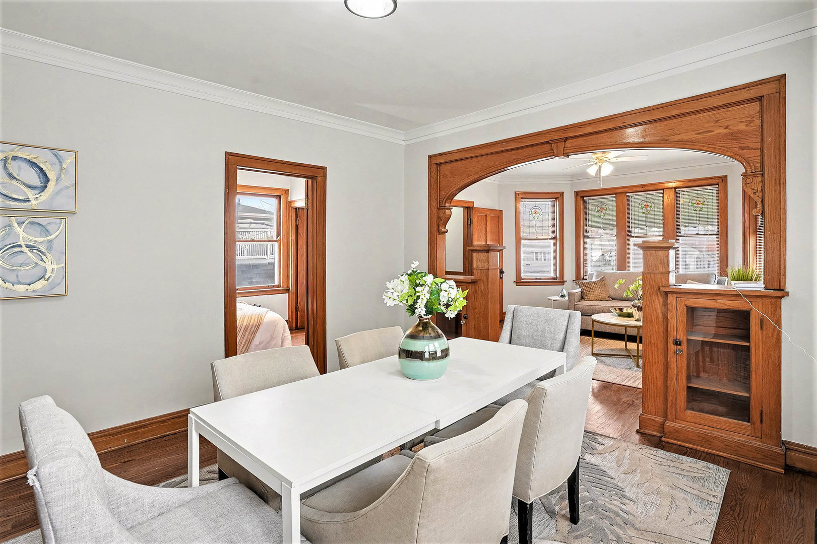 Welcome to 4712 S Keeler Ave, Chicago. This single-family home PLUS basement IN-LAW SUITE has five bedrooms and two full bathrooms. The main floor living room has beautiful stained glass windows and original woodwork that leads into your separate dining room, 3 main level bedrooms, full bathroom and eat-in kitchen. The lower level includes separate exterior access with a full kitchen, full bathroom, and two bedrooms – use the space for extended family or as an income source! Both the lower level and upstairs are connected to the laundry/utility space in the basement. The home has a fenced in backyard with 2 car detached garage and great storage/potential upstairs in the unfinished attic space. Schedule a showing today!