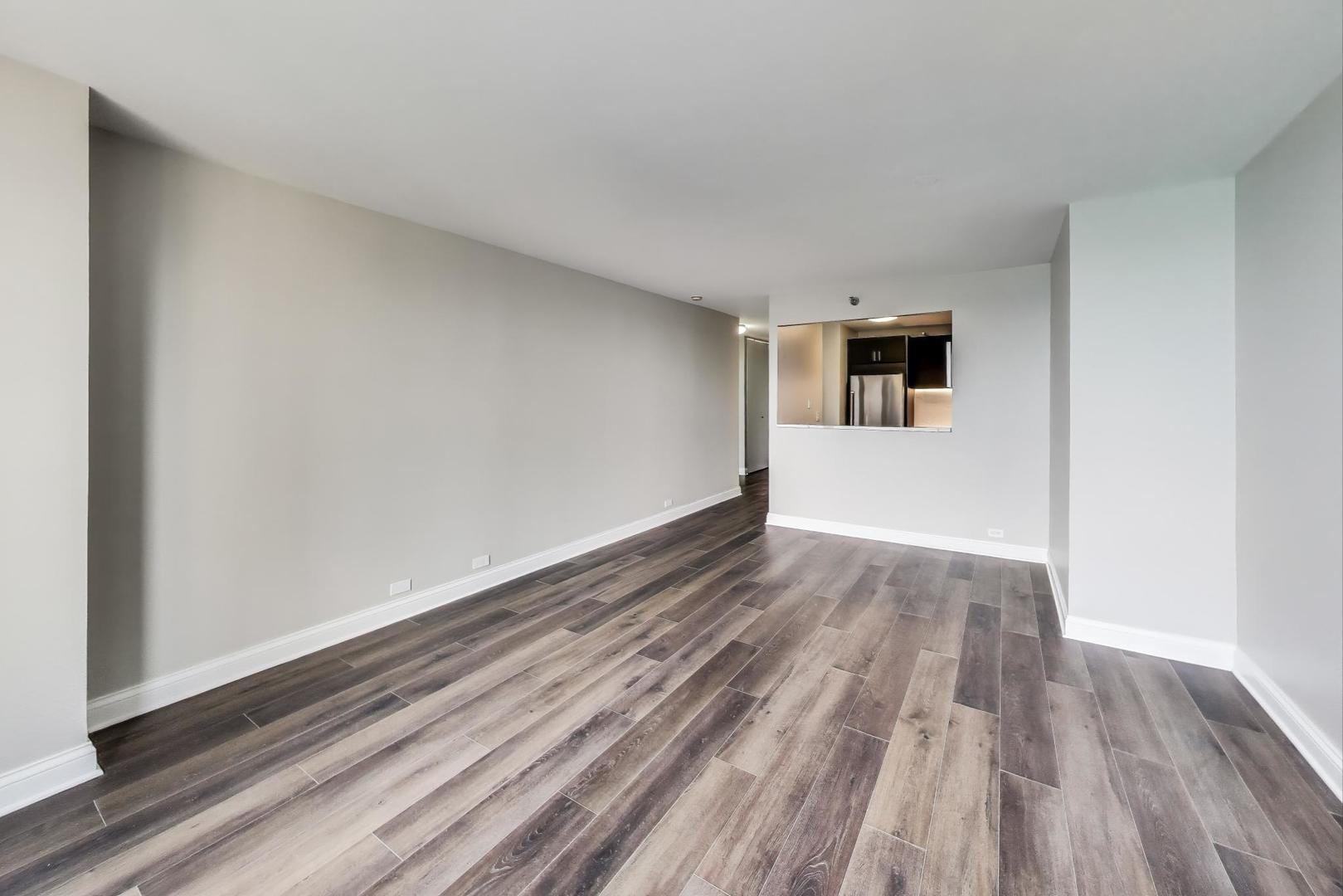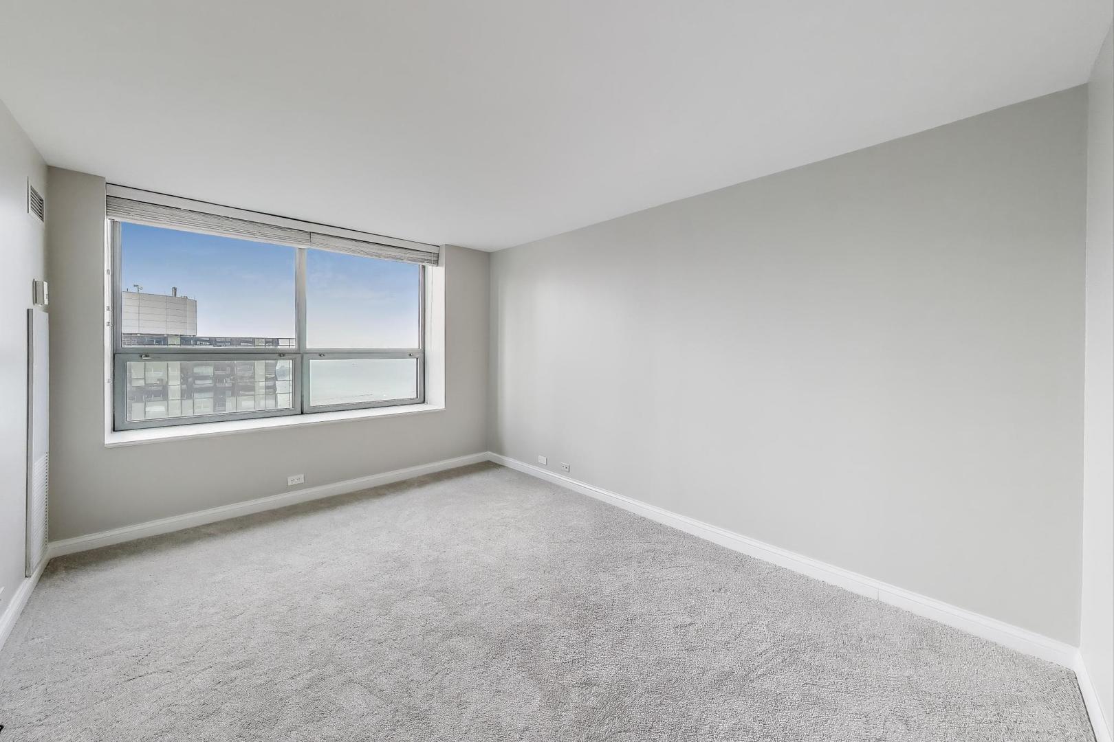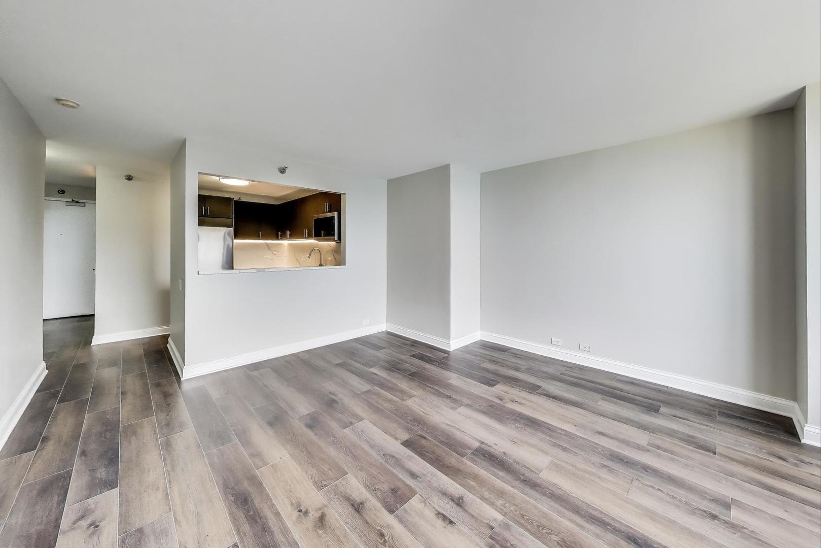 High-floor stunner with jaw-dropping views of the lake and Ohio Street Beach- this tastefully renovated home offers style and quiet comfort in a well-appointed, full-amenity building. A $70K gut renovation has transformed the kitchen and bath into stylish, modern spaces. Kitchen features white Carrara quartz countertops & backsplash, undermount sink, all-new KitchenAid stainless steel appliances, soft-close cabinetry, under-cabinet lighting, and a rare hood that vents out. A pass-through to the living/dining area keeps the space open and perfect for entertaining. The spa-inspired bath boasts a walk-in shower, Toto commode, vanity with white Carrara quartz, and adjustable color-temperature lighting. Additional updates include fresh paint, all-new warm midtown engineered floors, plush bedroom carpet, new electrical outlets, and in-unit side-by-side laundry. The spacious bedroom easily fits a queen bed and workspace, with a custom-organized walk-in closet. An end garage parking space is included. Building amenities include an indoor pool, sauna, steam room, fitness center, 24-hour door staff, and a beautifully landscaped sundeck with BBQ grills, pergolas, and panoramic city and lake views. Unbeatable location between Michigan Avenue and the lakefront – steps to the river, Ohio Street Beach, Navy Pier, shops, restaurants, and outdoor dining along Ogden Slip.