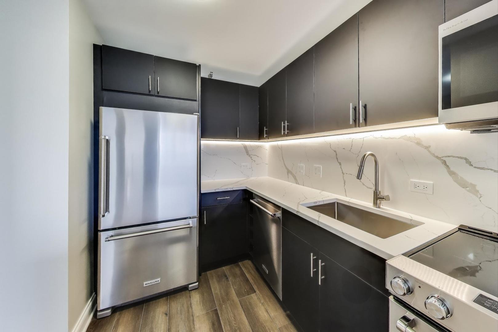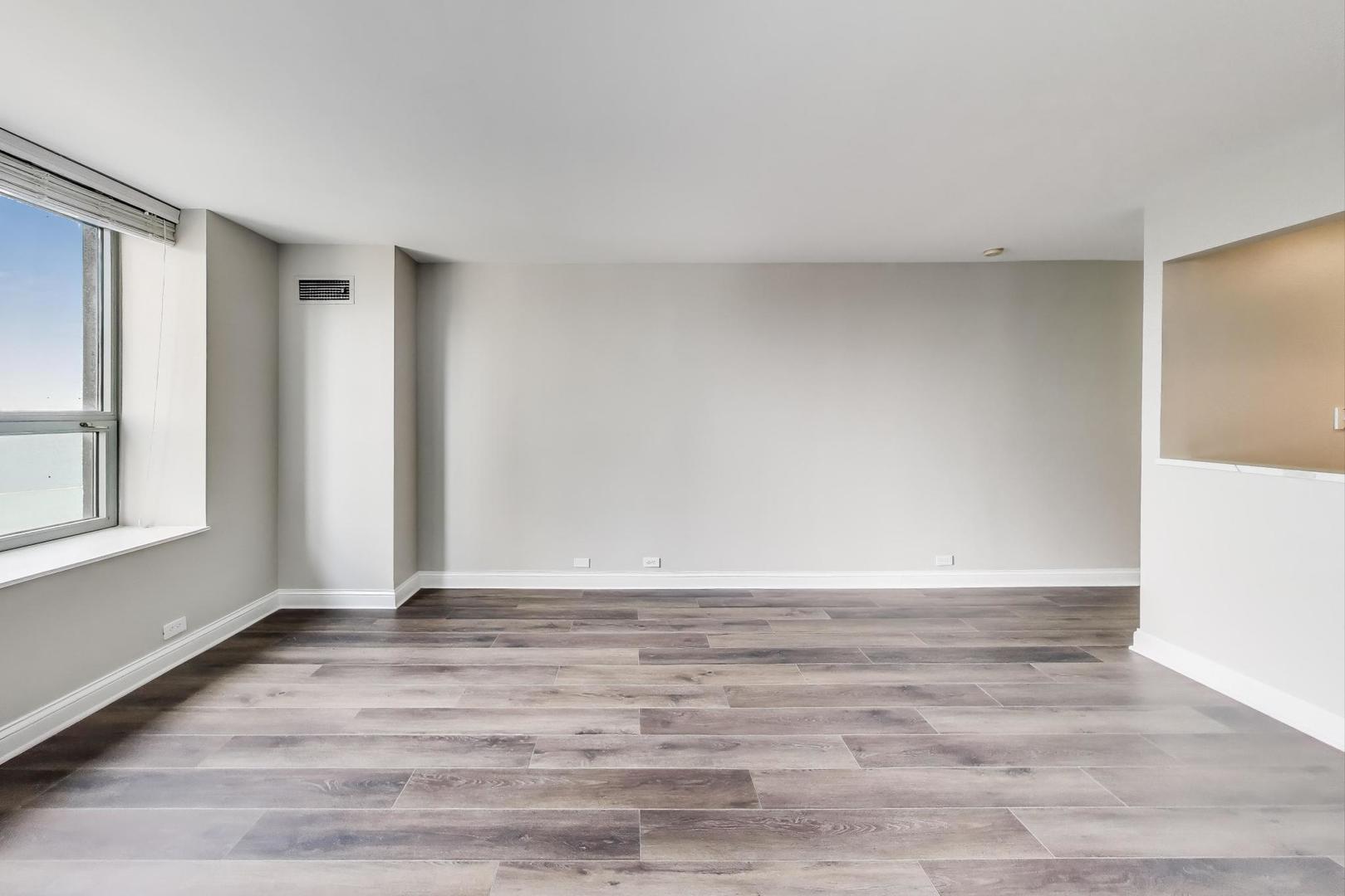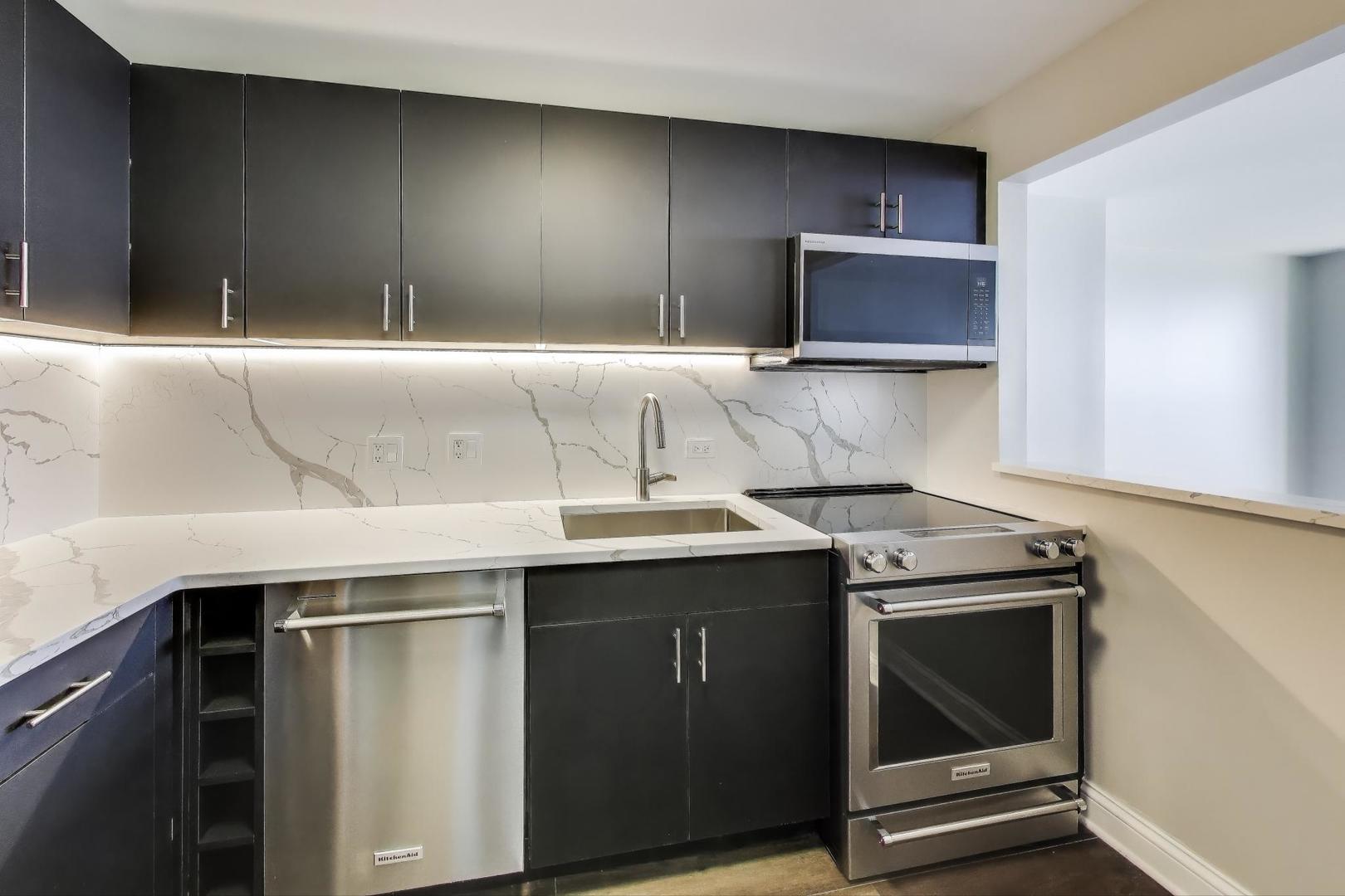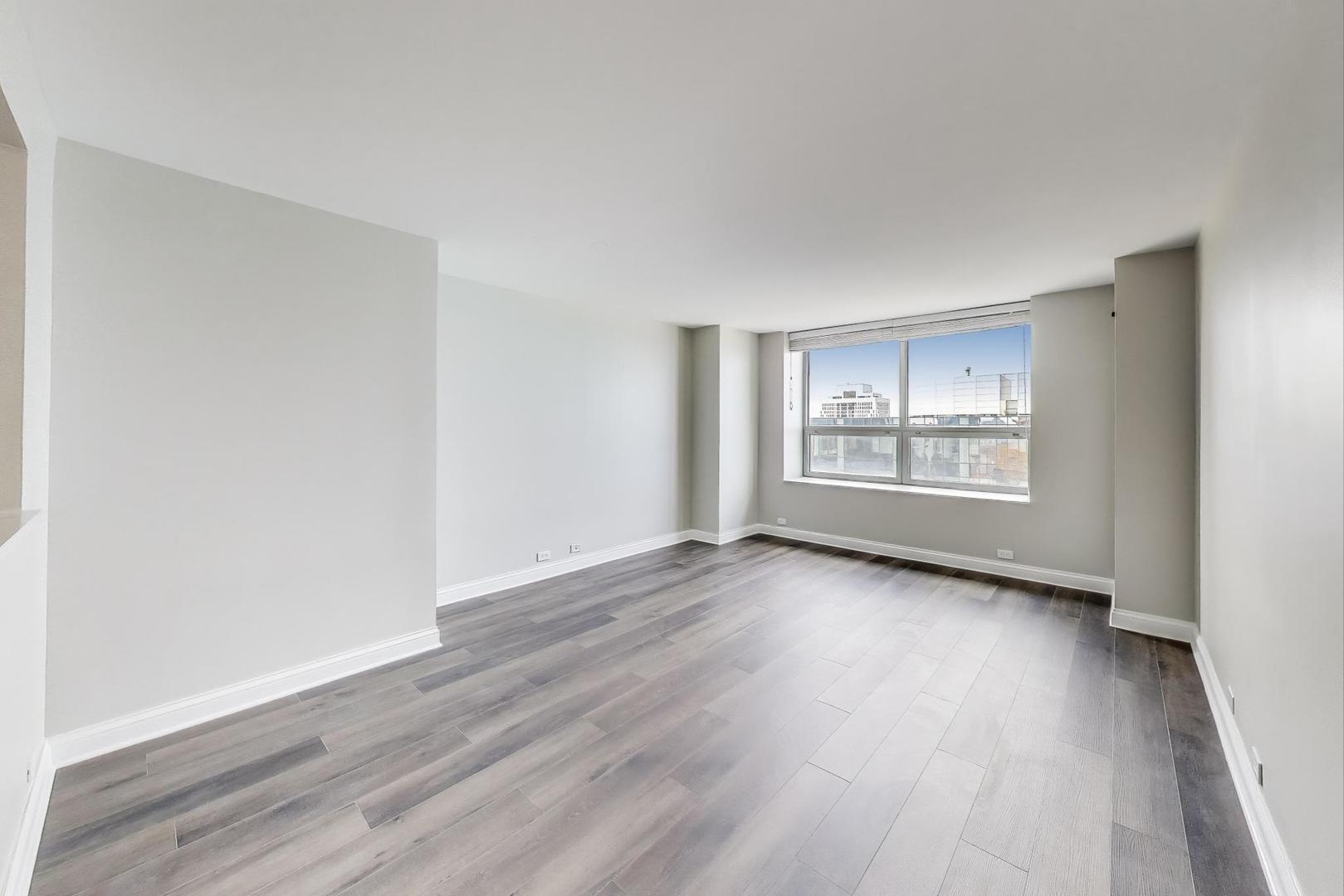 High-floor stunner with jaw-dropping views of the lake and Ohio Street Beach- this tastefully renovated home offers style and quiet comfort in a well-appointed, full-amenity building. A $70K gut renovation has transformed the kitchen and bath into stylish, modern spaces. Kitchen features white Carrara quartz countertops & backsplash, undermount sink, all-new KitchenAid stainless steel appliances, soft-close cabinetry, under-cabinet lighting, and a rare hood that vents out. A pass-through to the living/dining area keeps the space open and perfect for entertaining. The spa-inspired bath boasts a walk-in shower, Toto commode, vanity with white Carrara quartz, and adjustable color-temperature lighting. Additional updates include fresh paint, all-new warm midtown engineered floors, plush bedroom carpet, new electrical outlets, and in-unit side-by-side laundry. The spacious bedroom easily fits a queen bed and workspace, with a custom-organized walk-in closet. An end garage parking space is included. Building amenities include an indoor pool, sauna, steam room, fitness center, 24-hour door staff, and a beautifully landscaped sundeck with BBQ grills, pergolas, and panoramic city and lake views. Unbeatable location between Michigan Avenue and the lakefront – steps to the river, Ohio Street Beach, Navy Pier, shops, restaurants, and outdoor dining along Ogden Slip.