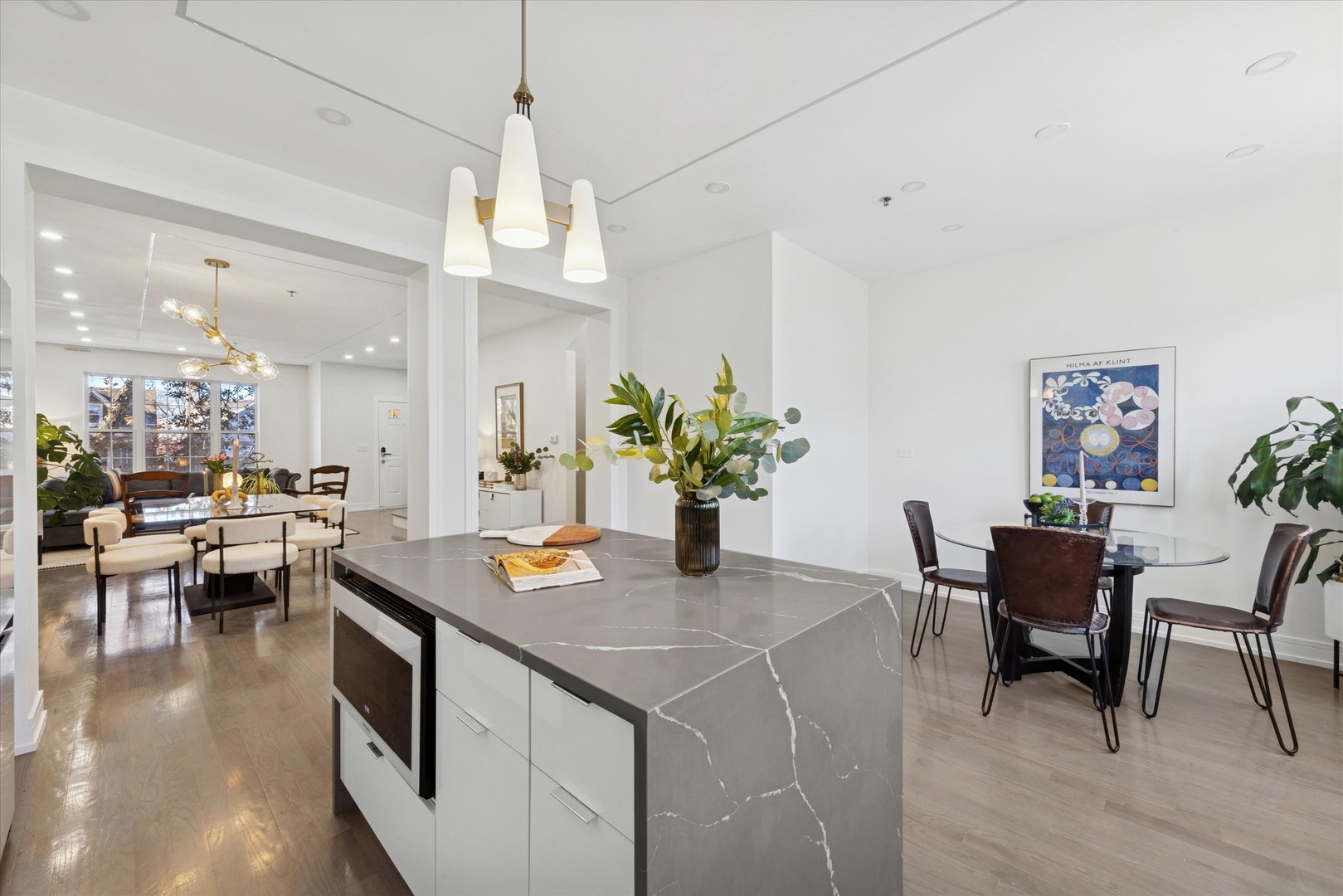 Your chance to own a piece of Cubs history! Home of World Series champion, Pedro Strop is now for sale. Extra-wide 5 bedroom, 4.1 bath home in Jefferson Park with a 2-car garage, offering comfortable living spaces, hardwood floors, sprinkler system, and abundant natural light. Perfect for entertaining, the open-concept main level features expansive living and dining areas with room for a table of ten, plus inviting outdoor spaces including a rear deck and patio. The chef’s kitchen showcases custom cabinetry, Samsung Bespoke appliances, a waterfall quartz island, and a breakfast nook. The second level has three bedrooms including a large suite with a European shower, a full bath, and a laundry room. Retreat to the third level for a luxurious primary sanctuary complete with a tranquil lounge and yoga studio, an oversized walk-in closet, and a spa-inspired bath with double vanities, a jetted soaking tub, and a separate shower. The beautifully finished basement offers a bedroom, a full bath, and a recreation room with exterior access. Easy living with an HOA that covers lawn care and snow removal. Excellent transit access to I-90 and I-94, the Blue Line, Metra, and several bus routes-making commutes to downtown or O’Hare very convenient. Steps from Thuis Park.