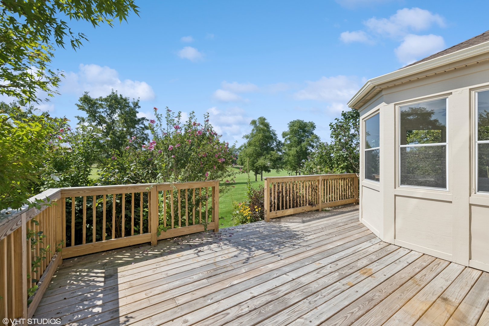 Enjoy beautiful views of the 11th fairway at Midlane from the deck of this lovely home with a sunny porch addition! It’s in tip-top shape and ready for you to enjoy. The spacious plan starts off dramatically with a two-story foyer and living room with walls of windows that flood these spaces with natural light. The flow is great too, as the dining room bridges the living room with the kitchen – and that opens to a cozy family room with a brick-faced fireplace. You’ll find lots of satisfaction with the screen porch addition, where morning coffee or an evening visit with friends will be – literally – a breeze. Other highlights on the main level include hardwood flooring, a full bath, and a laundry / mud room off the garage. The primary suite offers golf course views and a lot of space including a large walk-in closet and a literally huge bath. This is a great value, offering one of the larger plans in this section, upgraded brick exterior, and a paver walkway. There is also a full unfinished basement with great potential for storage, workshop, or rec room.