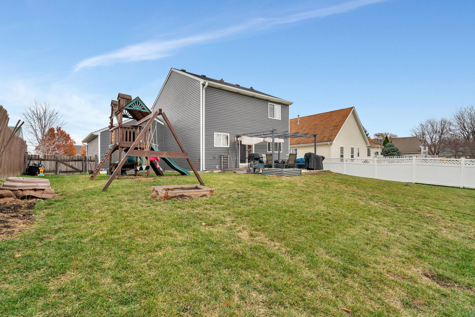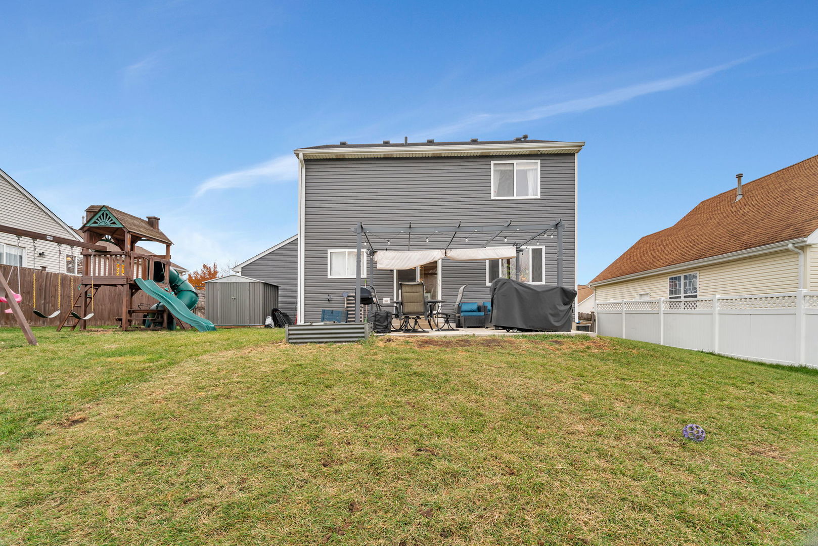 Fabulous Updates In This Beauty! This Home Has Many Great Improvements. Come See For Yourself! New Roof (2024), New Siding (2024), New Front Door, New Flooring & Trim On Main Level, Updated Kitchen, Fresh Paint In Most Rooms, Concrete Patio & Pergola In Back Yard, And New Fence Section On Rear Of Yard Making It Fully Fenced. 3 Bedrooms, Master Has Large Walk In Closet, 1 1/2 Baths, Partial Basement with Partial Crawl For All Your Storage Needs, Plus A 2 Car Garage & Shed For Additional Storage Too! The Location Of This Home Is A Shoppers Dream! All Appliances Are Included. Swing set Stays Too. Great Home! Great Price!