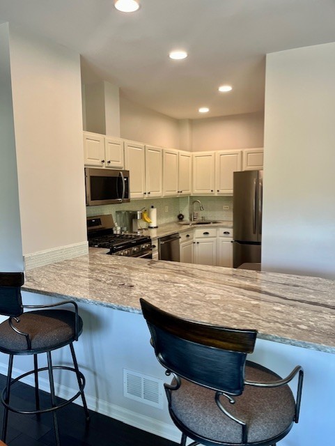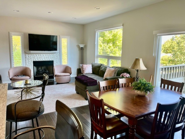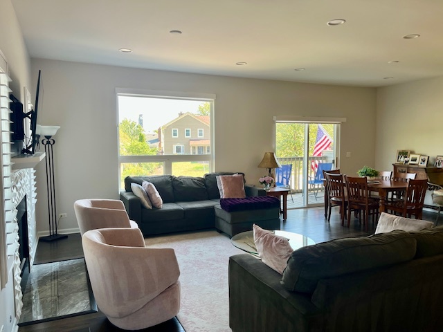 Welcome to 479 River Bend Road, Unit 111-a beautifully updated three-level condo in the heart of Naperville’s River Bend community. This spacious 2-bedroom, 2.5-bath home offers 1,755 square feet of light-filled living space with vaulted ceilings, a gas fireplace, and picturesque views of Moser Tower and Millennium Carillon from both the living room and bedrooms. Recent updates throughout (2024) include fresh paint, new carpeting, updated adjustable, dimming lighting, stairwell sconces and handrails. The kitchen features Frigidaire Gallery stainless steel appliances and a Bosch dishwasher, while the master suite boasts canned lighting, a ceiling fan, new vanity with soft-close cabinetry, ceramic tile flooring, and an oversized closet. All bathrooms have been remodeled, and the second-floor laundry includes an LG stackable washer and True Steam dryer. Additional upgrades include electric shades, plantation shutters, a newer furnace (2020) and water heater. Located in a quiet, pet-friendly, 18-unit HOA community, this home offers a 2nd floor outdoor balcony with a view of the Millenium Carillon and private, concrete ground-level patio for grilling or enjoying your evening, a 2-car attached garage, central air and an asphalt driveway. Monthly HOA dues cover lawn care, snow removal, exterior maintenance, scavenger services and common insurance. The property is within Naperville School District 203-Elmwood Elementary, Lincoln Junior High and Naperville Central High School-with two school bus routes serving the community. Enjoy walkability to the Riverwalk, Naper Settlement, Meson Sabika, downtown shops, restaurants, festivals and parades. With no Special Service Area Assessment and a Homestead exemption in place, this turnkey home offers unmatched convenience, charm and especially location! Don’t miss this rare opportunity to live in one of Naperville’s most desirable neighborhoods.