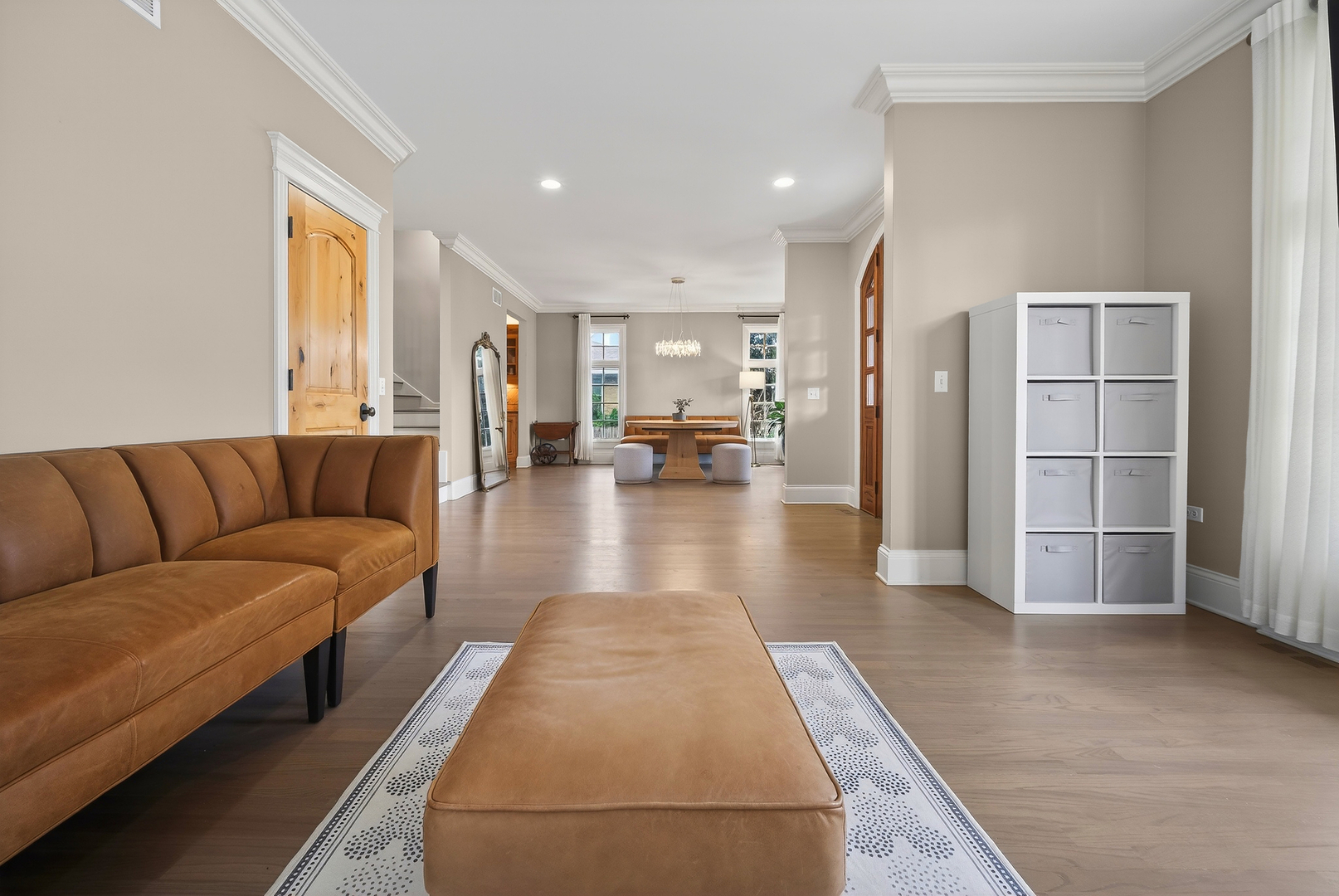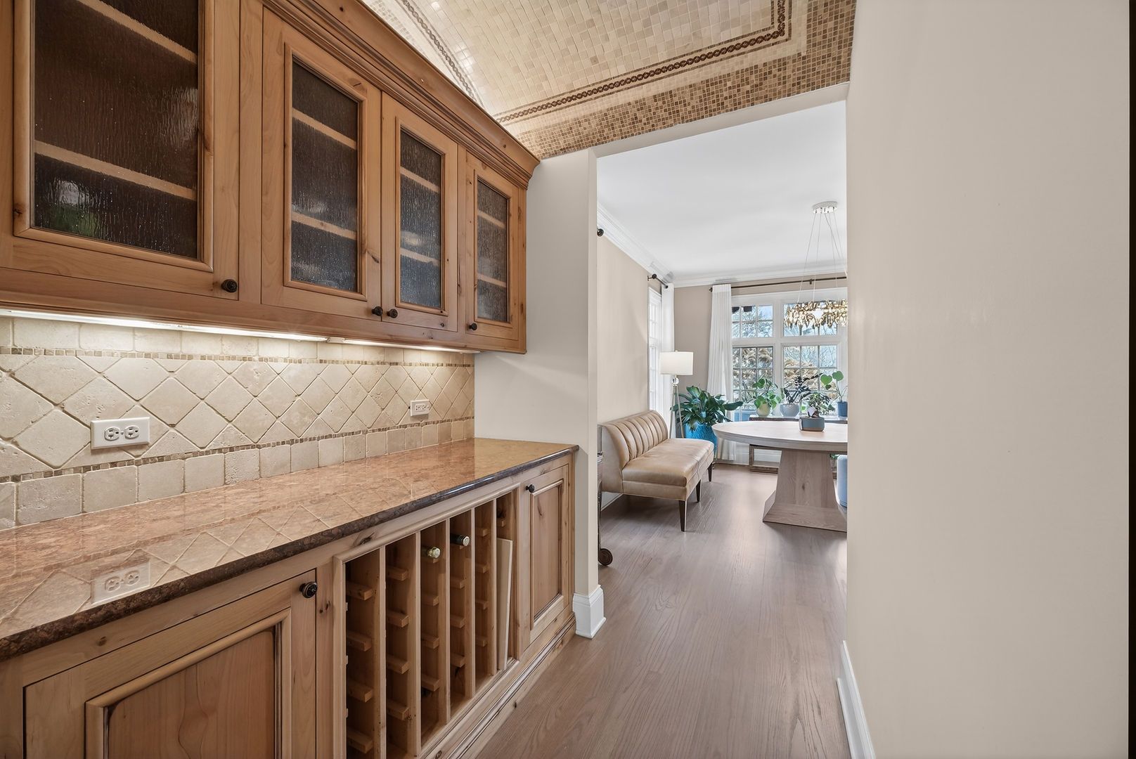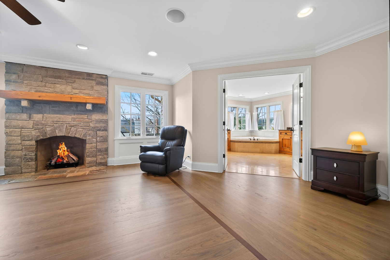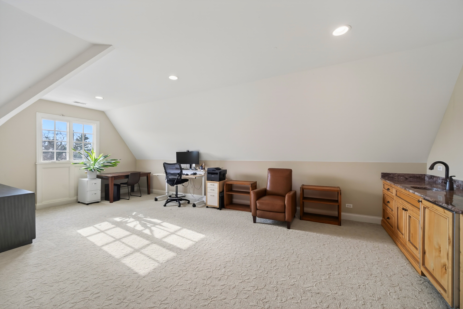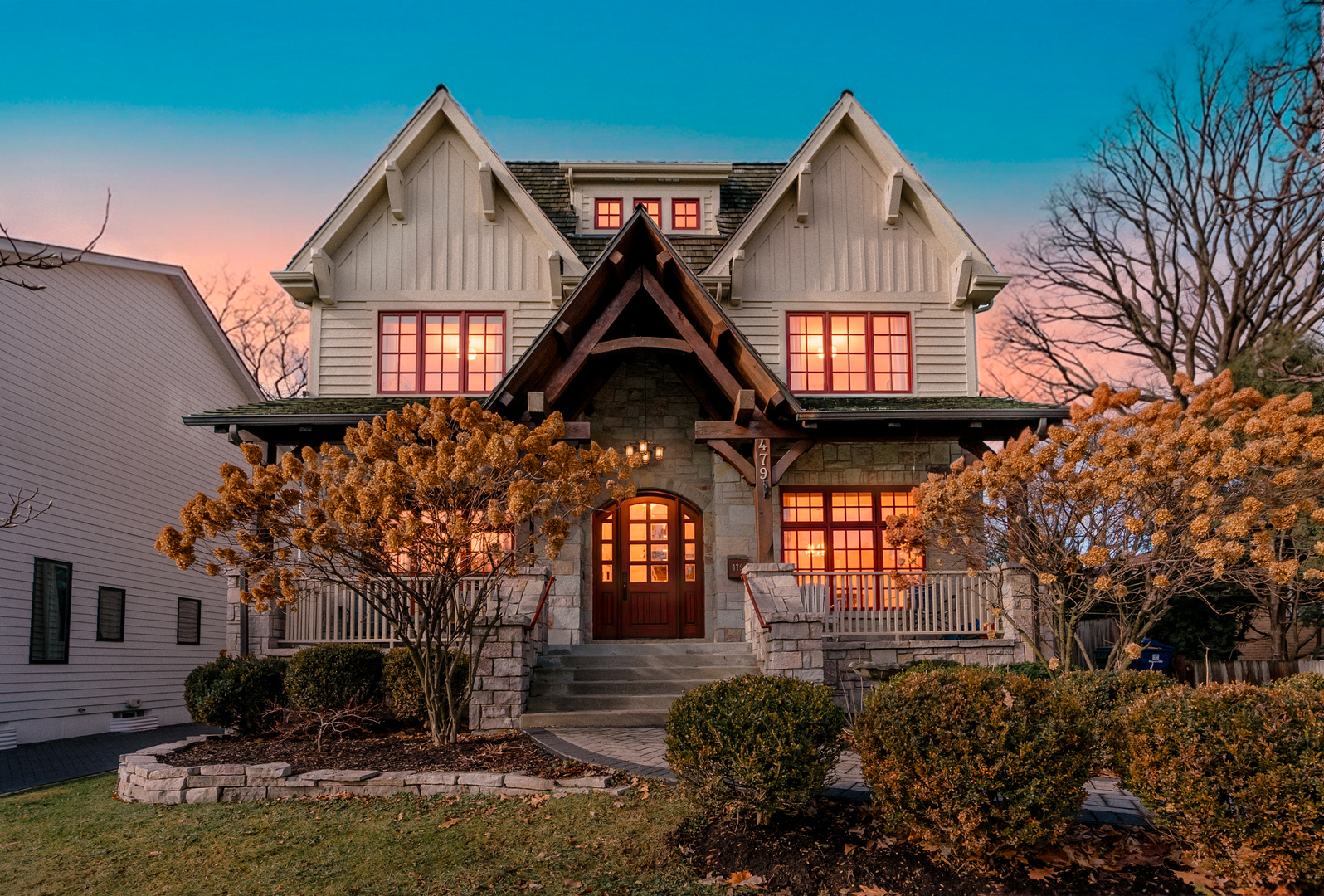 Perched at the top of the hill on highly sought-after Julian Street, this stunning custom residence offers timeless architecture, exceptional craftsmanship, and an unbeatable walk-to-downtown Naperville location. A welcoming covered front porch and impressive curb appeal introduce this stately home, thoughtfully designed for elegant entertaining and comfortable everyday living. The interior is flooded with natural light and showcases recently refinished hardwood floors throughout in a sophisticated light stain, complemented by updated lighting and refined finishes. The main level features a gracious living room and formal dining room, ideal for gatherings, along with an updated powder room. At the heart of the home is the chef’s kitchen, impeccably appointed with custom Knotty Alder cabinetry, a paneled Sub-Zero refrigerator, two Sub-Zero refrigerator drawers, Wolf range with pot filler, paneled Bosch dishwasher, built-in pantry, and expansive granite countertops. A dedicated bar area with a striking barreled ceiling and wine storage flows seamlessly into the family room, where a beautiful stone fireplace anchors the space and walls of windows bathe the home in natural light. A private first-floor office features Knotty Alder wood trim, built-in desk, and custom cabinetry-an ideal work-from-home retreat. Upstairs, the primary suite enjoys its own private wing, offering a serene retreat with a spacious walk-in closet and a luxurious bath featuring dual vanities and refined finishes. Two additional bedrooms share a well-appointed shared bath, while a fourth bedroom offers the privacy of its own en suite. The convenience of a second-floor laundry area completes this level. The third floor provides exceptional flexibility, featuring a private fifth bedroom with a full bath and an expansive open space-perfect for a game room, additional family room, media lounge, or creative retreat. The deep-pour finished basement impresses with tall ceilings and outstanding versatility. Designed for entertaining and function, it includes a full bar with Knotty Alder cabinetry, granite counters, JennAir full-size refrigerator, Bosch dishwasher, and microwave. A striking stone fireplace with gas insert creates a warm gathering space, complemented by an open staircase that enhances the home’s architectural flow. This level also features a fully updated full bath, a spacious second laundry room, extensive storage, dual furnaces, and two water heaters. Outdoor living completes the experience, offering inviting spaces to relax or entertain, surrounded by mature landscaping and an outdoor fireplace. Located just steps from Highlands Elementary, North Central College, downtown shops, restaurants, and the Riverwalk, this extraordinary home blends luxury, layout, and location-a rare opportunity to experience Naperville living at its finest.