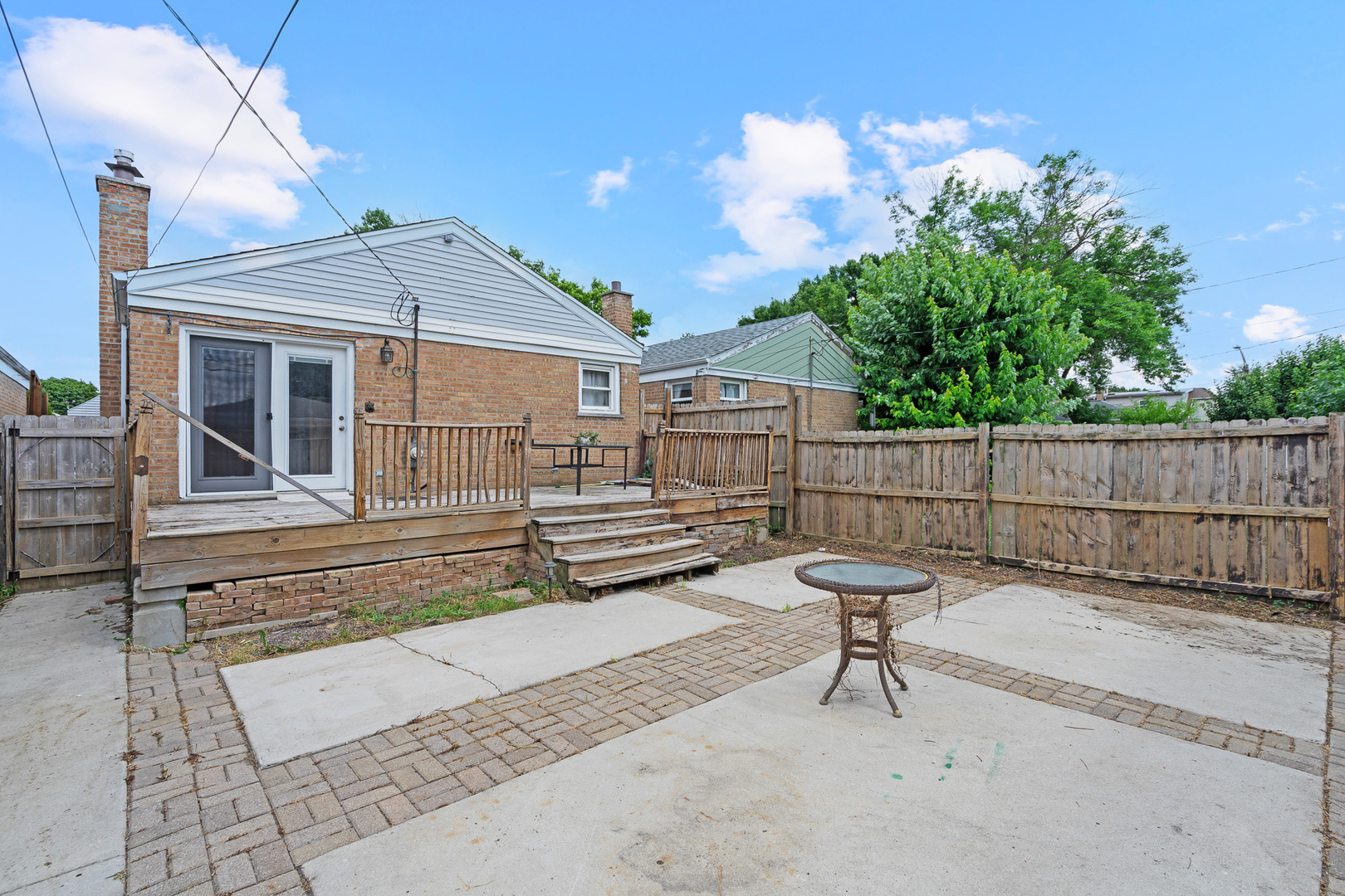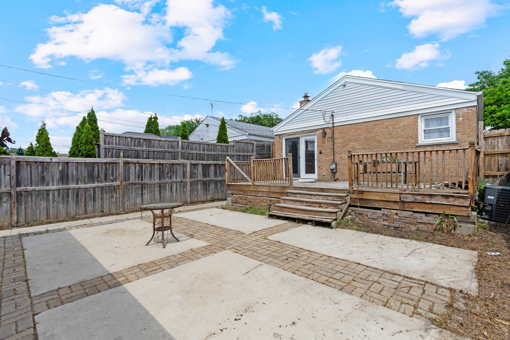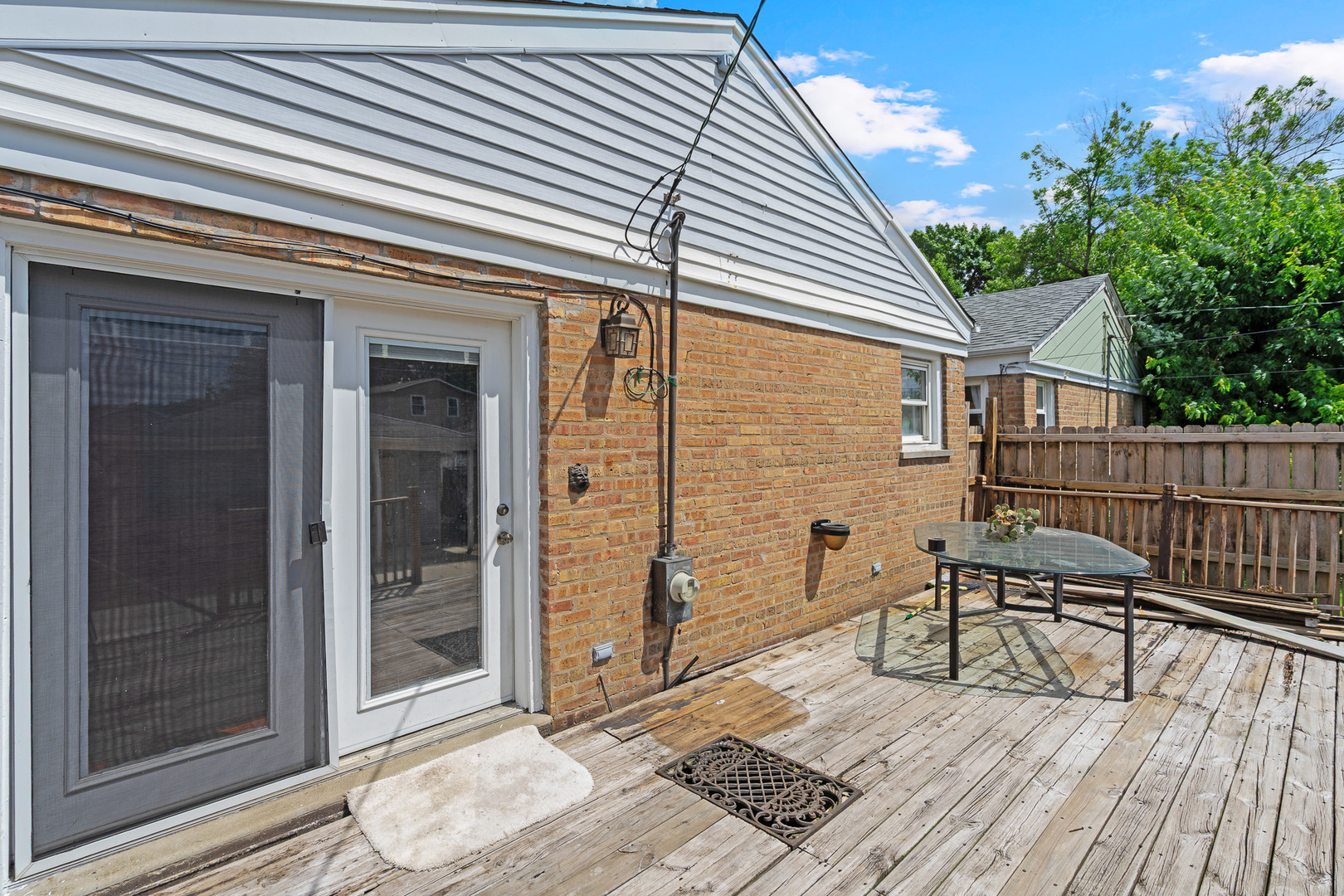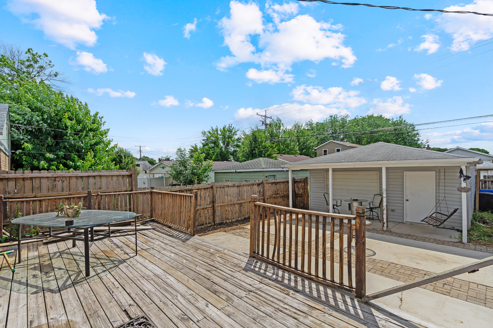 Welcome to this charming brick home situated on a quiet block just minutes from the airport, shopping, dining, expressways, and public transportation-offering the perfect blend of comfort and convenience. Step inside to a sun-filled living room featuring a beautiful bay window and rich hardwood flooring under the carpet. The updated kitchen boasts warm oak cabinetry, granite countertops, stainless steel appliances, and a custom tile backsplash-ideal for everyday living and entertaining. The full bathroom includes a luxurious whirlpool tub, and the versatile third bedroom opens through French doors to a spacious deck overlooking the fully fenced backyard. The oversized two-car garage features a large overhead door with direct yard access-perfect for hobbies, storage, or additional outdoor space. Additional highlights include a handy laundry chute to the basement and a partially finished lower level complete with a cozy family room, fourth and fifth bedrooms, and area for a second full bathroom-complete with an additional whirlpool tub that will remain with the home. Don’t miss this fantastic opportunity to own a well-maintained home in a desirable location with room to grow!