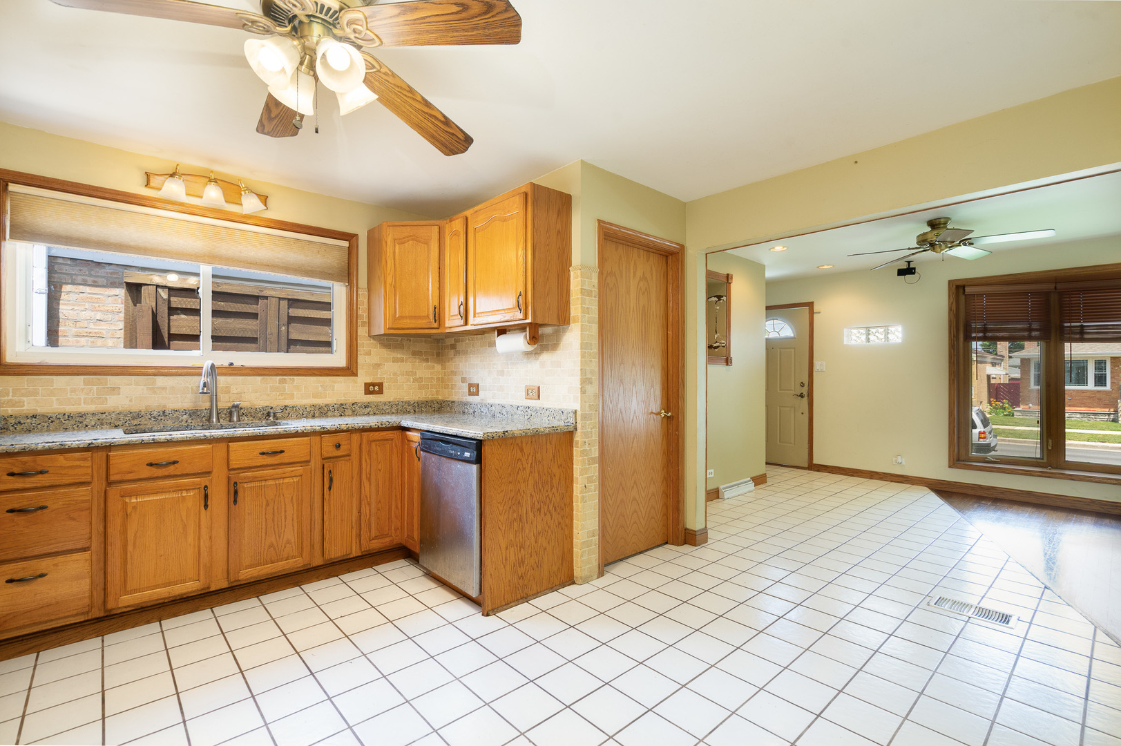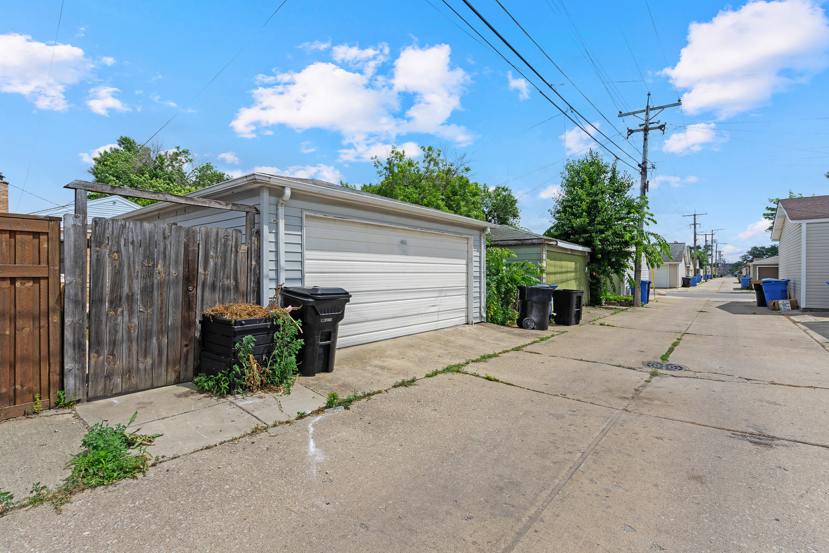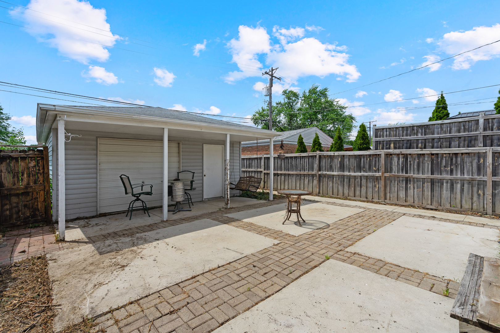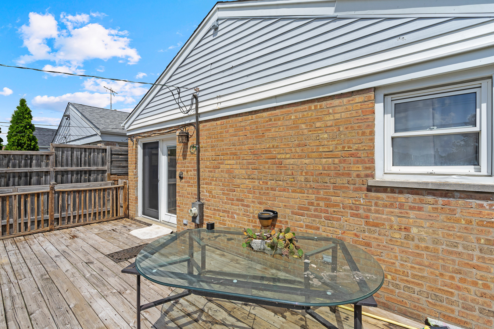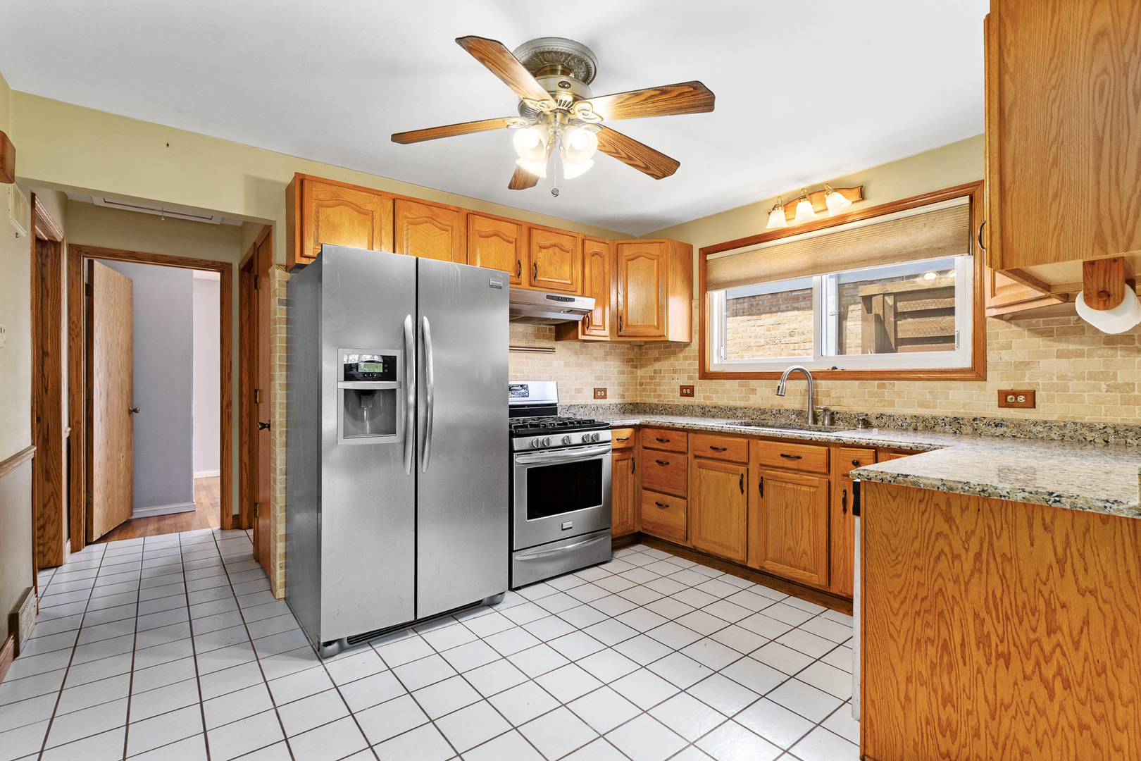 Welcome to this charming brick home situated on a quiet block just minutes from the airport, shopping, dining, expressways, and public transportation-offering the perfect blend of comfort and convenience. Step inside to a sun-filled living room featuring a beautiful bay window and rich hardwood flooring under the carpet. The updated kitchen boasts warm oak cabinetry, granite countertops, stainless steel appliances, and a custom tile backsplash-ideal for everyday living and entertaining. The full bathroom includes a luxurious whirlpool tub, and the versatile third bedroom opens through French doors to a spacious deck overlooking the fully fenced backyard. The oversized two-car garage features a large overhead door with direct yard access-perfect for hobbies, storage, or additional outdoor space. Additional highlights include a handy laundry chute to the basement and a partially finished lower level complete with a cozy family room, fourth and fifth bedrooms, and area for a second full bathroom-complete with an additional whirlpool tub that will remain with the home. Don’t miss this fantastic opportunity to own a well-maintained home in a desirable location with room to grow!