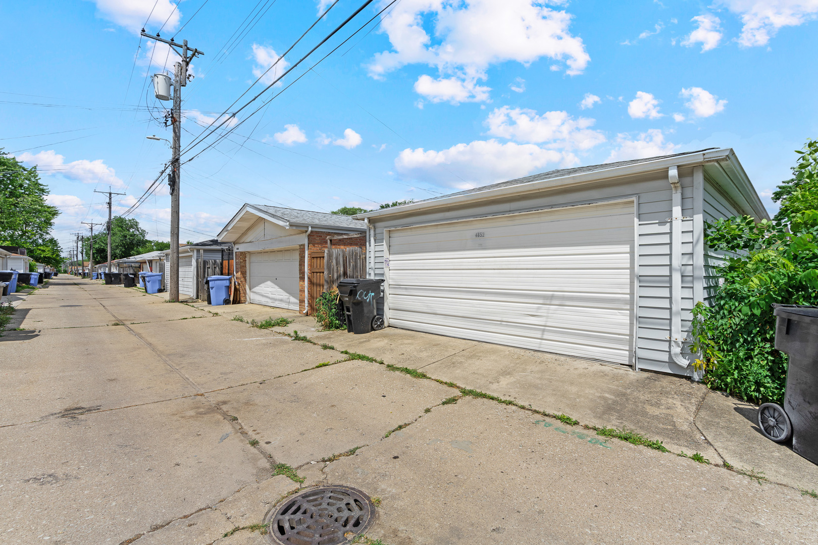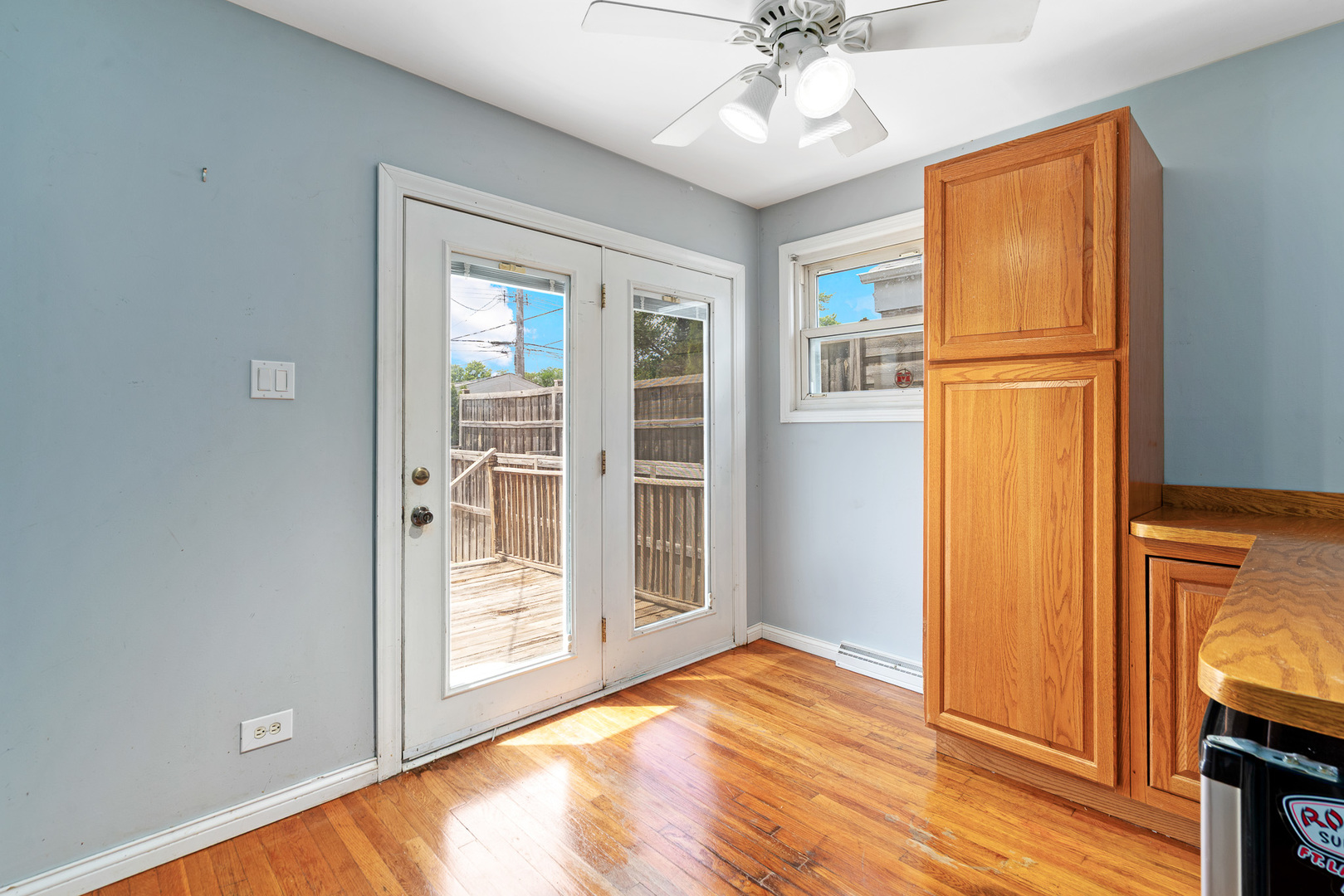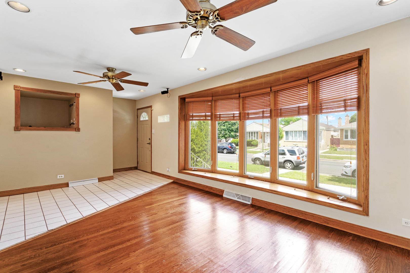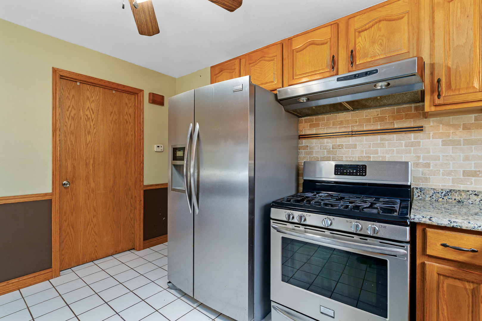 Welcome to this charming brick home situated on a quiet block just minutes from the airport, shopping, dining, expressways, and public transportation-offering the perfect blend of comfort and convenience. Step inside to a sun-filled living room featuring a beautiful bay window and rich hardwood flooring under the carpet. The updated kitchen boasts warm oak cabinetry, granite countertops, stainless steel appliances, and a custom tile backsplash-ideal for everyday living and entertaining. The full bathroom includes a luxurious whirlpool tub, and the versatile third bedroom opens through French doors to a spacious deck overlooking the fully fenced backyard. The oversized two-car garage features a large overhead door with direct yard access-perfect for hobbies, storage, or additional outdoor space. Additional highlights include a handy laundry chute to the basement and a partially finished lower level complete with a cozy family room, fourth and fifth bedrooms, and area for a second full bathroom-complete with an additional whirlpool tub that will remain with the home. Don’t miss this fantastic opportunity to own a well-maintained home in a desirable location with room to grow!