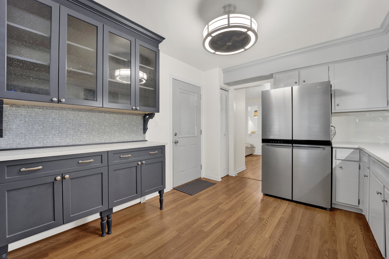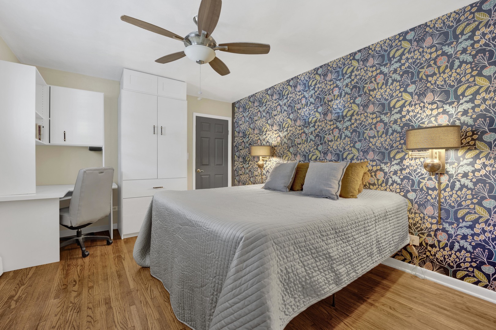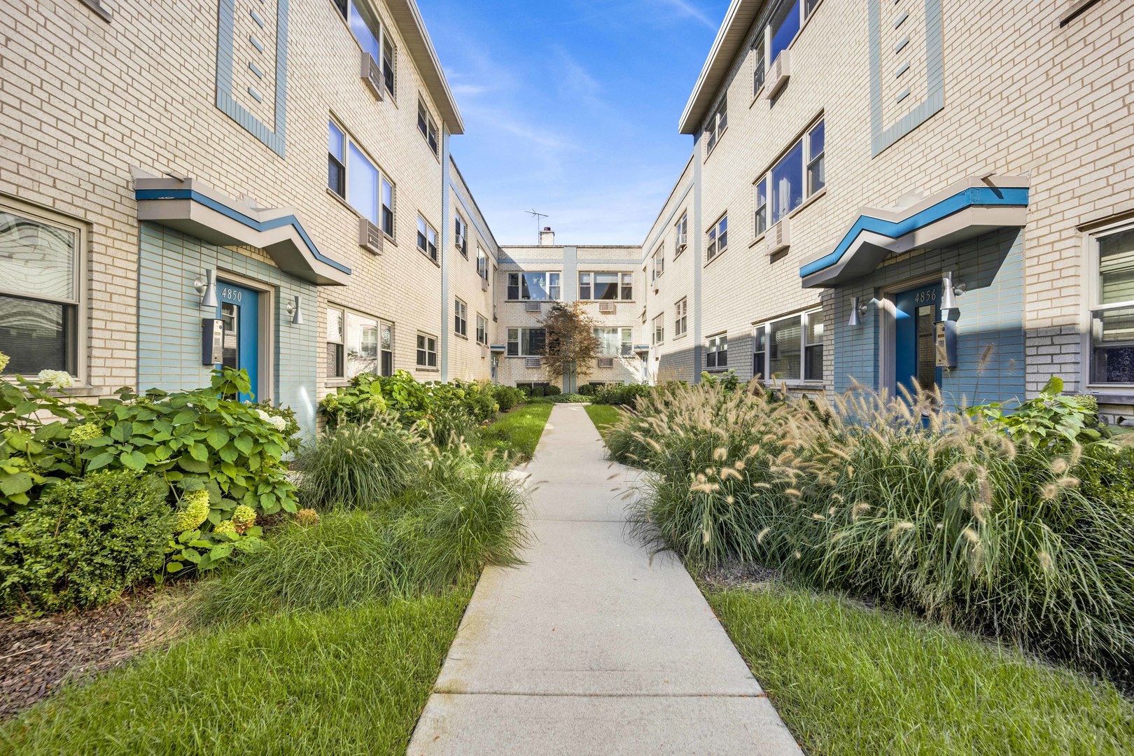 OPEN HOUSES CANCELED. Prime Ravenswood Corner 2 bed 1 bath high 1st floor charming mid century modern condo. Located on a tree lined street just North of Lawrence and West of Ashland, you can walk 10 minutes or less to 3 different train lines – Brown, Red or Metra! Just a skip Northeast to the heart of Andersonville and just West of Uptown’s historic strip and East of the square in Lincoln Square. Great spot to be for those who want an easy commute while still having a quiet living space. A comfortable/homey well designed and remodeled interior help to show off all the light that 3 exposures bring into this corner cutie. Customized kitchen with updated appliances, spacious bright living room with additional dining space, hardwood floors, 2 large bedrooms of equal size and custom closets, built-ins, and window features throughout. HUGE private storage in the basement along with bike storage and laundry. Well funded and run building and association. Laundry is shared in basement and parking is behind the building exterior off alley, just around the corner from the unit’s back door. Parking is not conveyed with the sale.