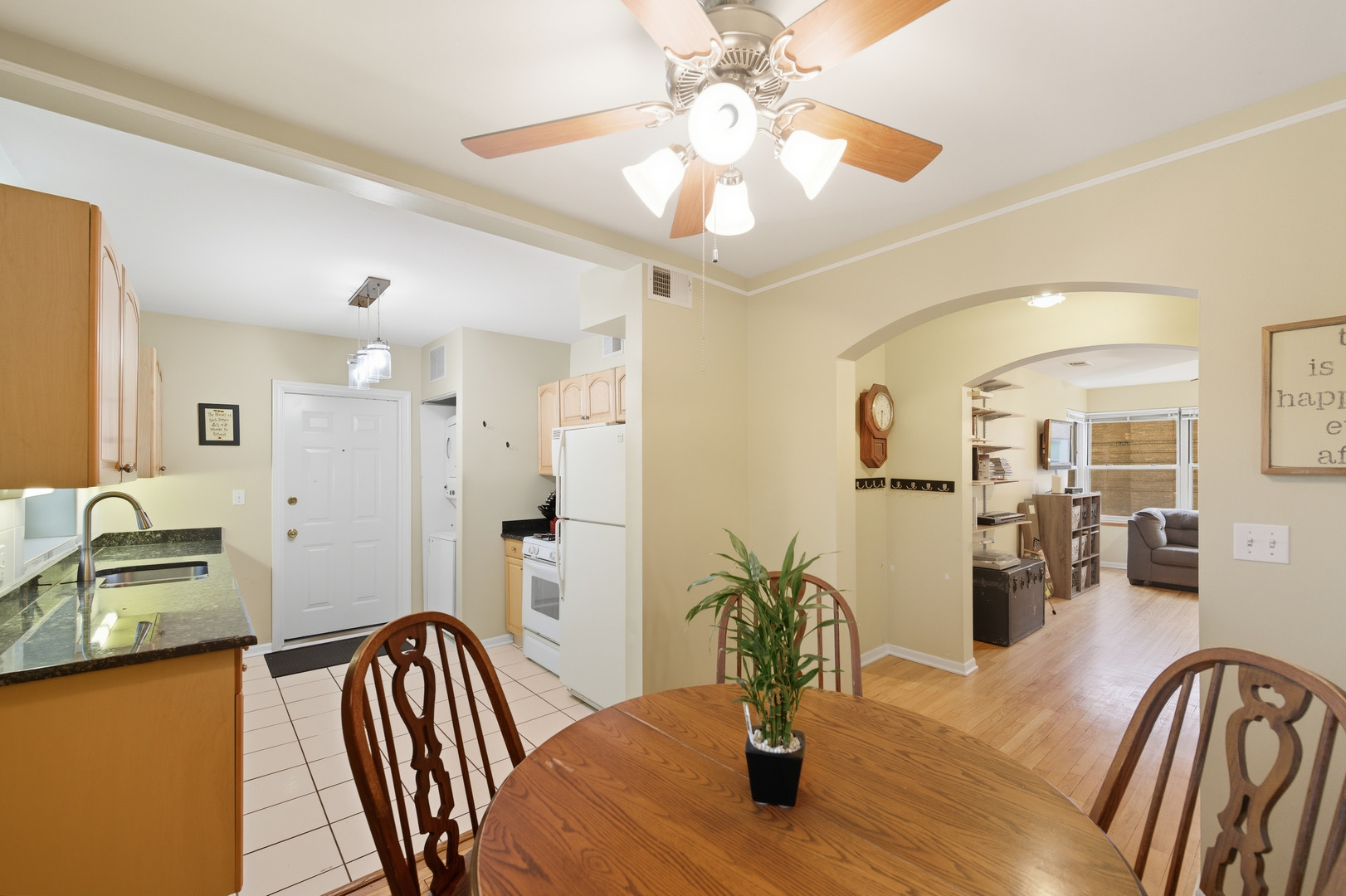 Charming 2BD/1BA home with Deeded Parking included in Wolcott Village, a beautifully maintained community nestled in the heart of Ravenswood. This sun-filled two-bedroom, one-bath home is perfectly situated within the complex, offering serene views of the landscaped grounds. Step inside to an inviting foyer that opens to a spacious living room, a separate dining area, and two generously sized bedrooms. The kitchen features maple cabinets, granite countertops, and hardwood floors that flow seamlessly throughout the unit. Additional highlights include an updated bath, in-unit washer and dryer (2018), and central A/C (2018). This unit comes with gated and secured deeded parking, a large storage, a bike room, and internet and cable included in the monthly HOA fee. This prime location is just steps to Winnemac Park, Andersonville, Lincoln Square, Ravenswood Metra, the CTA Brown Line, Mariano’s, Colectivo Coffee, and so much more. A well-managed association and vibrant community make this a wonderful place to call home.