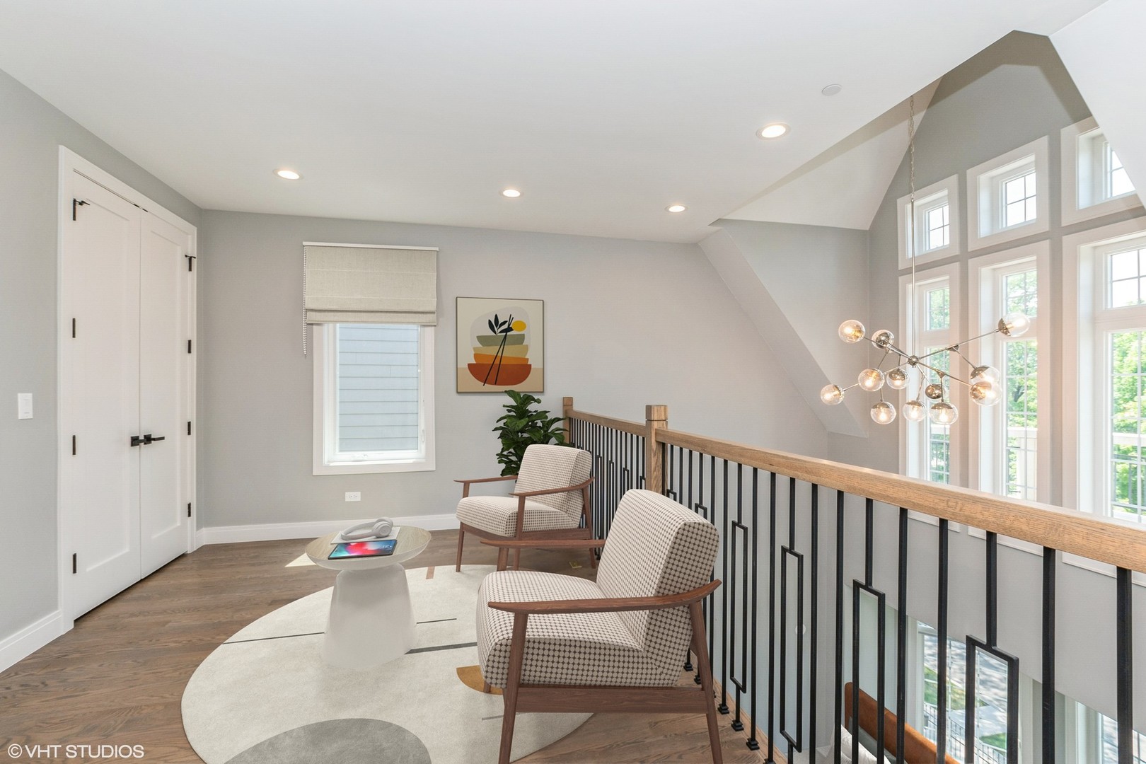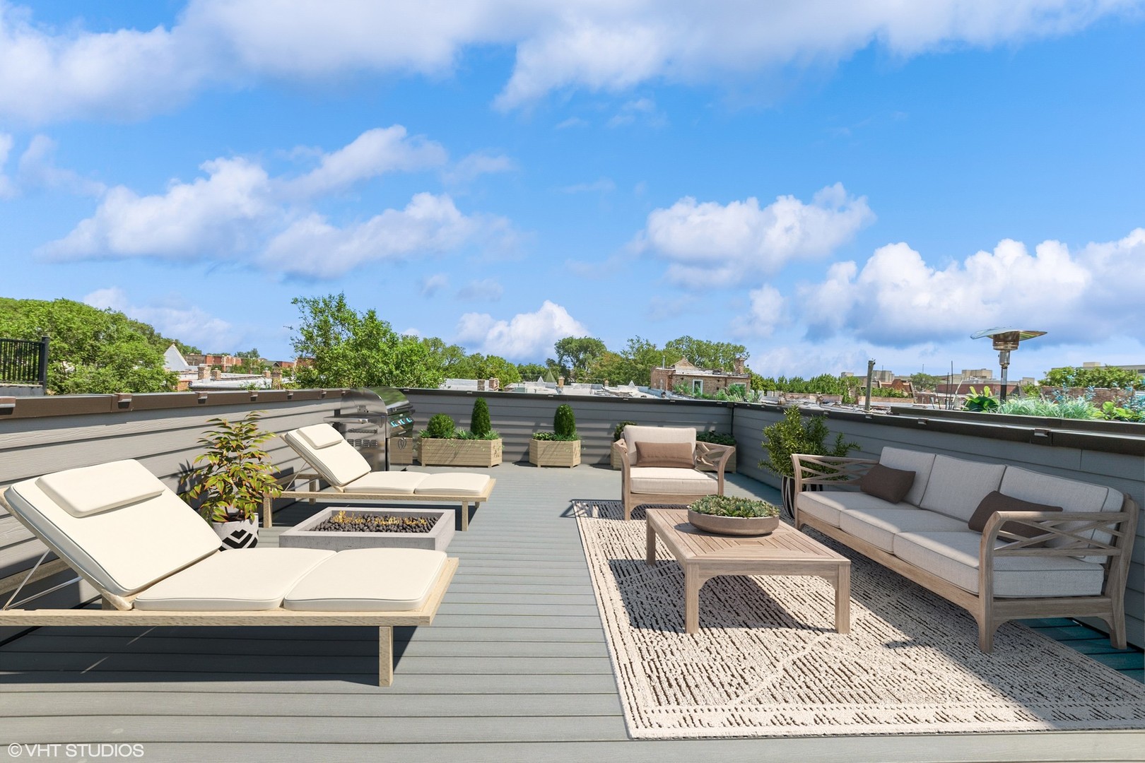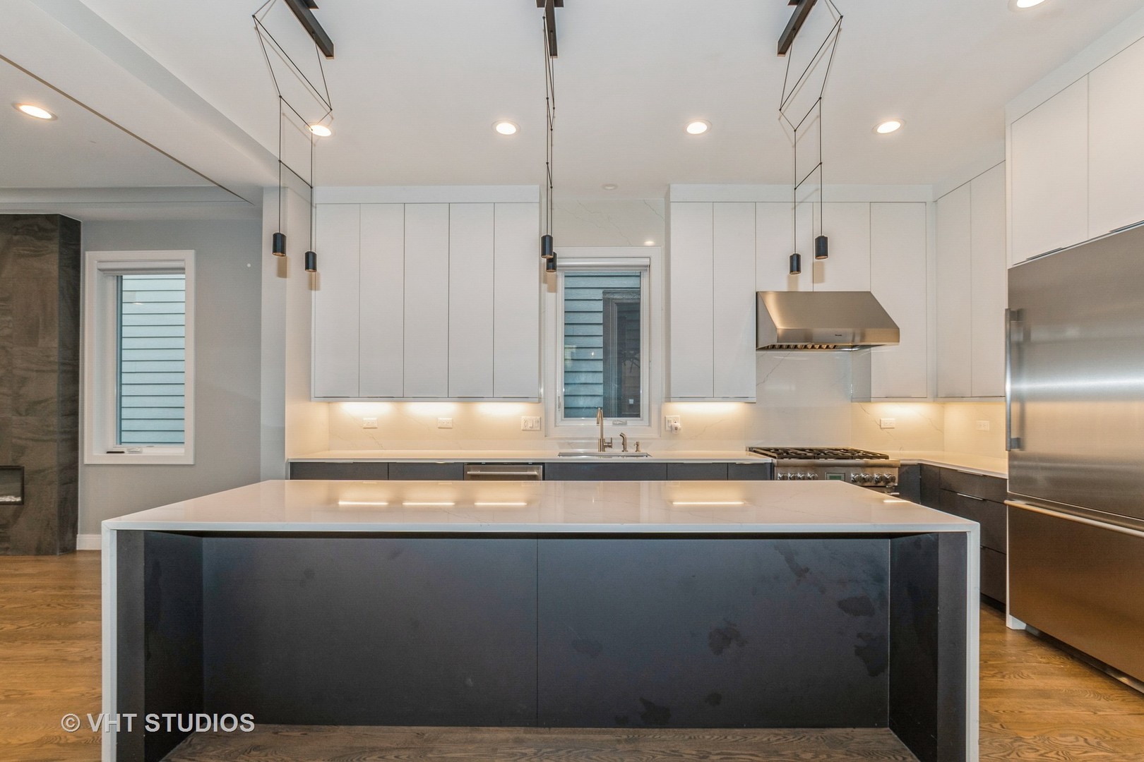 This stunning custom-built 5 bedroom/ 4.1 bath mansion with a plethora of natural light and expansive outdoor space on prestigious King Dr. An absolutely spectacular masterpiece that is located in the iconic Bronzeville neighborhood, steps away from University of Chicago, IIT and DuSable Museum. Expansive main living space with dining area with tray molding and uplighting leads to butler’s pantry. A beyond exceptional modern designed kitchen that is appointed with upgraded custom 63 inch cabinetry, under cabinet lighting, quartz countertop, 10-foot island with waterfall island and loaded with Thermador appliances. Family room has oversize windows, a stately fireplace, coffered ceiling leads to a rear mudroom that walks out to a large patio with direct access to a 2 car garage with EV charging capability. Three (3) bedrooms on second floor including luxurious primary suite with large windows, balcony, two (2) walk-in closets, and spa like master bathroom with heated floors and dual sinks. Well appointed “Jack and Jill” bathroom connected to breath-taking 2-story loft area with 14′ ceiling leads to the third floor recreational area. Top level equipped with full bathroom and recreational room with wet bard and sliding doors so you can get away from it all on this oversized rooftop deck with Trex prewired for sound with tree top/ city views. Large lower level with theater room including wet bar, 2 spacious bedrooms, full bathroom, laundry room and plenty of space for your storage needs. Additional features that owners upgraded from developer include hardwood floors, glass railing, designer selected lighting throughout, high end tile selection, upgraded closet systems, zoned heating/cooling, sump pump & ejector pump with drain tile system. ACCESS LOCATION: Proximity to highway 90 / 94 Kennedy Expressway & Lakeshore Drive, close to Green Line Train Station. METRA & CTA Bus Stop and less than 15 minute to downtown Chicago. SHOP AT: Mariano’s, Whole Foods, Hyde Park Produce & Trader Joe’s. ACCESS TO GREEN & NATURAL SPACES: Blocks from XS Tennis & Education Foundation, Washington Park w/ jogging trails, baseball field, tennis courts, & mature trees. Welcome to this magnificent home!
