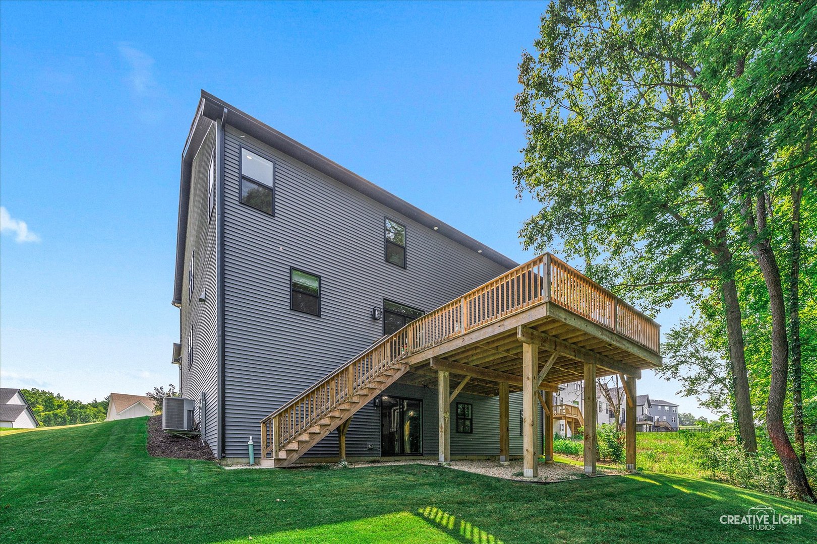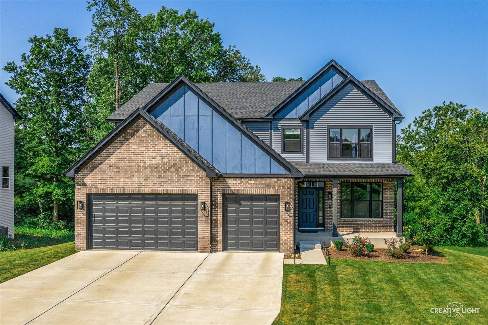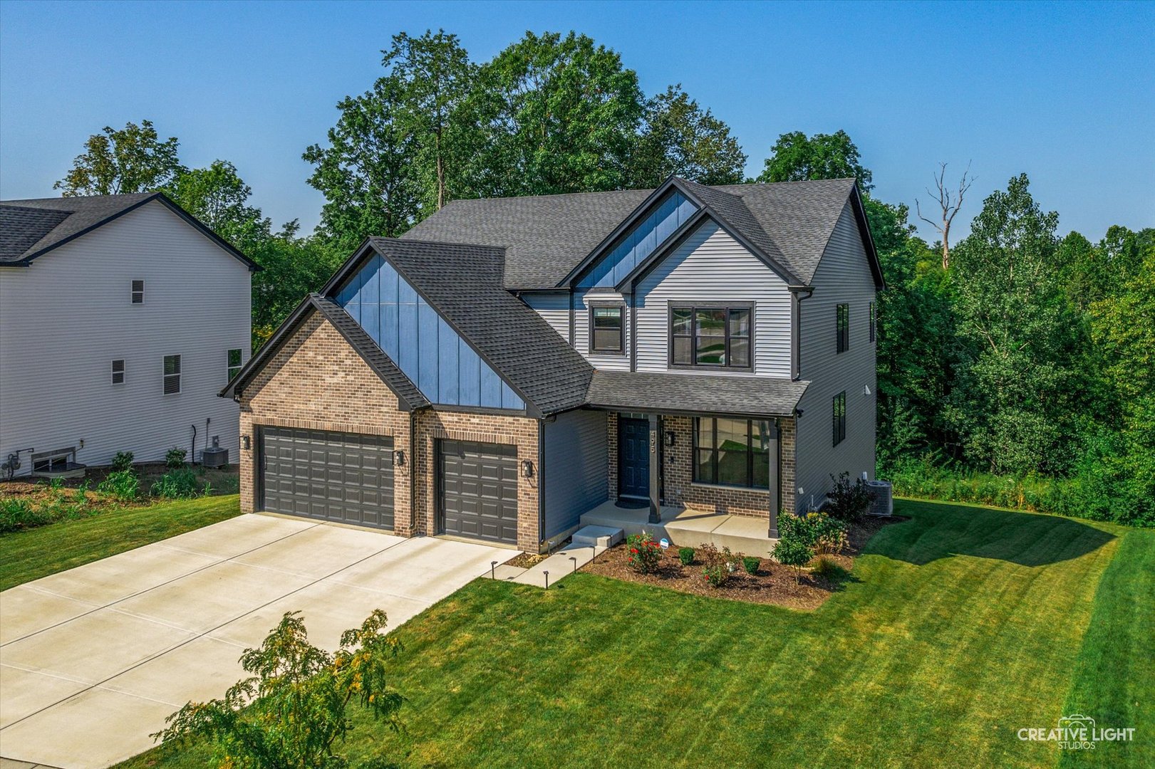 Why wait a year for a new build when this stunning, move-in ready home is available now? Set high on a hill in a wooded neighborhood near the Fox River and historic downtown Yorkville, this spacious property blends modern design, comfort, and convenience.From its bold exterior finishes to its open, light-filled floor plan, every detail has been thoughtfully designed. Situated on one of the largest lots in the neighborhood-over 2/3 of an acre-you’ll enjoy wooded views from your expansive deck, a deep-pour walk-out basement with plumbing rough in, and plenty of space for year-round activities. As you enter into this stunning home, you are greeted by the cozy living room and spacious dining room which allows for ample space for entertaining. The open-concept family room connects to the kitchen and casual dining space, with a fireplace for cozy nights. With two living spaces and two dining areas, this home is ideal for gatherings, holidays, and everyday comfort.The luxury kitchen features sleek modern finishes, quartz countertops, matching appliances, and room for every chef in the family. Warm, wood-look luxury vinyl plank floors flow throughout the first floor, adding both beauty and durability. And rounding out the first floor is a study (could be used as a fifth bedroom) and a well appointed full bath. Upstairs, you’ll find four large bedrooms and two full bathrooms. The primary suite is truly a retreat-large enough for a bedroom and sitting area, complete with a wall-mounted fireplace. The spa-like en suite bath offers a walk-in shower, private water closet, and a massive walk-in closet that feels like its own room. Each additional bedroom boasts oversized closets, and the second-floor laundry room makes chores a breeze. Located just half a mile from the Fox River kayak launch and downtown Yorkville’s restaurants, ice cream shops, and bars-you can even catch river views from the second story!Don’t miss the chance to own this gem in one of Yorkville’s most beautiful wooded neighborhoods.