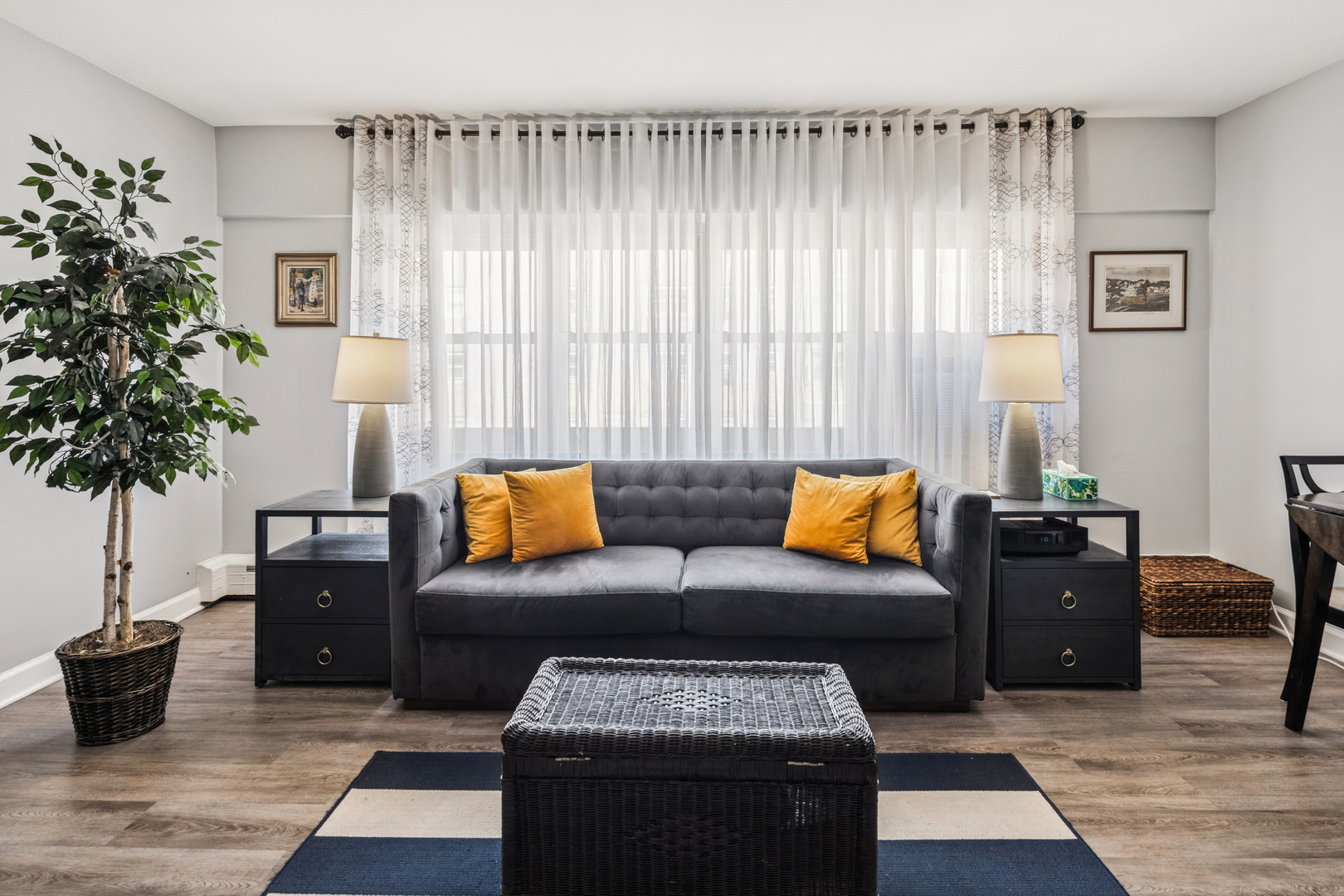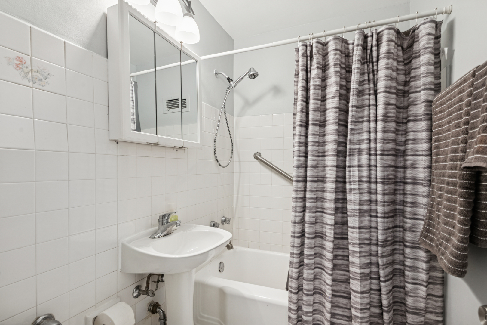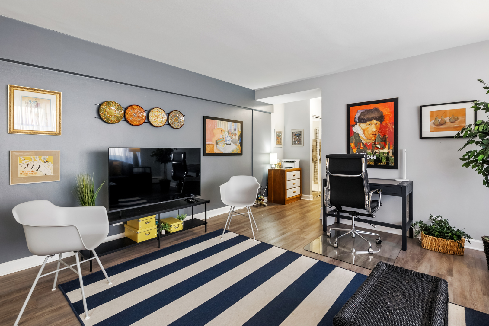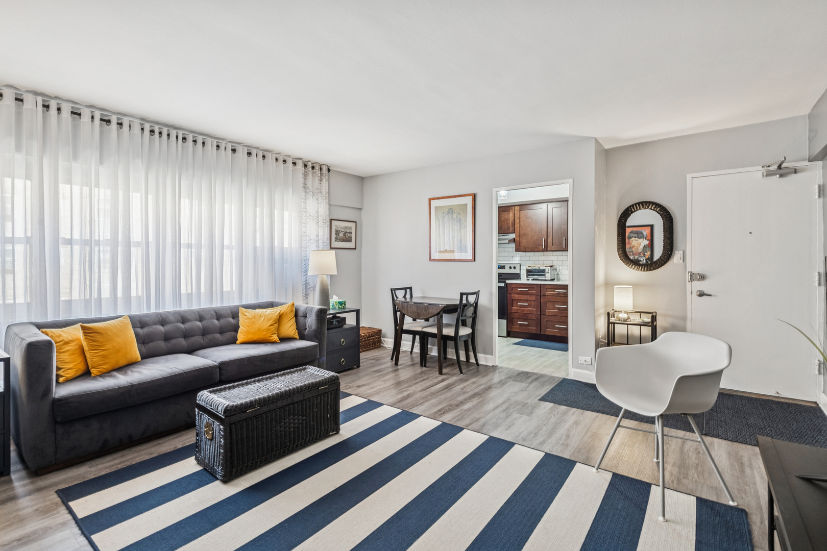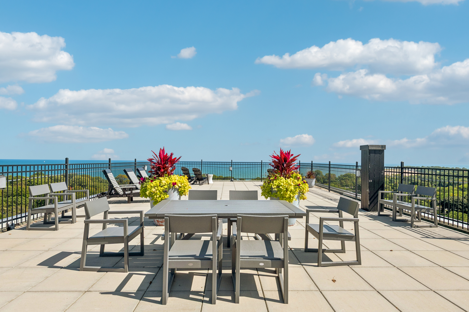 Completely Turnkey residence at very popular Shoreline Park. Residence 1009 features wonderful sunlight, no wasted hallway space, luxury high-end vinyl flooring throughout. Kitchen features custom all wood cabinetry with dove tail joints, cylinder brushed stainless steel steel hardware, all Stainless steel appliance package, re-circulating culinary hood, extra deep, single under mount sink, black swan faucet, 1.25″ straight edge contemporary white quartz counters with grey veining. FULL SIZE DISHWASHER. Wonderful window in the kitchen. Large rectangle format porcelain floor tiles. This designer residence painted in light grey with white trim and moldings. Generous living space accommodates a desk, small eating table and living room furniture. 16’x11′ bedroom with ceiling fan and three closets. Linen closet. Pristine, contemporary white tiled bathroom, pedestal sink, medicine cabinet for storage. Steps to Lake Michigan, restaurants, historical music theaters, restaurants, grocery and LSD on ramp at Lawrence. Easy access to public transportation including the 136, 146 and 148 buses that stop at the front door of Shoreline Park. This is a full amenity building including 24 hour doorstaff, on-site management, maintenance, building engineer, incredible sundeck completely outfitted, 360 degree views with no obstructions, gym, game room, business center, hospitality and laundry rooms. Deeded garage parking is included in the listing price. Residence 1009 is a true gem, nothing to do but move in. Furniture/furnishings also negotiable for a true “plug and play” transaction.