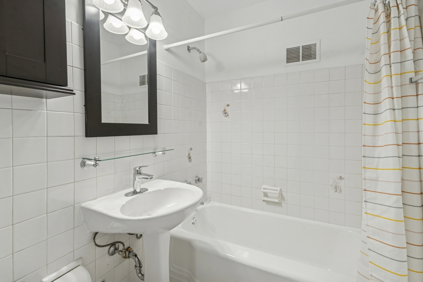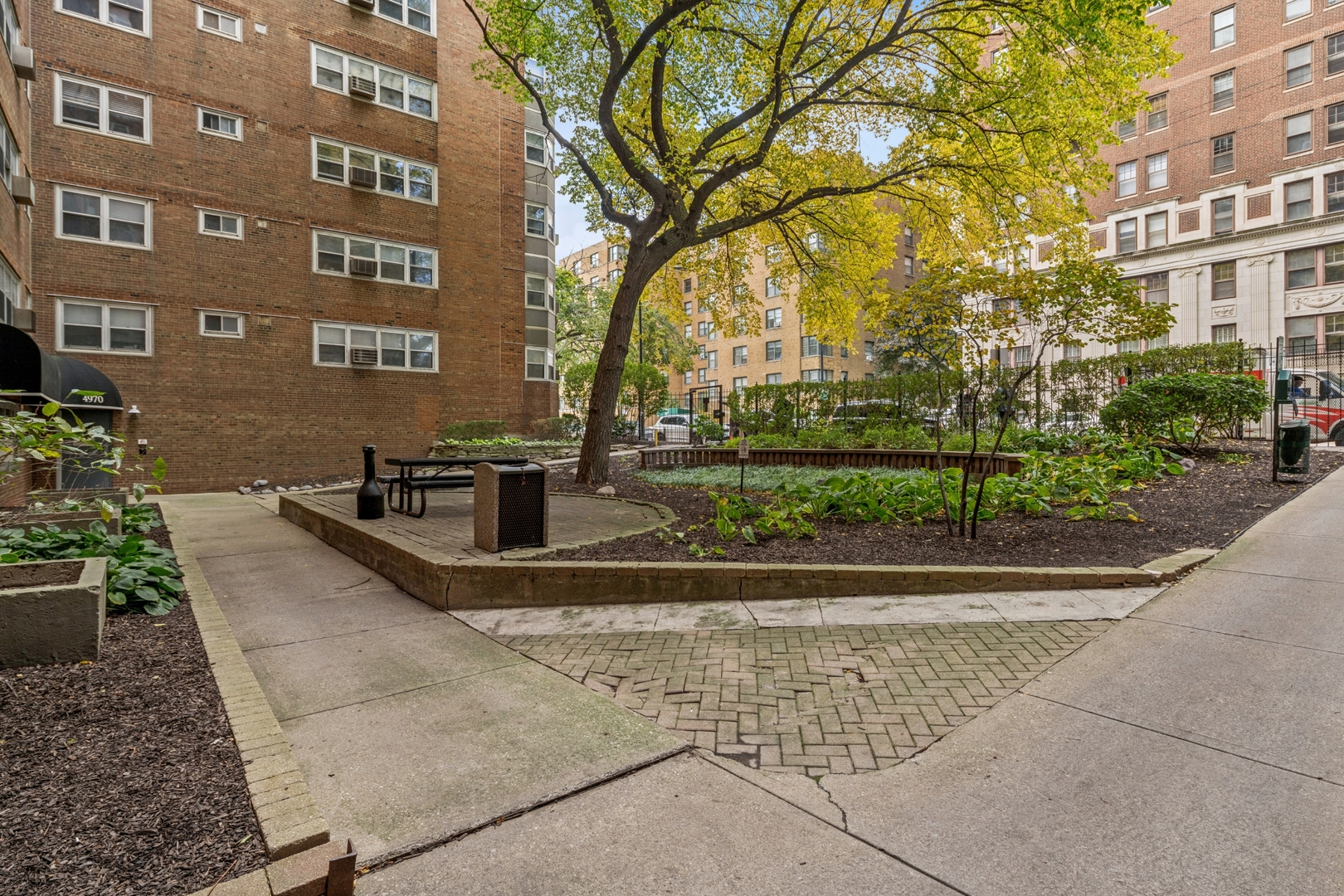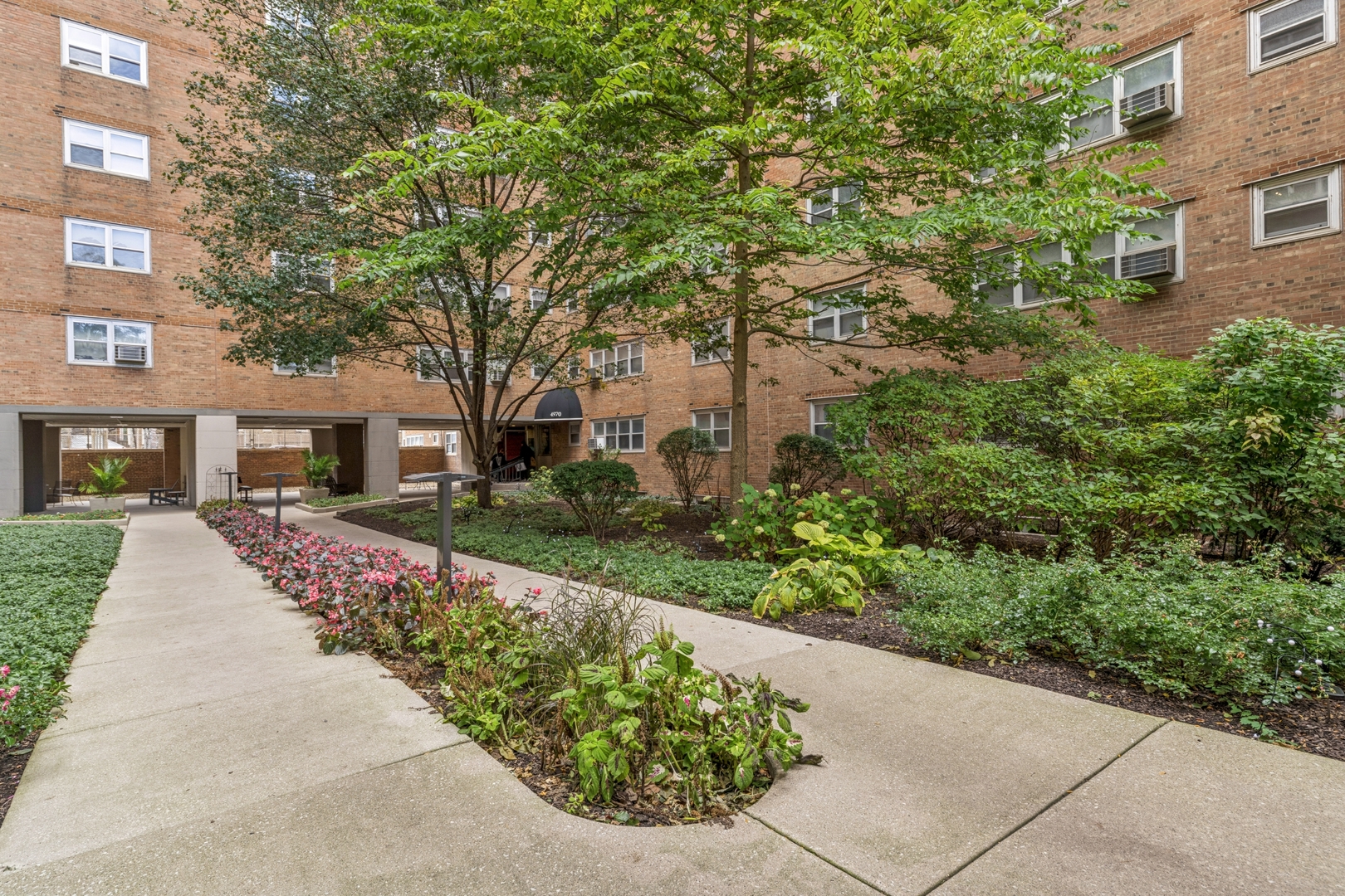 Spacious & charming unit. North view into the courtyard. Freshly painted with a new A/C unit. Kitchen has a window giving it natural light. It also has brand new wall tile and refrigerator. Hardwood flooring in main living area. Good closet space. Storage on the same floor as the unit. Easy Transportation just outside your door plus close to restaurants and shopping. Just across from several parks and just minutes to the lakefront and bike path!Pet friendly building, two per unit with no weight restriction. All utilities are included in your monthly assessment but please note that electric will vary month to month depending upon your usage. Building amenities include: guest parking, business centre, bike storage ,exercise facility,roof top deck, picnic area with grills, common laundry rooms, game room and 24 hour door staff. Parking can be rented from individual owners if and when available. I am told that there is parking currently available but you will need to verify.