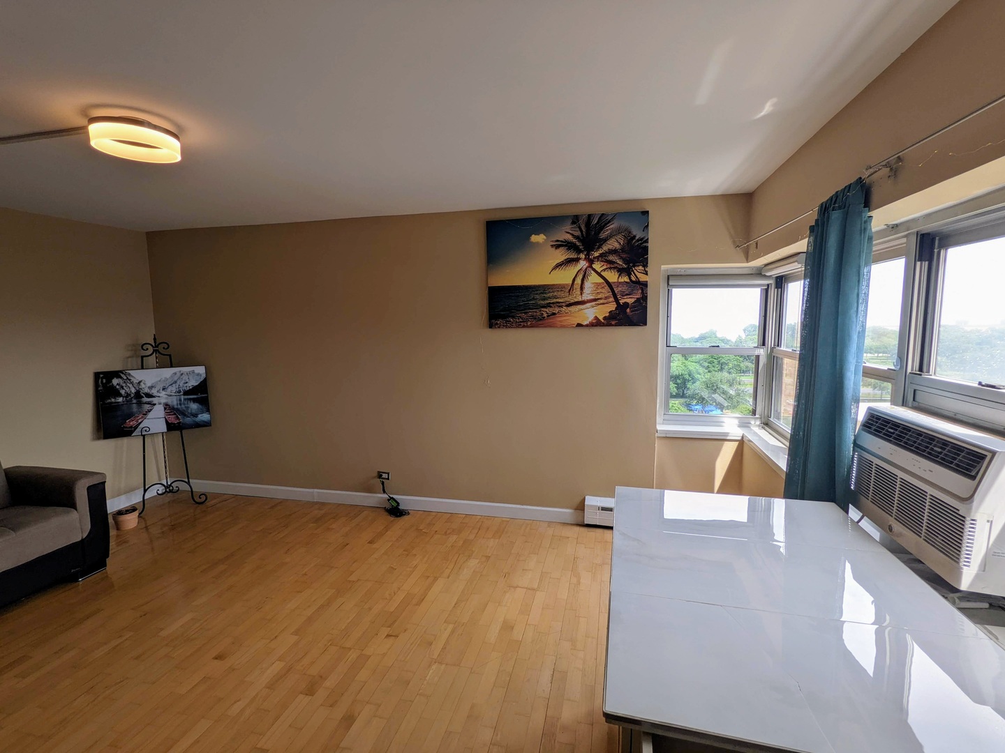 1-bedroom, 1-bathroom condo with breathtaking lake and city skyline views! This updated unit boasts south- and east-facing windows, flooding the space with natural light. Includes a built in 3-stage water filtration system and brand new window AC installed. It shows beautifully and is move- in ready. Located in a full-amenity building, residents have access to a fully equipped gym, game room, sundeck, bike room, 24-hour front desk staff, package receiving, laundry room, business center, on-site management, and maintenance. The monthly assessment covers everything except electricity, which averages just $5-$15/month. Perfectly situated across from the lakefront and bike path, steps from Montrose and Foster beaches, and with excellent public transportation nearby, this condo offers the best of urban living with serene lakefront access. Don’t miss this gem!