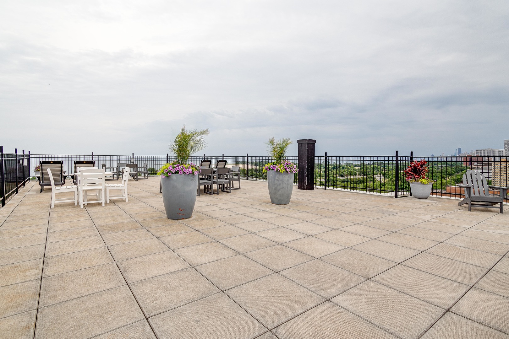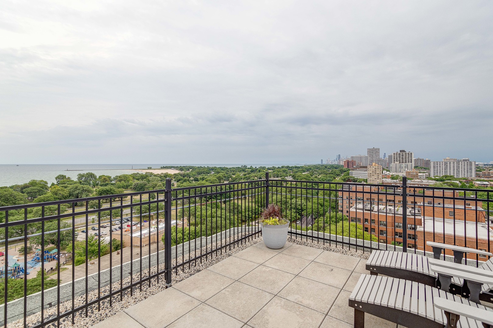 Perfectly located on beautiful Marine Drive and just across the street from the park sits this deluxe one bedroom condo with one of the biggest floor plans. This light-filled condo overlooks a beautifully landscaped courtyard. Building offers 24-hour doorman, fitness center, roof top deck with stunning views, business center, coin laundry room, and storage room. Deeded parking included. Steps to the express buses, 0.4 miles to Argyle Redline El, across street to the park, lakefront, Montrose and Foster Beaches. Surrounded by some of the best nightlife, restaurants, and shopping in the city!