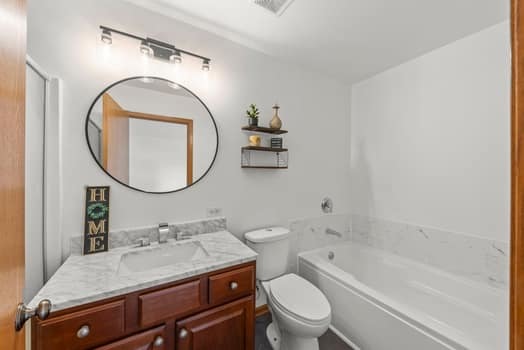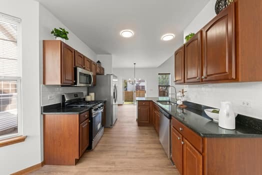 Welcome to this beautifully maintained 3-bedroom, 2.5-bath home in the sought-after Marquette Estates neighborhood. Step inside to a bright, open-concept layout featuring dramatic vaulted ceilings in the living room and an elegant open staircase plus a cozy fireplace. The main level boasts brand new luxury vinyl plank flooring, adding both style and durability. The updated kitchen offers granite countertops and new stainless-steel appliances-perfect for everyday living and entertaining. Upstairs, you’ll find three spacious bedrooms, including a large primary suite with a remodeled ensuite bath and walk-in closet. The two additional bedrooms are generously sized and share a beautifully renovated hall bath. All bathrooms feature new granite countertops, modern fixtures, stylish mirrors, and updated flooring. Additional updates throughout the home include new carpeting on the upper level and updated light fixtures in every room. The full, dry basement offers ample storage space and excellent potential for finishing. A brand-new roof provides peace of mind for years to come. Enjoy low HOA fees and the convenience of being minutes from I-55, all within the highly rated Plainfield School District 202.