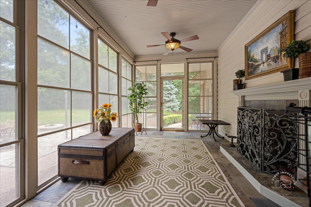 Freshly painted- Come take a look .Welcome to 4N494 Hidden Oaks, an elegant custom-built home nestled on 1.5 acres in the highly sought-after Hidden Oaks community of St. Charles. This 5-bedroom, 5 full bath residence showcases timeless craftsmanship, rich custom woodwork, and spacious living areas filled with natural light.The main level offers a formal dining room with custom mill work, a living room with fireplace, a family room with custom wood work and a striking double-sided fireplace shared with the kitchen, and a sunroom with its own cozy fireplace-perfect for year-round relaxation. The custom kitchen is designed with high-end cabinetry, quality finishes, and ample space for cooking and entertaining.The bedroom layout is ideal, featuring a Jack and Jill bath connecting two bedrooms, a private ensuite bedroom, and a luxurious primary suite with spa-like bath.The finished basement expands your living space with a media room, large recreation area, additional bedroom, and full bath-ideal for guests or extended living.Set on a wooded private 1.5-acre lot with mature trees, a path to a tree house and play area, open space, this home offers privacy and tranquility while still being close to downtown St. Charles, top-rated schools, near The Great Western Trail,and the scenic Fox River.