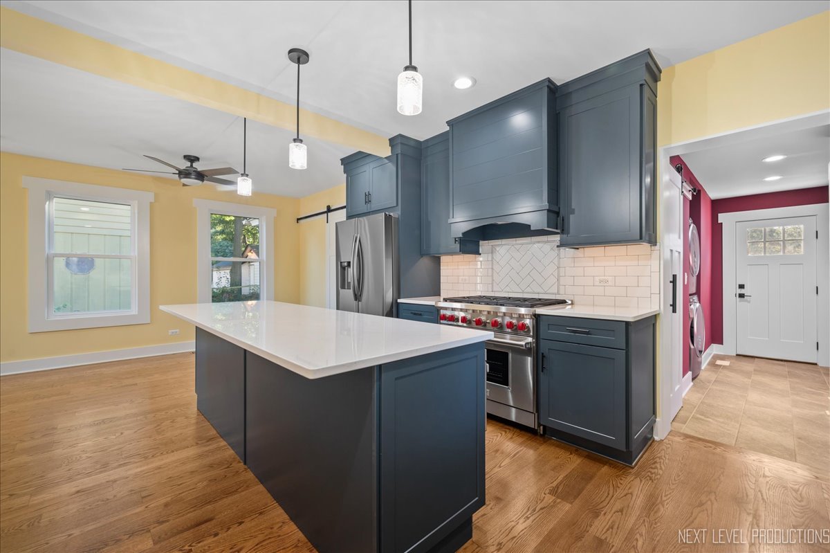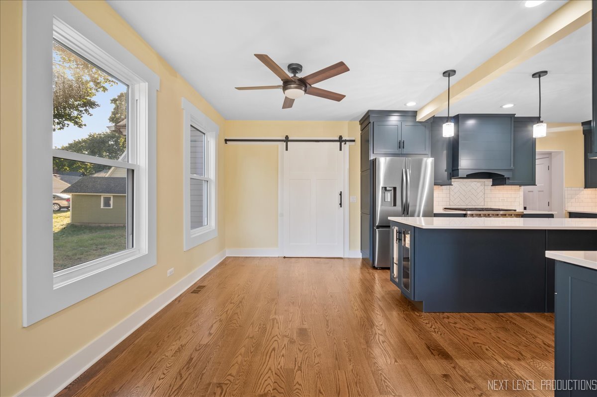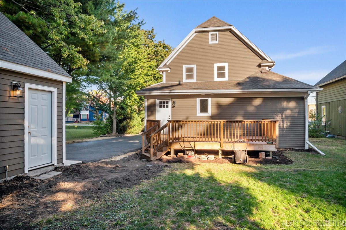 Welcome to this completely renovated 4 bedroom, 2.5 bath farmhouse, located just steps from downtown Wasco yet tucked away from traffic, offering the perfect blend of convenience, privacy, and charm. Set on a professionally landscaped lot with mature trees and a beautiful new stone pathway, this home welcomes you with a huge front porch, brand new driveway and 2-car garage. A freshly painted exterior with new cement board siding on both the house and garage. The newly installed fenced backyard features a spacious new deck, perfect for relaxing or entertaining. Inside, you’ll find all-new hardwood floors, recessed lighting, and a light, modern palette throughout. Beneath the surface, structural LVL laminated veneer lumber beams have been installed throughout the basement, first floor, and second floor, spanning the full depth of the property for enhanced strength and stability. The second floor primary bedroom now features a newly vaulted ceiling supported by these beams, adding architectural character and volume. The gourmet eat in kitchen is fully outfitted with all new stainless steel appliances, including a 6-burner Wolf stove with high power vent, Bosch dishwasher, microwave drawer, warming drawer, and a large island with breakfast bar. High end Thomasville cabinetry, beautifully designed quartz countertops, a subway tile backsplash, and both under and inside cabinet lighting complete this dream kitchen. The adjacent dining room provides an inviting space for gatherings. The main floor primary suite offers a cathedral ceiling, a walk-in closet with designer organizers, and an elegant bathroom with heated floors and a luxurious walk-in shower. The spacious first floor laundry room features heated floors, a large pantry, new Whirlpool washer and dryer, and new shelving, combining practicality with comfort. A powder room adds convenience. Upstairs, you’ll find three additional bedrooms, including a second primary bedroom with designer closet organizers and a beautifully finished full bath with heated floors. The attic has been updated with new drop-down stairs and new insulation for improved efficiency. The basement includes new energy saving windows and newly added shelving along the stairway. Additional updates include: All new windows (except for the charming original leaded-glass windows) New furnace, and water heater Smart thermostat and upgraded insulation New sump pump and backup pump. Ceiling fans installed in all bedrooms and living areas (wall mount switches & remote) Fully replaced electrical and plumbing systems Wall-mounted TV outlets in every bedroom Partial roof replacement in 2024 Located in award winning St. Charles School District 303, and walkable to parks, the post office, and the elementary school, this move in ready home combines thoughtful craftsmanship, modern upgrades, and timeless farmhouse appeal.