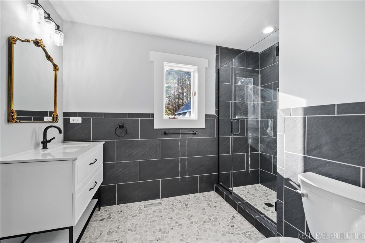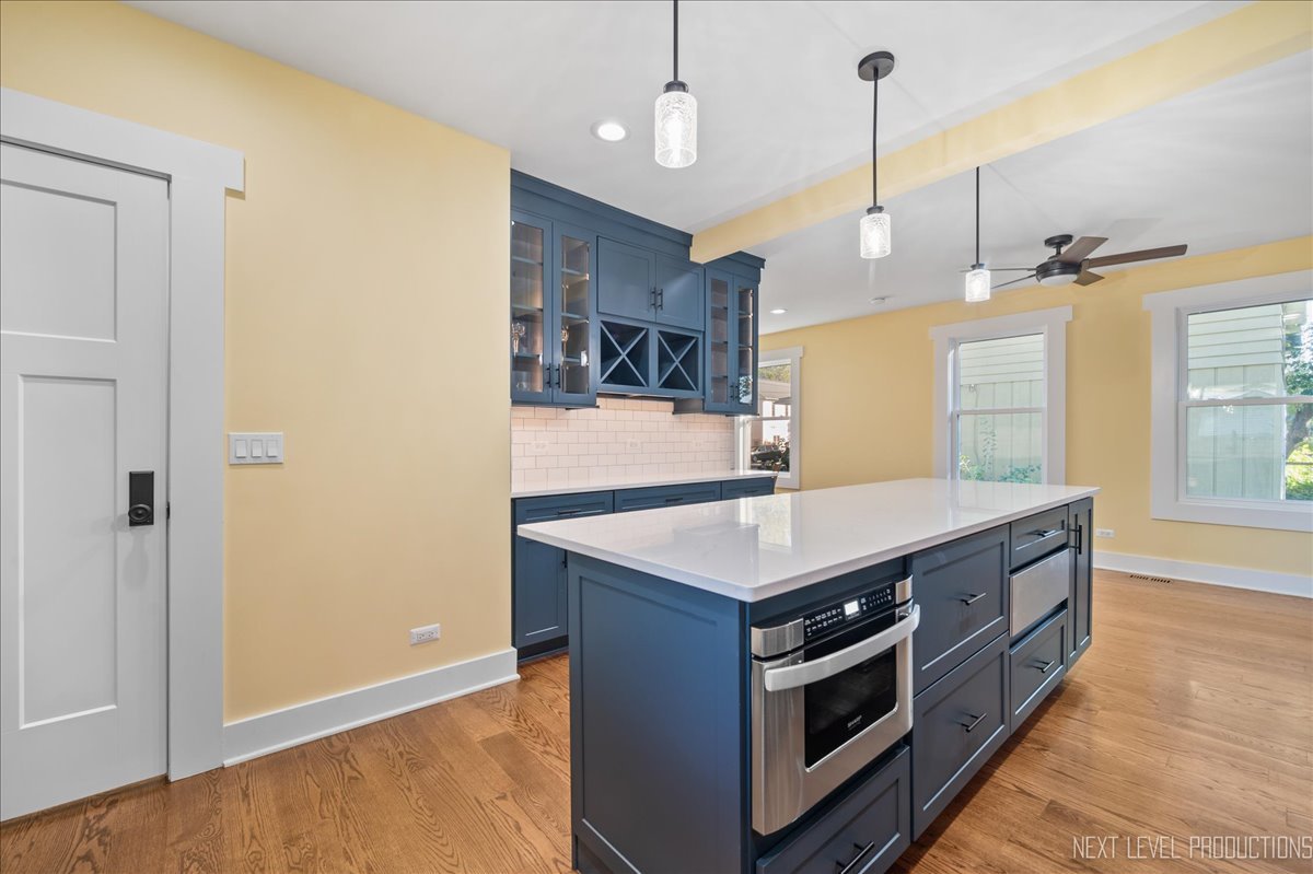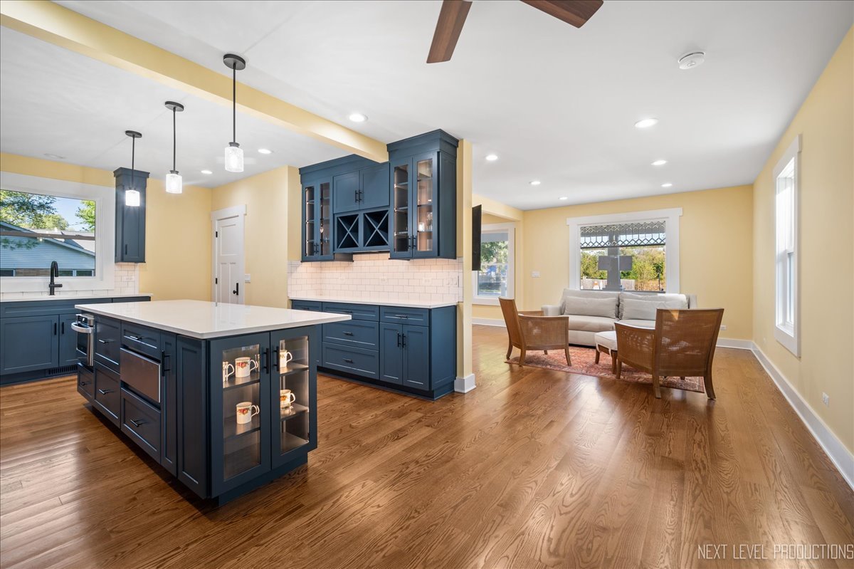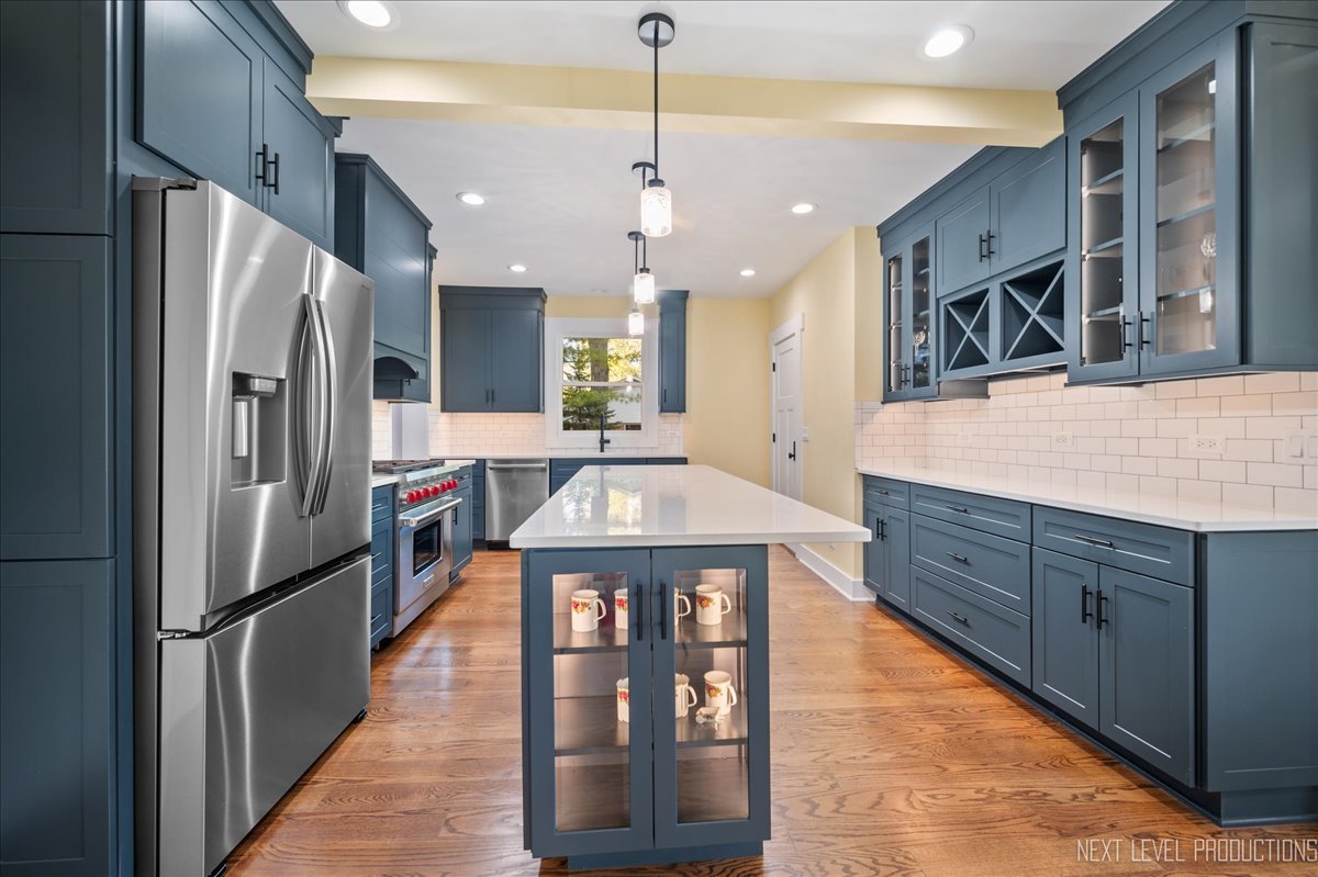 Welcome to this completely renovated 4 bedroom, 2.5 bath farmhouse, located just steps from downtown Wasco yet tucked away from traffic, offering the perfect blend of convenience, privacy, and charm. Set on a professionally landscaped lot with mature trees and a beautiful new stone pathway, this home welcomes you with a huge front porch, brand new driveway and 2-car garage. A freshly painted exterior with new cement board siding on both the house and garage. The newly installed fenced backyard features a spacious new deck, perfect for relaxing or entertaining. Inside, you’ll find all-new hardwood floors, recessed lighting, and a light, modern palette throughout. Beneath the surface, structural LVL laminated veneer lumber beams have been installed throughout the basement, first floor, and second floor, spanning the full depth of the property for enhanced strength and stability. The second floor primary bedroom now features a newly vaulted ceiling supported by these beams, adding architectural character and volume. The gourmet eat in kitchen is fully outfitted with all new stainless steel appliances, including a 6-burner Wolf stove with high power vent, Bosch dishwasher, microwave drawer, warming drawer, and a large island with breakfast bar. High end Thomasville cabinetry, beautifully designed quartz countertops, a subway tile backsplash, and both under and inside cabinet lighting complete this dream kitchen. The adjacent dining room provides an inviting space for gatherings. The main floor primary suite offers a cathedral ceiling, a walk-in closet with designer organizers, and an elegant bathroom with heated floors and a luxurious walk-in shower. The spacious first floor laundry room features heated floors, a large pantry, new Whirlpool washer and dryer, and new shelving, combining practicality with comfort. A powder room adds convenience. Upstairs, you’ll find three additional bedrooms, including a second primary bedroom with designer closet organizers and a beautifully finished full bath with heated floors. The attic has been updated with new drop-down stairs and new insulation for improved efficiency. The basement includes new energy saving windows and newly added shelving along the stairway. Additional updates include: All new windows (except for the charming original leaded-glass windows) New furnace, and water heater Smart thermostat and upgraded insulation New sump pump and backup pump. Ceiling fans installed in all bedrooms and living areas (wall mount switches & remote) Fully replaced electrical and plumbing systems Wall-mounted TV outlets in every bedroom Partial roof replacement in 2024 Located in award winning St. Charles School District 303, and walkable to parks, the post office, and the elementary school, this move in ready home combines thoughtful craftsmanship, modern upgrades, and timeless farmhouse appeal.