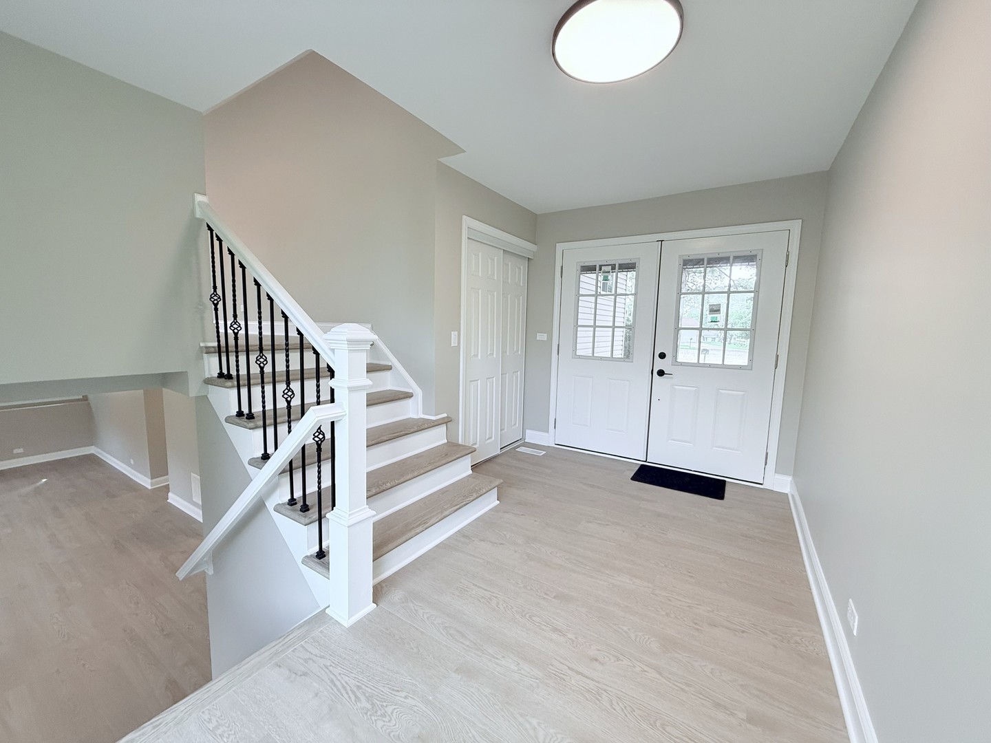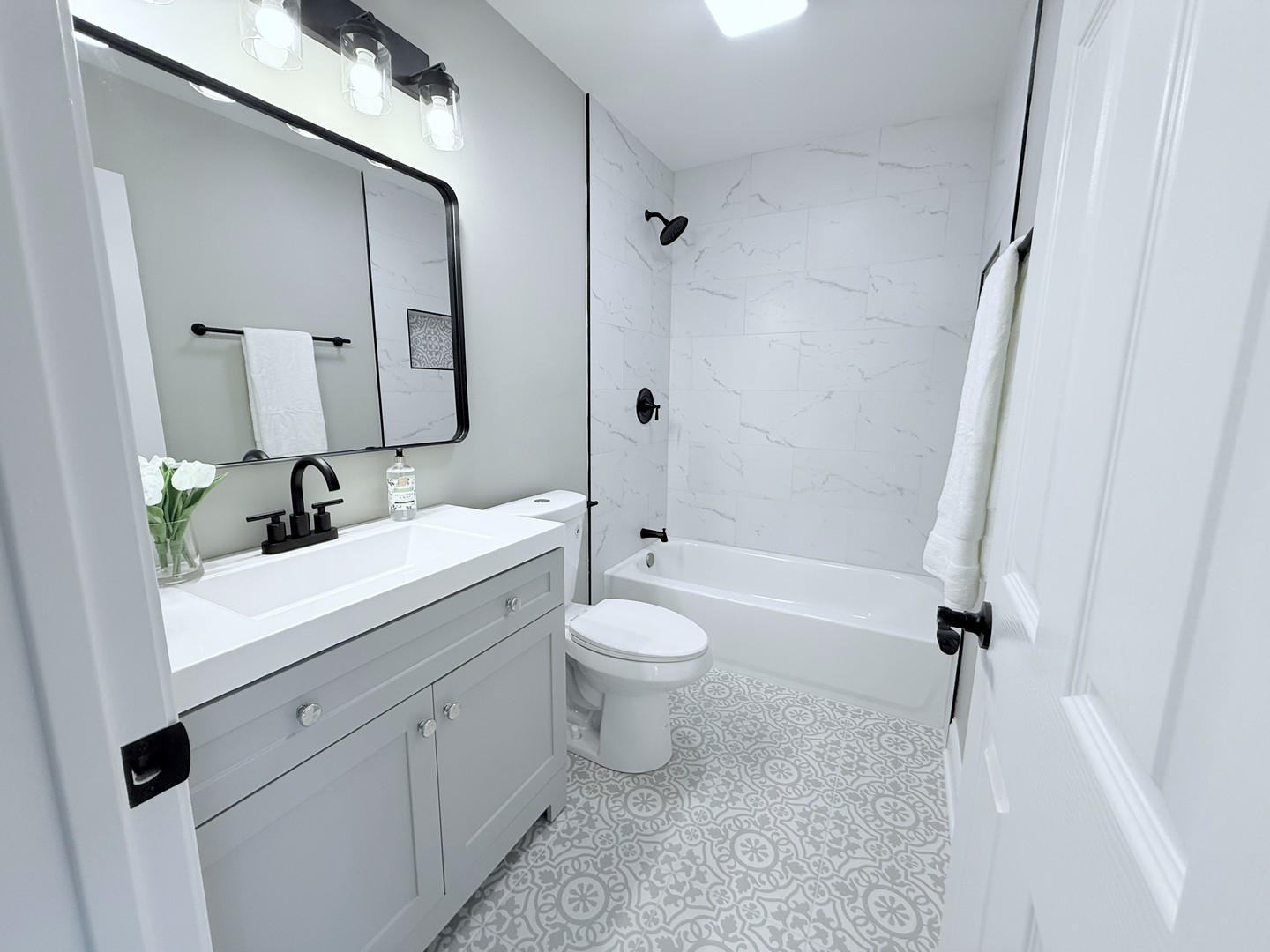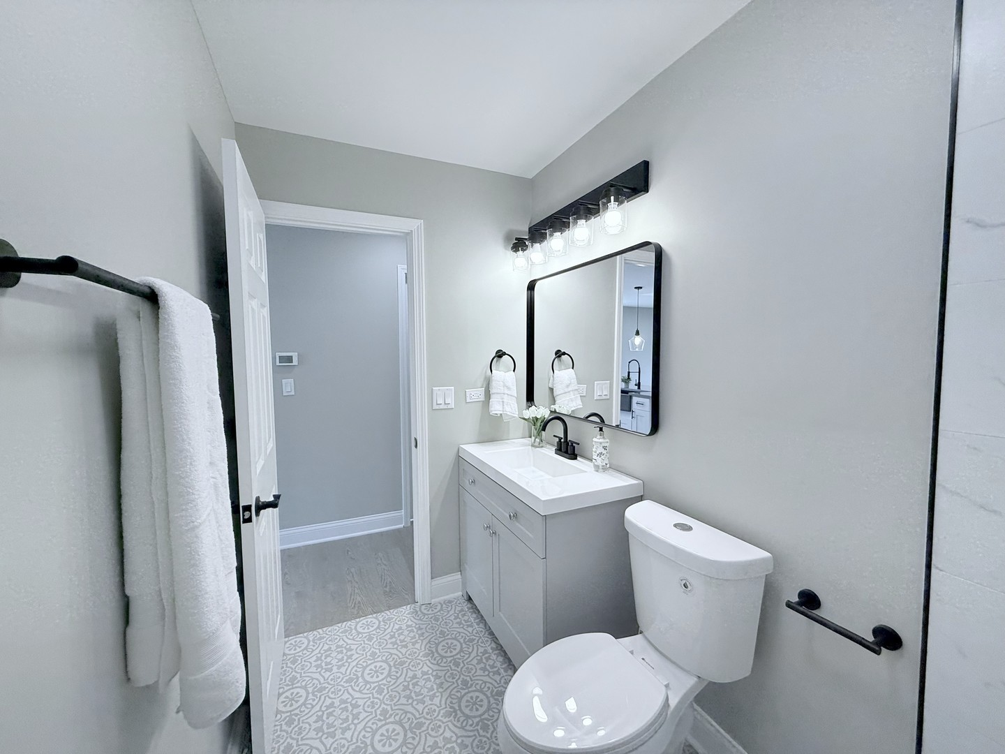 Your Dream Home Is Calling! This beautiful 5-bedroom, 3-bathroom home has been meticulously designed to balance style with everyday comfort. From the moment you step inside, you’ll notice the thoughtful style choices-fresh paint, new waterproof luxury vinyl flooring, black finishes and recessed lighting that brightens every space. The open-concept main level is highlighted by a chef-inspired kitchen with quartz countertops, an oversized island, brand-new cabinets, stainless steel appliances, and a striking marble backsplash-perfect for both entertaining and special gatherings. The main bedroom offers a peaceful retreat with a walk-in closet and a full bathroom, while large windows throughout the home fill each room with an abundance of natural light. The full finished basement is a true showstopper, offering a spacious retreat with a cozy wood-burning fireplace. Whether you envision it as a home theater, game room, gym, or office, this versatile level provides endless possibilities for the way you live and enjoy your home. Additional highlights include an attached two-car garage and updates you’ll appreciate: newer siding & roof, doors, and windows, a long asphalt driveway, along with beautifully updated bathrooms featuring detailed tilework. Outside, you’ll love the ample backyard and side deck-ideal for outdoor fun, gardening, or simply unwinding outdoors. Nestled in a private cul-de-sac, yet just minutes from the Promenade, local dining and shopping, parks, and quick highway access, this home offers both convenience and tranquility. Move-in ready and thoughtfully updated throughout, this is truly the home you’ve been waiting for!