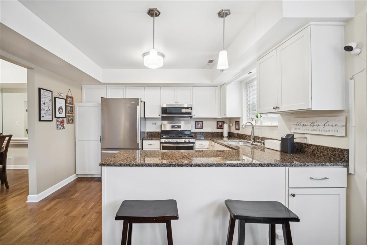 Welcome home to one of Schaumburg’s most sought after town home communities… Sarah’s Grove. This bright and spacious 3 bedroom, 2.5 bath town home offers the perfect blend of comfort and convenience. Walk in and be amazed at the soaring vaulted ceilings that fill the living room with natural light, creating a warm and inviting atmosphere. The kitchen flows effortlessly into the dining and family room creating an ideal space for either entertaining or relaxing by the brick fireplace with new gas insert operable by remote. Upstairs, you’ll find three generous bedrooms, including a primary suite with a private remodeled bath with dual sink vanity, and ample closet space. Two other spacious bedrooms with a second full bath complete the second level. Step outside to your own peaceful retreat, a newer extended brick paver patio surrounded by a new private cedar fence, perfect for morning coffee or summer gatherings. Additional highlights include a 2-car attached garage, convenient main-level laundry, and a prime location close to all of the parks, restaurants, shopping, and everything Schaumburg has to offer. Recent updates include… 2025 refrigerator, 2024 Water Heater, 2020 Washer and Dryer, 2019 Furnace, 1st floor windows 2005, 2nd floor windows 2015, 2019 hardwood flooring on the stairs and second level, 2019 bedroom carpet, 2015 Master Bath remodel, 2023 half bath remodel. Enjoy low-maintenance living in one of the area’s most desirable neighborhoods. This is a must see!!