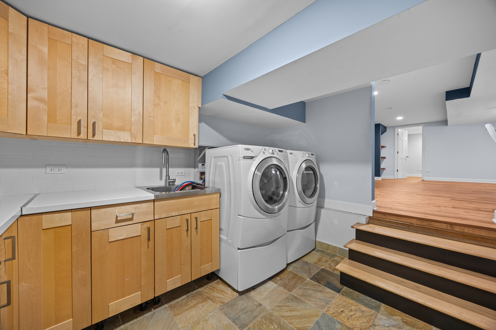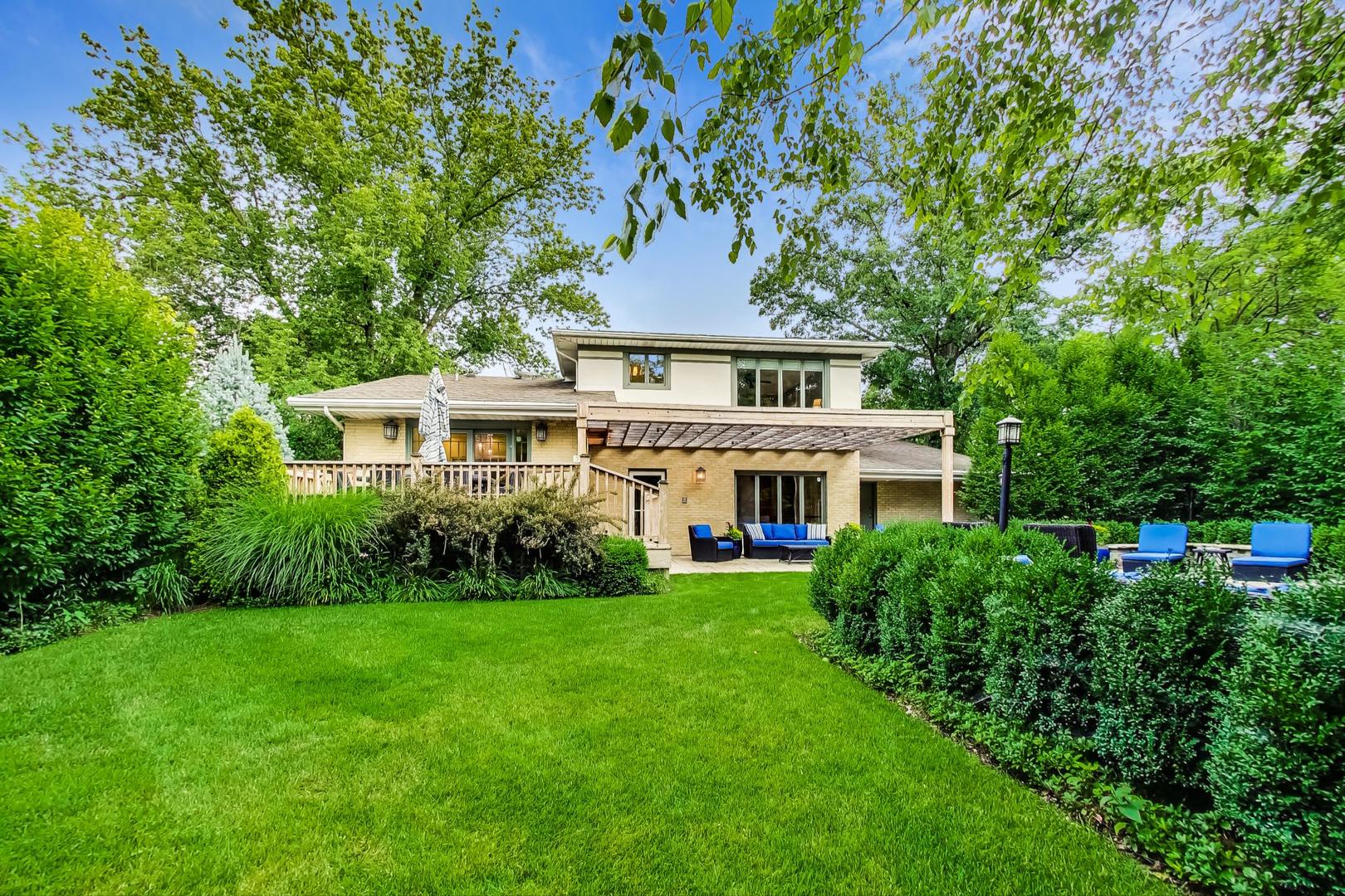 Tucked behind the historic Waller Gates on Auvergne Place, this home offers an impressive mix of livable space and resort-style outdoor amenities. The private backyard is thoughtfully designed with bluestone patios and walkways, an in-ground pool, multiple areas for entertaining, a pergola, a deck off the kitchen, and a convenient pool room for storage and changing. Inside, the home features a flexible and well-designed floor plan. A beautiful first-floor family room with custom built-ins and a wet bar, along with a modern kitchen featuring quartz countertops and an island, formal dining room, separate living room, and a large first-floor office that could function as a main-level primary bedroom. A mudroom with generous storage connects directly to the garage. The second floor offers four spacious bedrooms and two full baths, including a private primary suite. A finished basement provides additional living space with a full bath, laundry area, and updated flooring. An excellent location close to the Metra, Lincoln Elementary, and an easy route straight down Lake Street to Whole Foods, Jewel, River Forest Town Square and Downtown Oak Park completes the package.