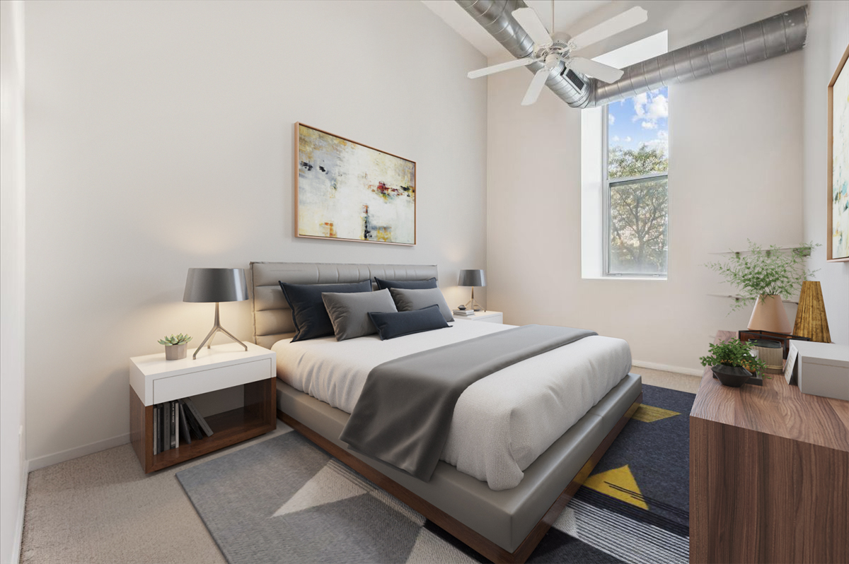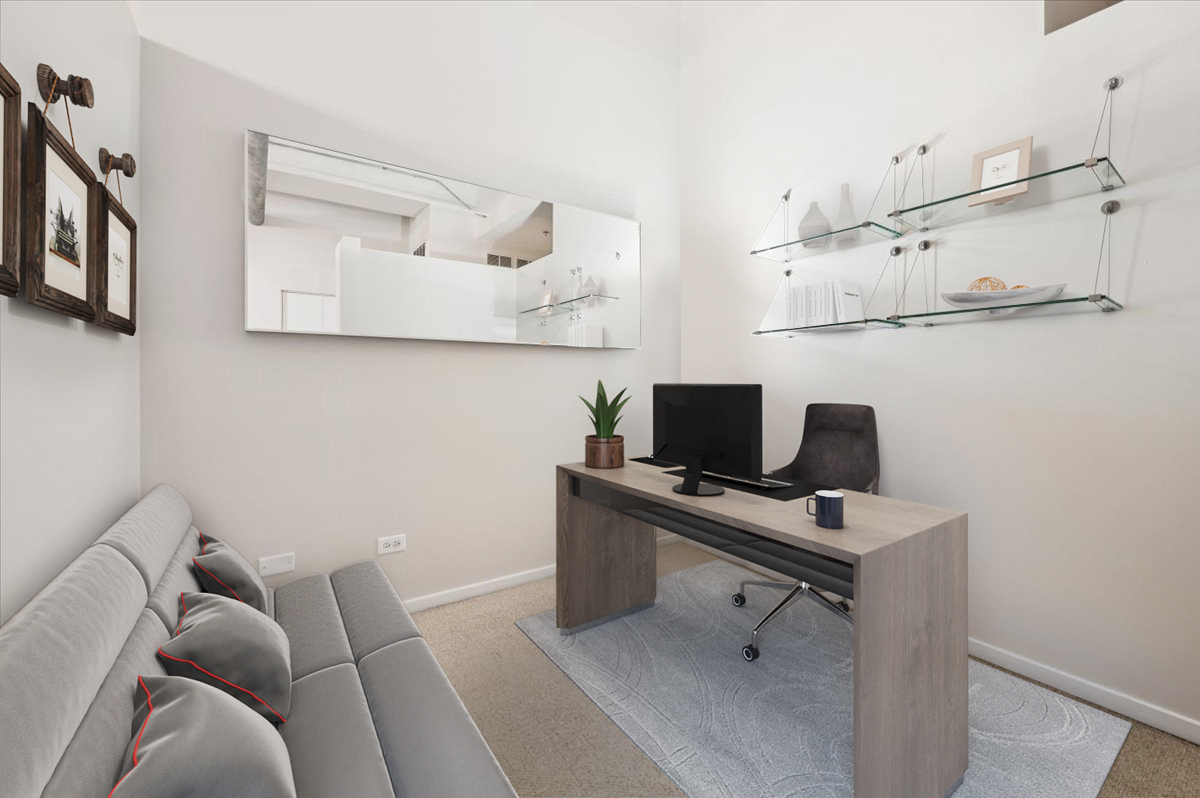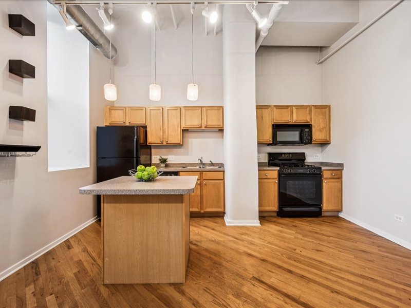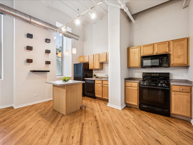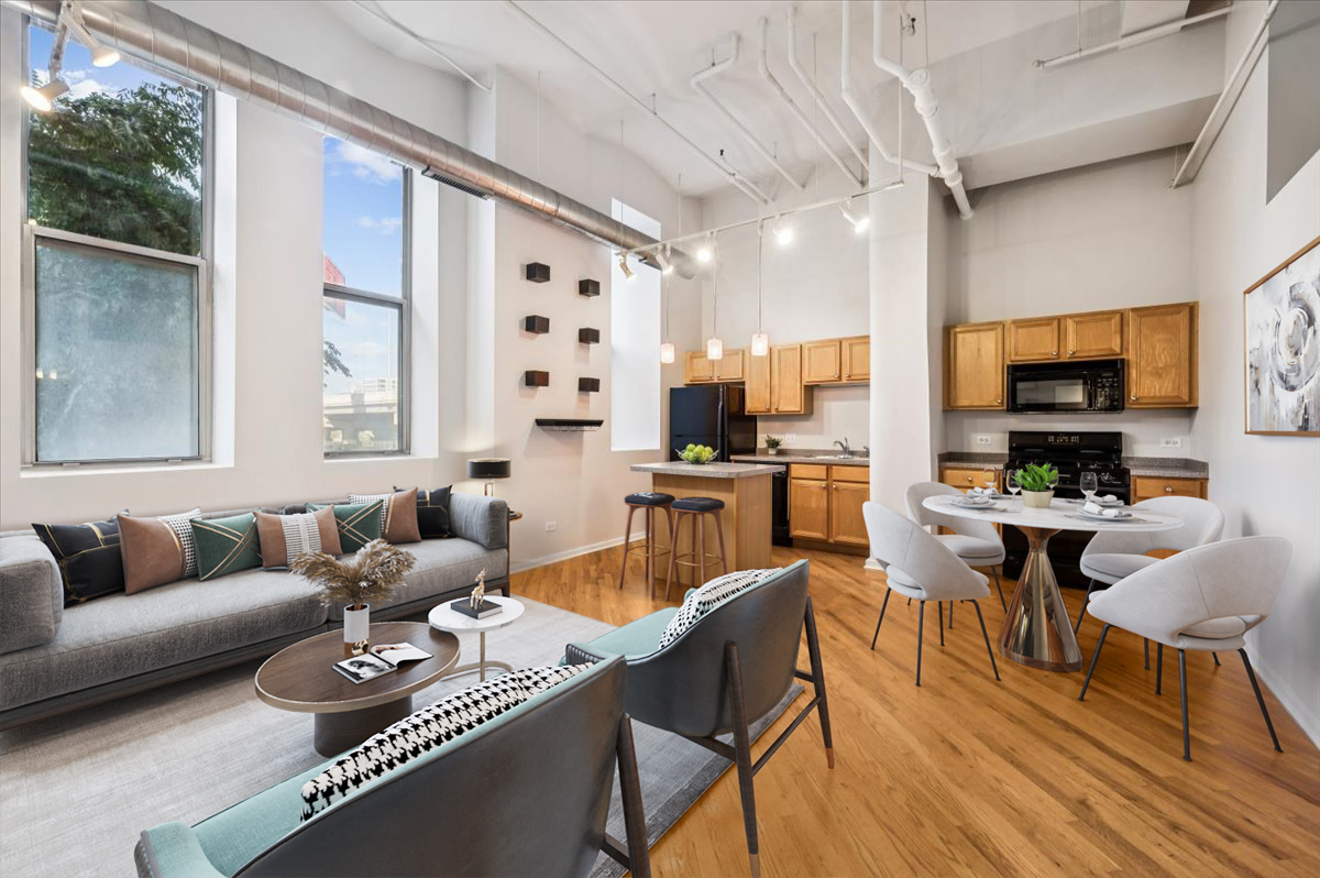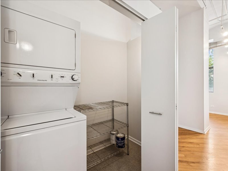 Live the Fulton Market Lifestyle! This light-filled 2-bedroom, 1.1-bath home is move-in ready and filled with character. Step inside the foyer to a bright and airy living/dining room featuring real hardwood floors, oversized windows with deep ledges, and a cozy fireplace and soaring 12′ ceilings. The open kitchen offers abundant cabinetry and a spacious island with seating-perfect for cooking, entertaining, or casual meals. The primary suite provides a serene retreat with large windows, a walk-in closet, and an en-suite bath with a vanity and soaking tub/shower. The lofted second bedroom is ideal as a home office, guest space, or creative studio. In unit laundry adds to the convenience. Completely painted in neutral color throughout and new blinds. Deeded indoor parking is included, adding convenience to this already perfect home. Just outside your door, enjoy all that Fulton Market has to offer-award-winning restaurants, vibrant nightlife, shopping, and easy access to public transit and downtown.