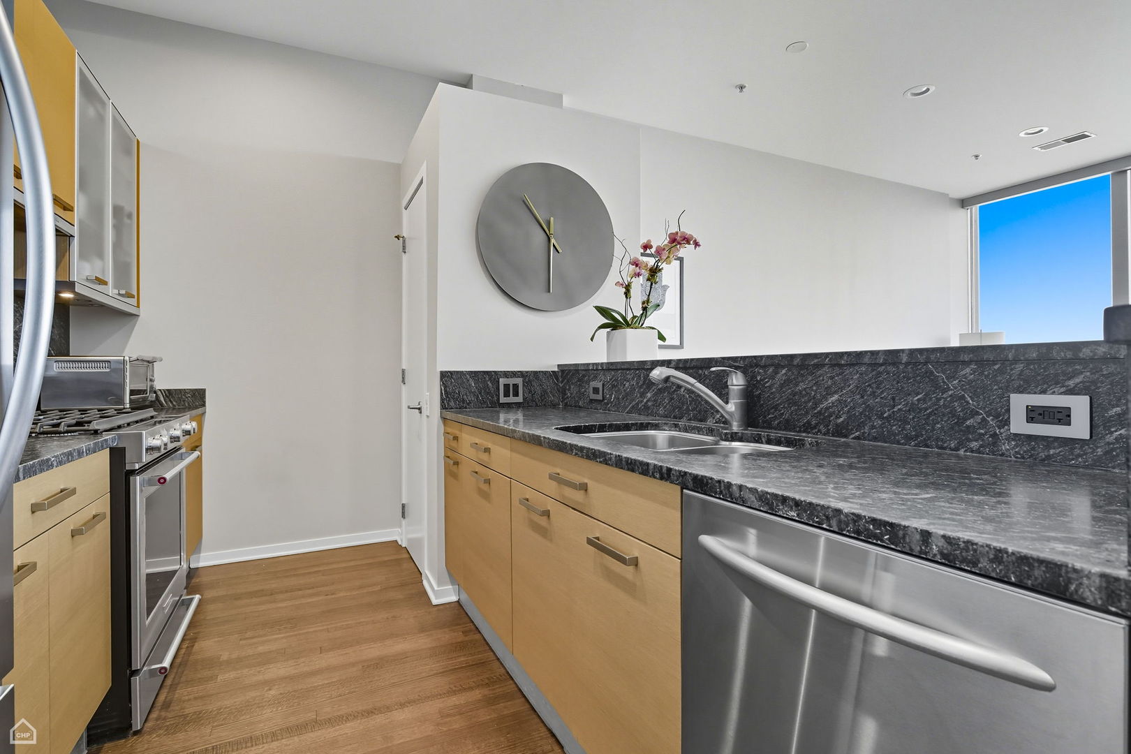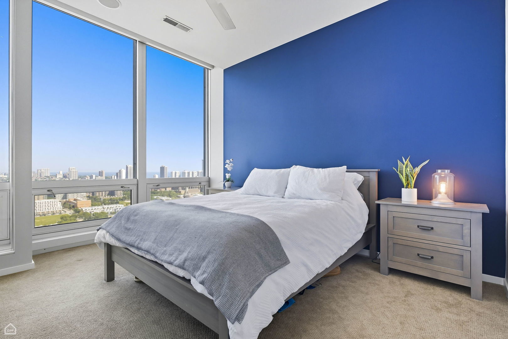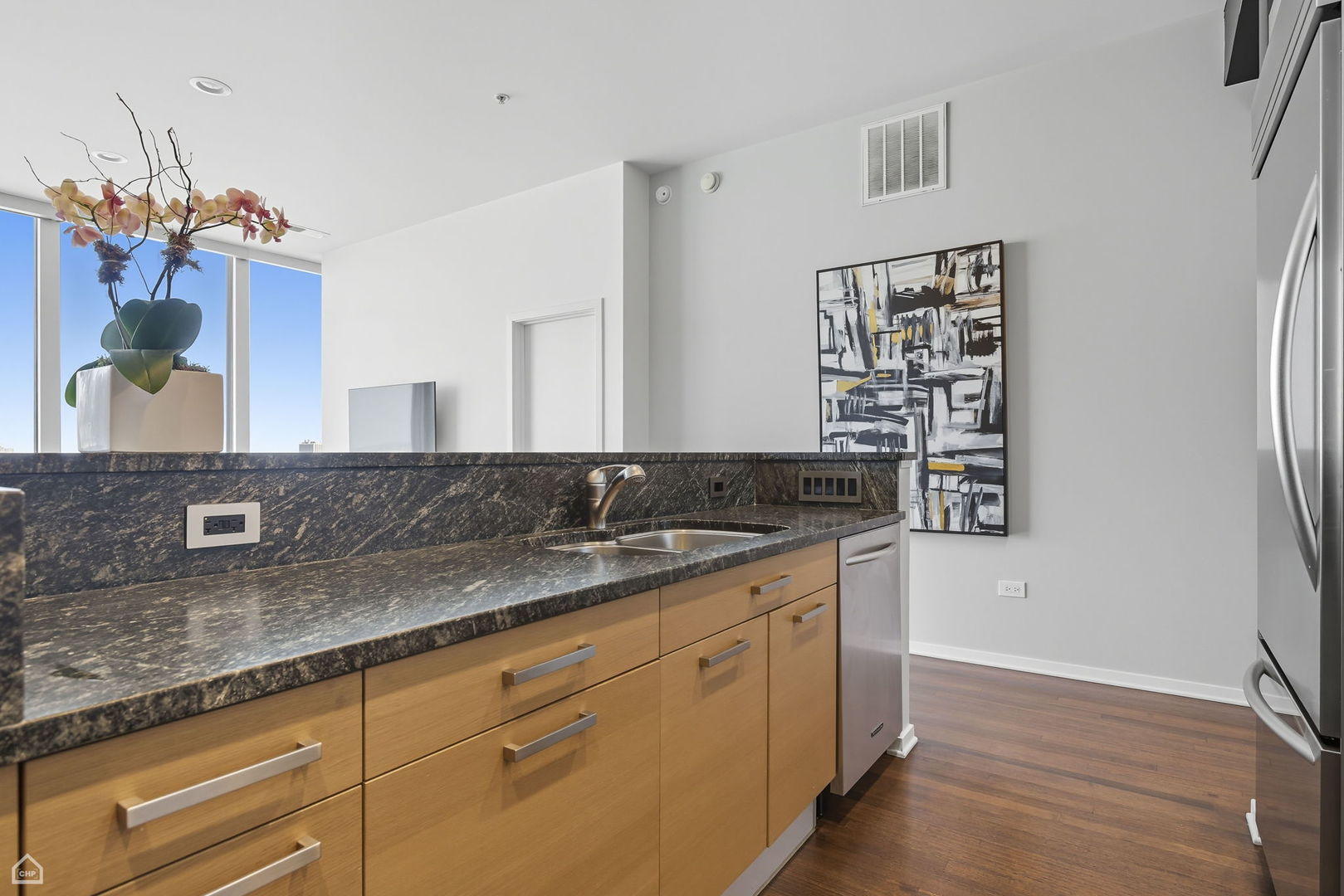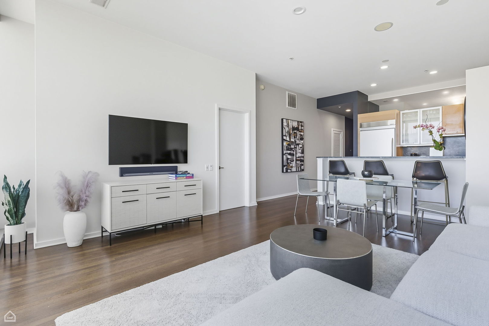 Welcome to your new home at The Montgomery, one of River North’s most iconic addresses. This is not just another Montgomery listing. This is the rare high floor, large second bedroom, view of the lake, and tandem parking you have been waiting to find. This luxury true 2-bedroom, 2-bath residence combines modern design with timeless comfort, offering the perfect balance of warmth and sophistication to live a joy-full life. Step inside and experience soaring 10′ ceilings, expansive floor-to-ceiling windows that flood the space with natural light, and open-concept living designed for both style and ease. The thoughtful split-bedroom layout ensures privacy, while the rare oversized second bedroom-large enough for a queen bed with double closets-offers versatility that most River North high rise homes can’t match. Designer finishes elevate every detail: gleaming hardwood floors, a chef’s kitchen with stainless steel appliances and soapstone counters, custom Elfa closets, built-in speakers for home audio, and custom motorized shades for effortless comfort to get the best of your floor to ceiling windows when you want them and when you don’t. The primary suite features room for a king bed, two closets, and a chance to wake up feeling like you are on top of a mountain and calming lake views. Plus a retreat to marble tile and a dual vanity for everyday luxury and comfort. This home also includes in-unit laundry. Additional storage. And premiere perfectly situated heated garage tandem parking space that is close to the elevator and not next to a concrete post (+40K). Beyond your front door, The Montgomery delivers five-star amenities the moment you arrive: newly landscaped front circle drive for easy guest drop off and deliveries and a landscaped lobby terrace where even waiting for a ride can be an enjoyable experience. 24-hour door staff. Fitness center. Rooftop deck with stunning skyline views. Gated dog park to make the worst wintry days not so bad. Giant outdoor patio experience with seating and fire pits fit for a luxe vacation. And the easiest morning routine in the world with The Gardner Pre-School attached to the building (with open spots for enrollment). Phenomenal location, access to Larrabee Dog Park, Erie Cafe, Starbucks, Ward Park Playground, River Walk and a variety of grocery stores, shopping, top restaurants, gyms and vibrant nightlife. Last time this sold it never went on market. Come see your new home today!
