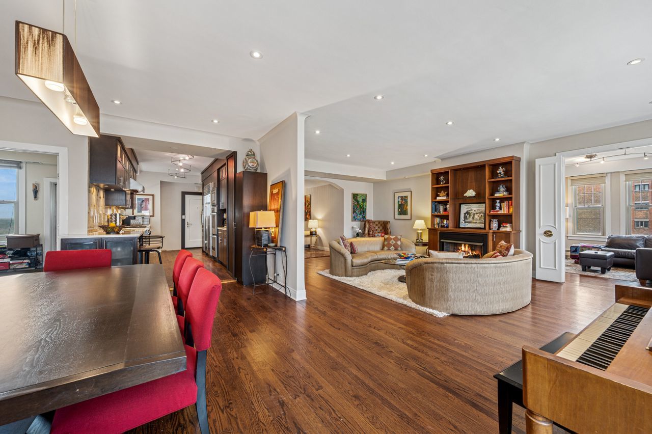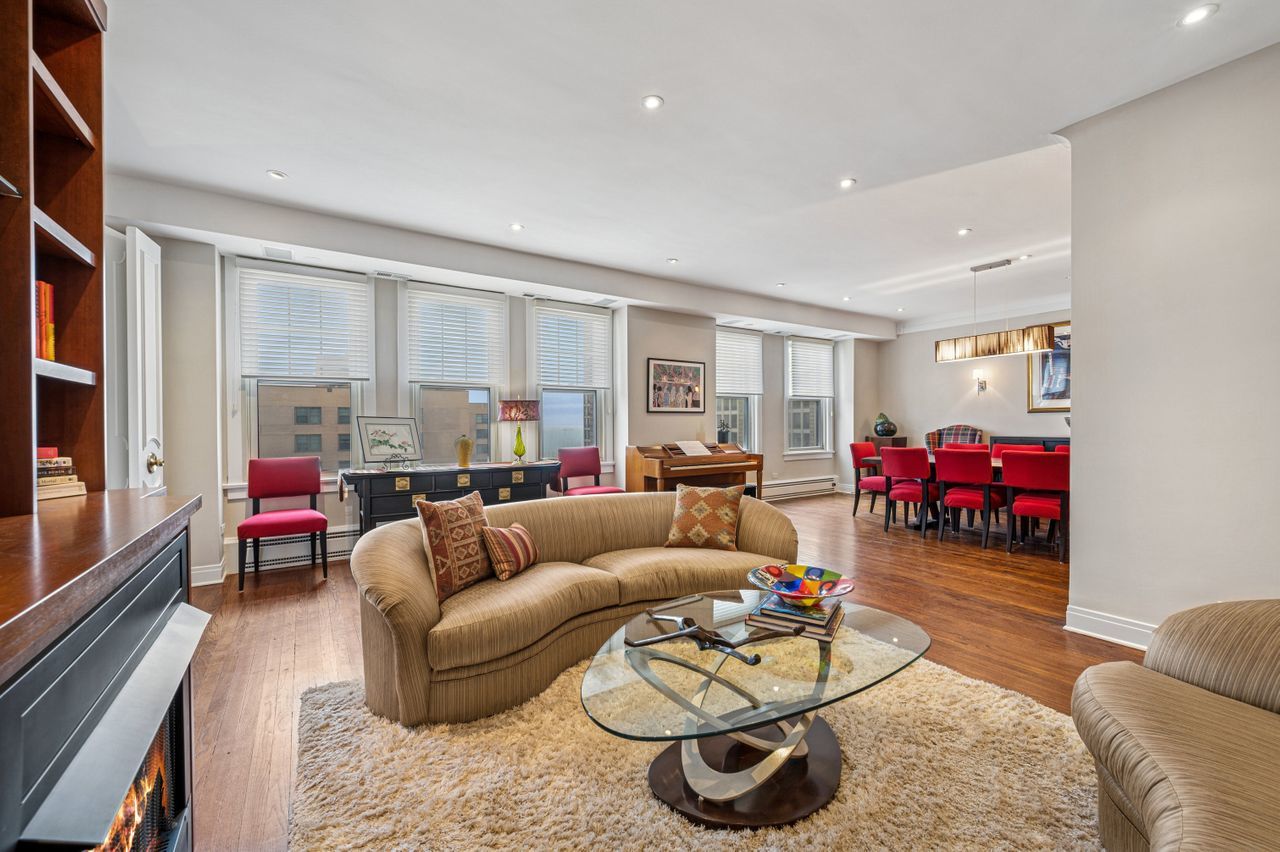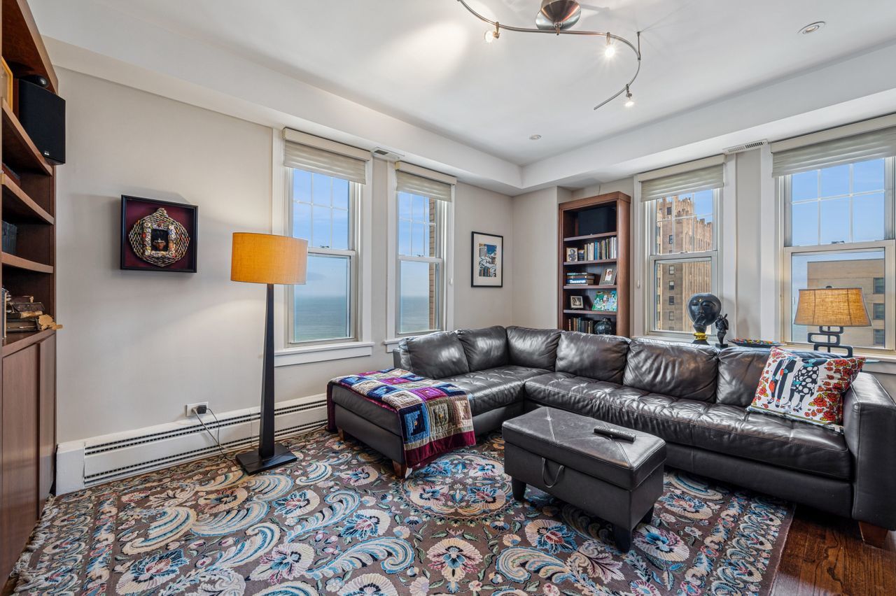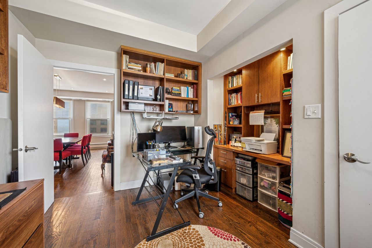 New Hyde Park prestigious vintage high-rise condo that features 2 beds +a family room, office & 2.2 baths. This high floor home is over 2200 SF & is ready to move in, all high end finishes, hardwood floors, ample built-ins and plenty of closet spaces. Upon entering the classic foyer, you enter an open floor living area with a fireplace surrounded by built-in cabinets for your precious possessions. Living room and connected dining room with spectacular lake views open to the galley chef’s kitchen with custom cabinets, Quartz counters, marble surround, and high-end appliances with Sub Zero refrigerator, Thermador stove, double ovens, microwave, 2 Bosh dishwashers and Dacor Espresso machine. There is a Bosh washer & dryer in the kitchen closet. The large primary bedroom has a huge walk-in closet and appealing views of the Chicago skyline. The 2nd bedroom with built-ins is connected to a comfortable family room with more built-ins for additional storage and books. A family room can be closed or open to a living room to create even more space. Office with many built-ins (once a maid room) is adjacent to 1/2 bath. The building is handicapped accessible, and the staff is very attentive. Building features: 24-hour staff, on-site management, secure parking with 2 electric charging stations. The building maintains healthy reserves while taking care of everything needed. Pet friendly building! Great location near Metra, Buses, Lakefront, stores and restaurants.