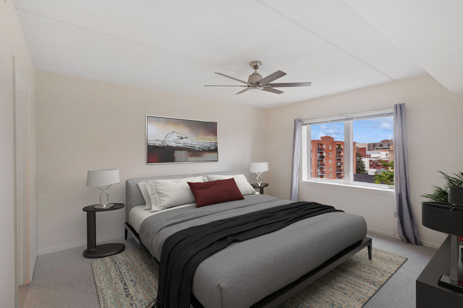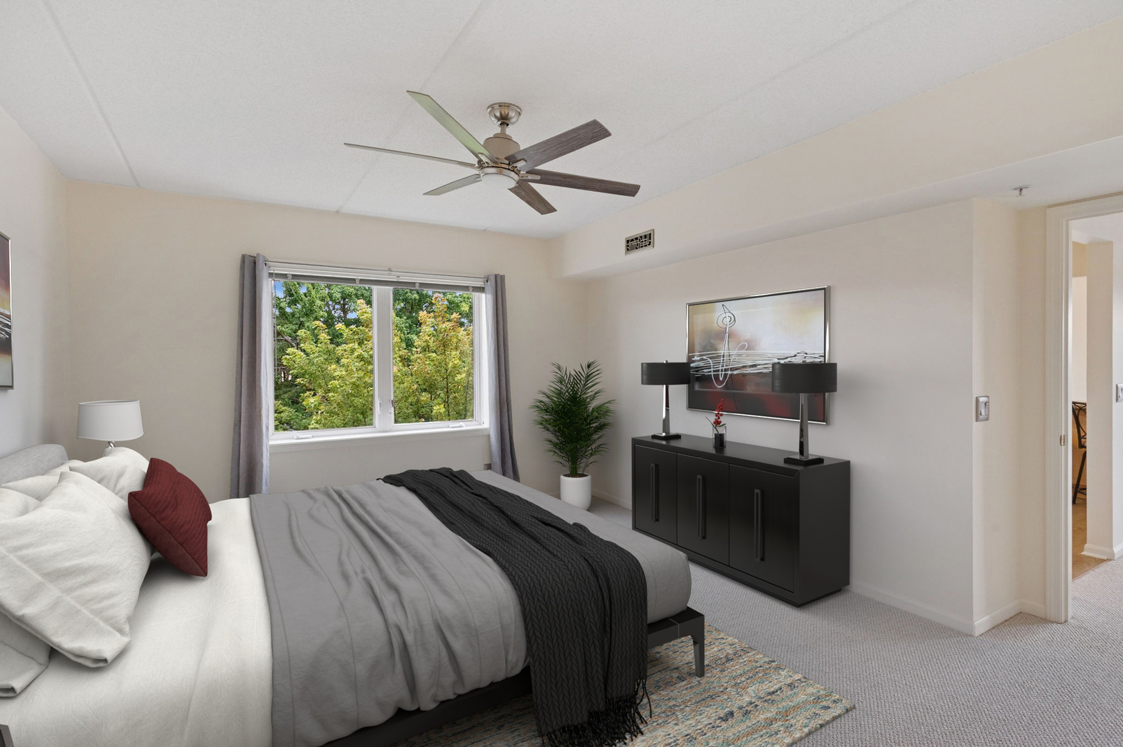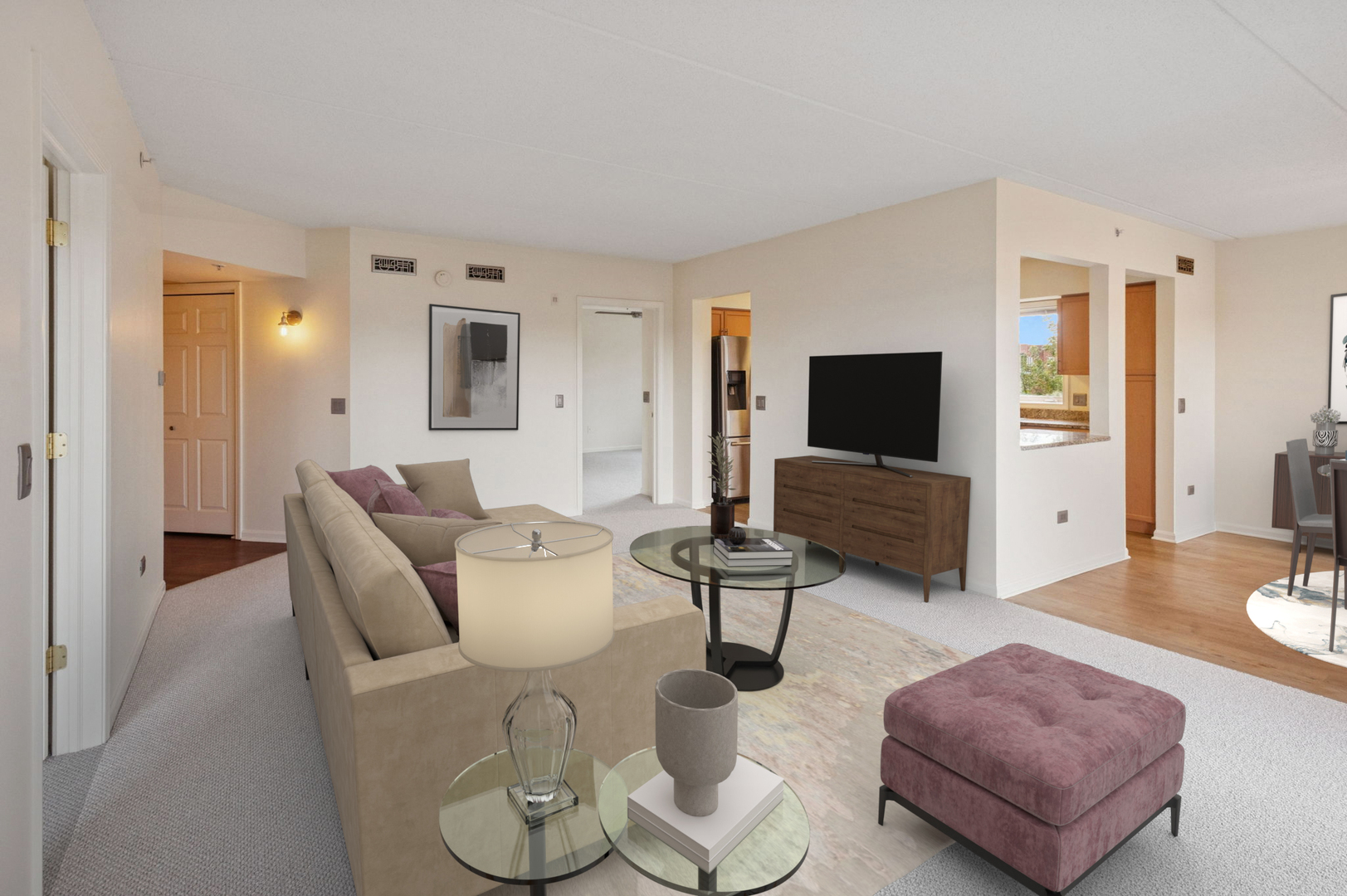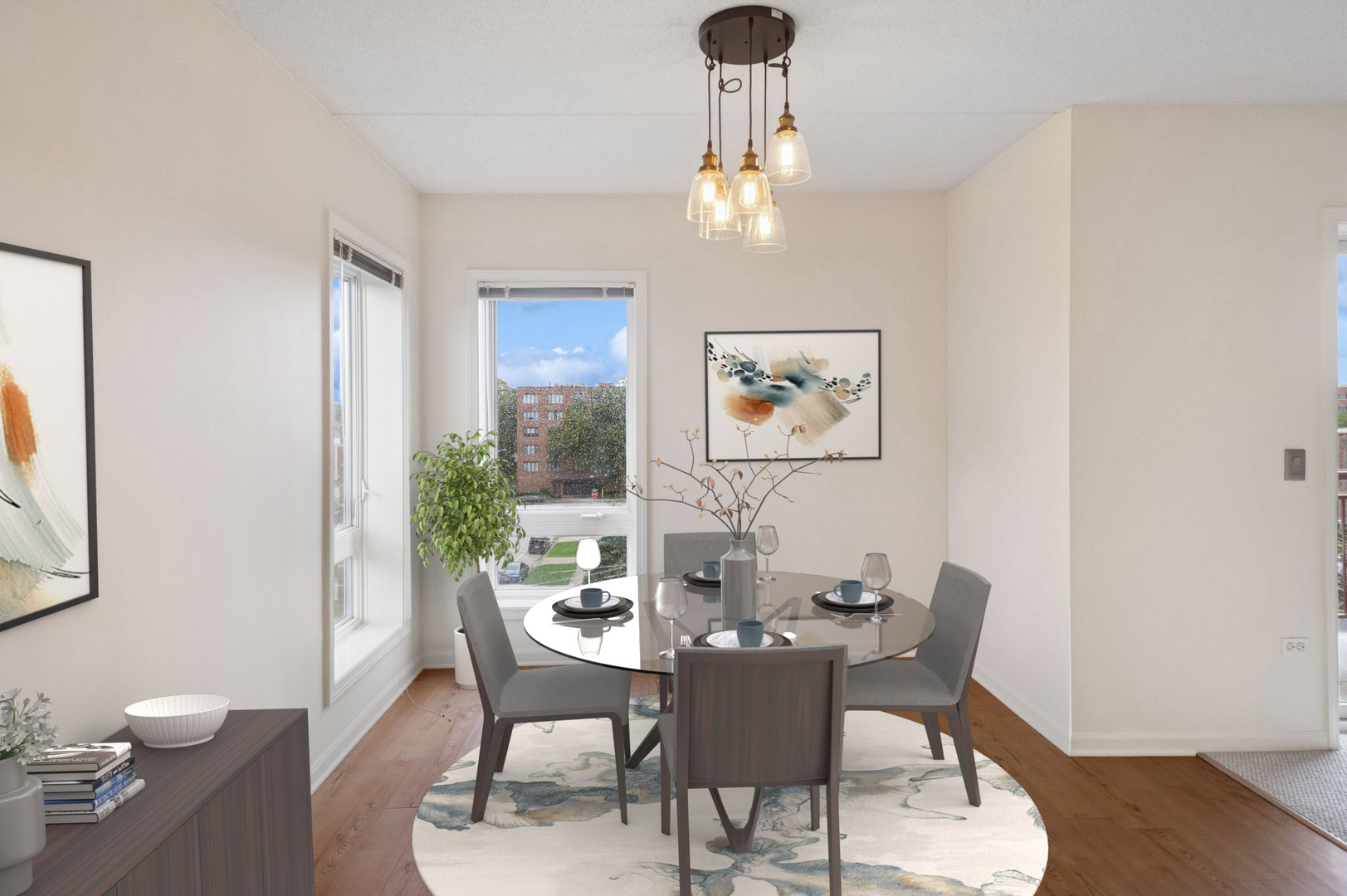 Spacious, sunfilled 2 bed, 2 bath corner unit with south and west views in elevator building located in sought after downtown Des Plaines! Enjoy living among the treetops with abundant sunshine from the large living room offering flexible layout for any lifestyle. Nicely appointed kitchen with granite countertops, stainless steel appliances and eat-in breakfast bar overlooking the separate dining room. Generous primary bedroom with en suite bath & walk-in closet. Great size 2nd bedroom with additional walk-in closet. Step out to the private balcony for neighborhood views and lovely sunsets. Convenient in-unit laundry room equipped with full size, side-by-side washer, dryer, utility sink, and linen shelf. Two parking spaces included, one assigned heated garage space and one unassigned exterior space. Unit also has heated floors, new carpeting and freshly painted. Ample storage throughout. Well managed building. Walking distance to shops, restaurants, Metra, library and all downtown Des Plaines has to offer!
