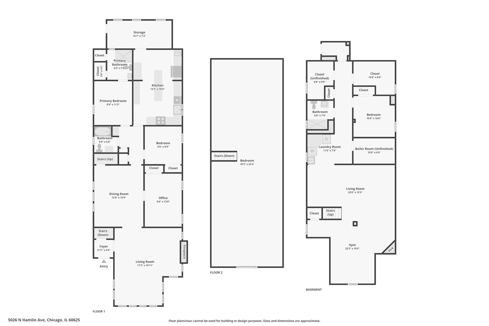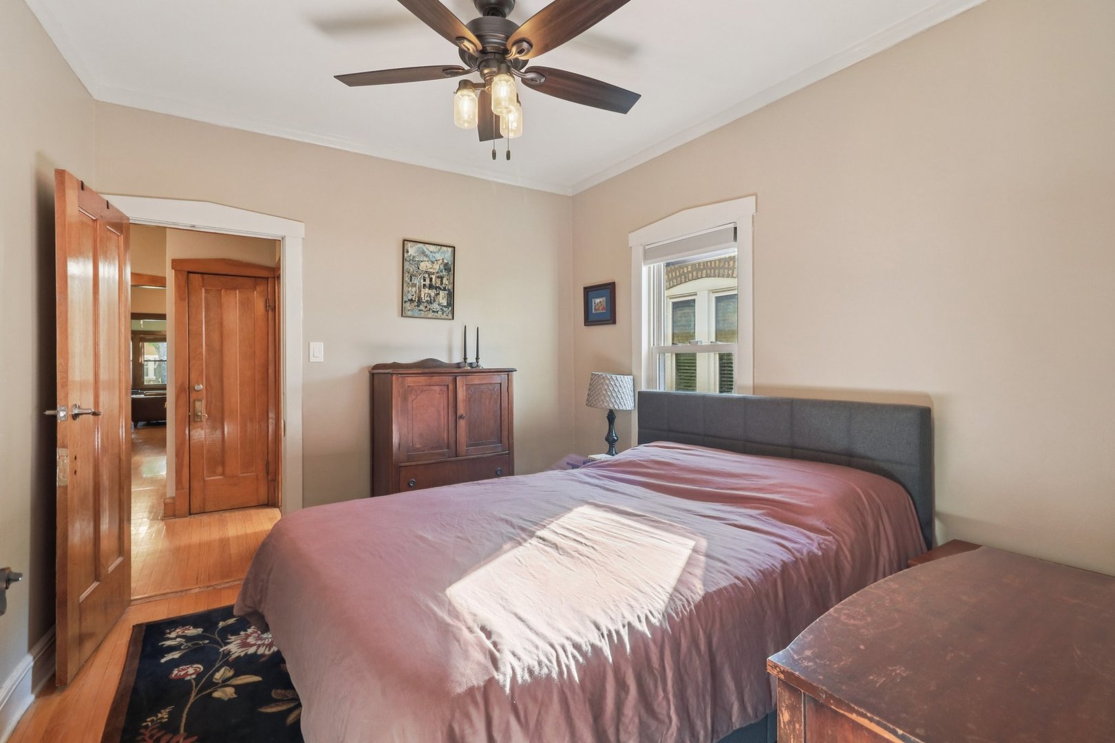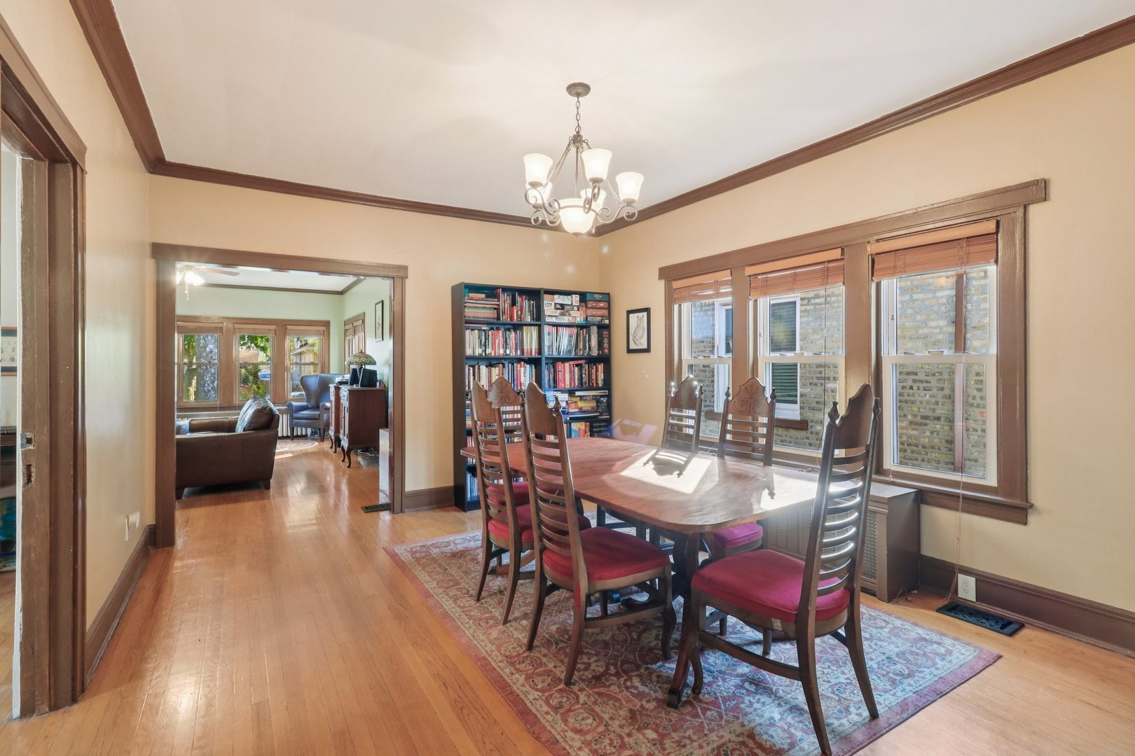 Beautifully updated between 2022-2025, this home blends vintage bungalow charm with modern upgrades. The first floor offers hardwood floors, stained glass, built-ins, and three bedrooms including a renovated primary suite. A fully remodeled kitchen with granite countertops, an 8 foot butcher block island, and new appliances (2024) including an induction range/air-fryer oven. Upstairs features a versatile finished space ideal for a gym, office, or extra bedroom. The lower level includes two bedrooms, laundry area with new washer and dryer (2022), a full bath, and a spacious rec room. Basement has the potential to be converted back into an ADU with buyer’s due diligence. Other major updates include a new furnace and A/C (2023), electric fireplace, heat-pump water heater (2024), and energy-efficient solar-assisted heat pump with mini-split units with backup natural-gas radiant heat. Fresh paint throughout. Enjoy the private backyard oasis with brick patio, garden pergola, and vegetable garden. Prime location near Eugene Field Park, the Chicago River, public transportation and the Argyle greenway bike path. Walking distance to multiple grocery stores and local dining options. Acquisition of Spooky Halloween fence is negotiable.