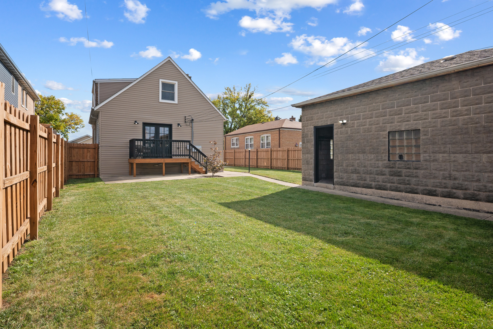 Welcome to this beautiful property in Garfield Ridge. This move-in ready home features an open concept with a warm and inviting kitchen, living room and dining room. The kitchen, living room and dining room windows bring in natural light throughout the day. The kitchen includes black stainless steel appliances, cabinet front dishwasher, and kitchen island. Bedrooms are located in the first floor, basement, and in the second floor with front and back entrance to the space. Three full bathrooms located in this house. Full basement bathroom with gorgeous shower and double sink. Full first floor bathroom with tub and another full bathroom in the second floor. Going towards the back of the home you will find a beautiful back porch with french doors facing the backyard. You can either use the deck entrance or the back side door to get inside the home. This home is also sitting in an oversized lot with gated driveway, fence and oversized garage with tall doors. You may find yourself having plenty of room for your parties, cookouts, etc, with plenty of grass area and parking. This home is sold ASIS.