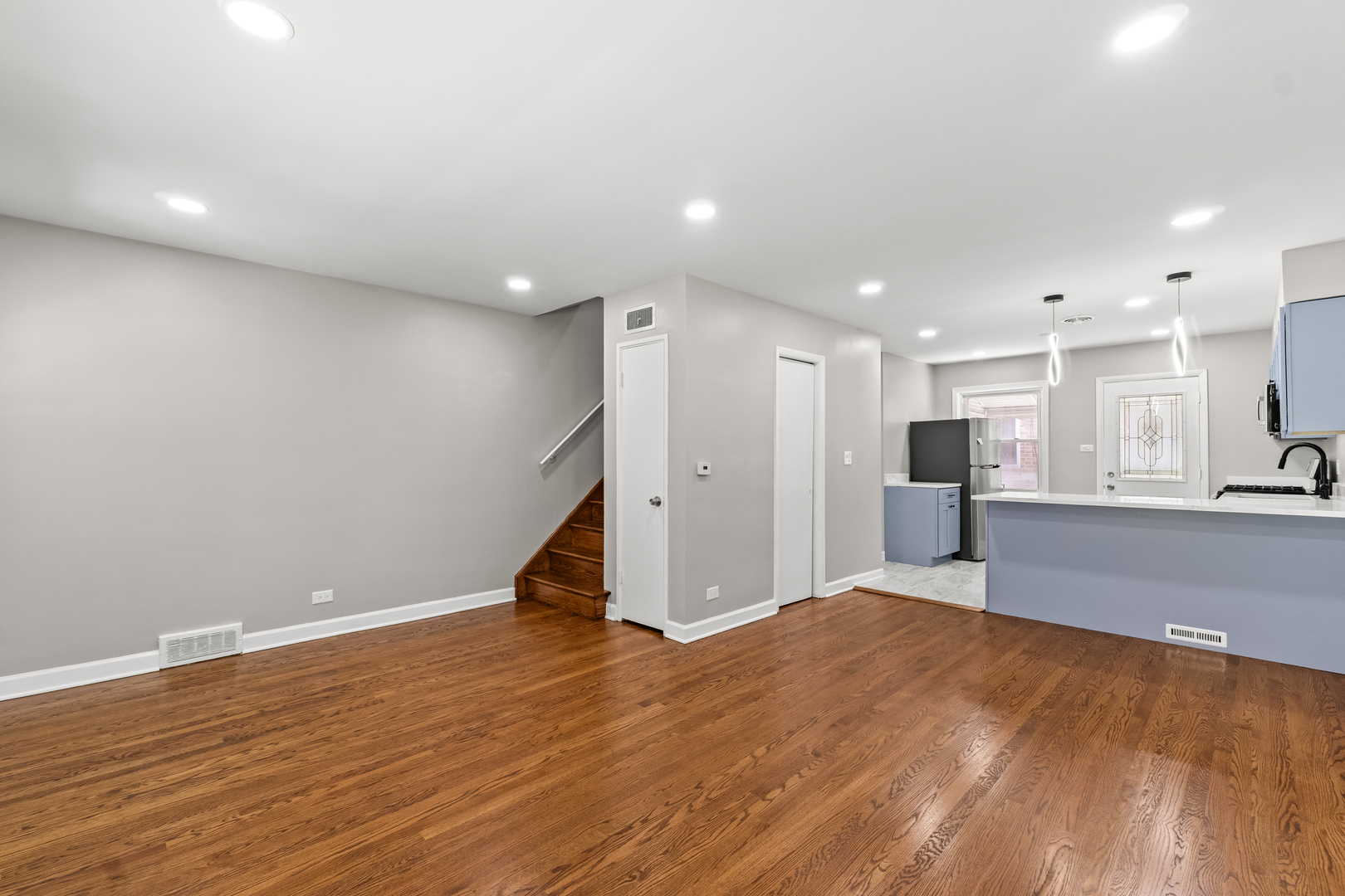 Welcome home to this beautifully renovated Townhouse! The main level features a bright living room with stunning hardwood floors that flow seamlessly into a modern kitchen, complete with white cabinets and quartz countertops. You’ll also find a convenient half bathroom and plenty of closet space on this level. Upstairs, there are two bedrooms. The spacious main bedroom includes two closets, while the second bedroom offers a generous closet of its own. A fully remodeled bathroom with modern finishes completes the second floor. The basement provides additional living space, perfect for a family room, home office, or even an extra bedroom-giving you flexibility to fit your lifestyle. Located in a convenient area with easy access to public transportation, shopping, and more, this home combines comfort and functionality in one stylish package.