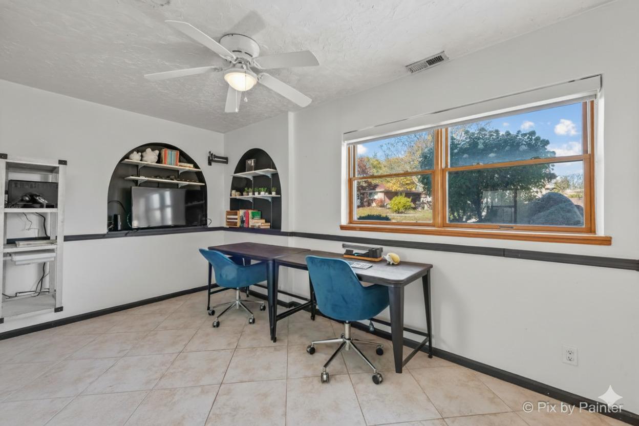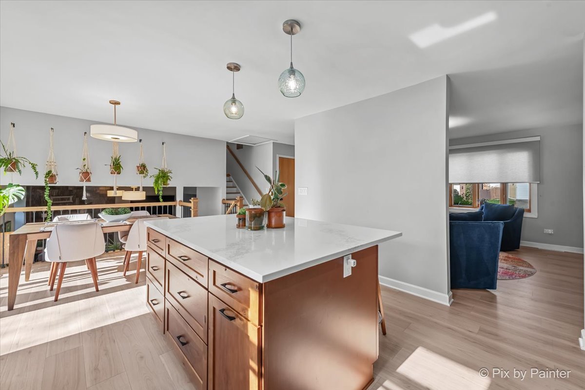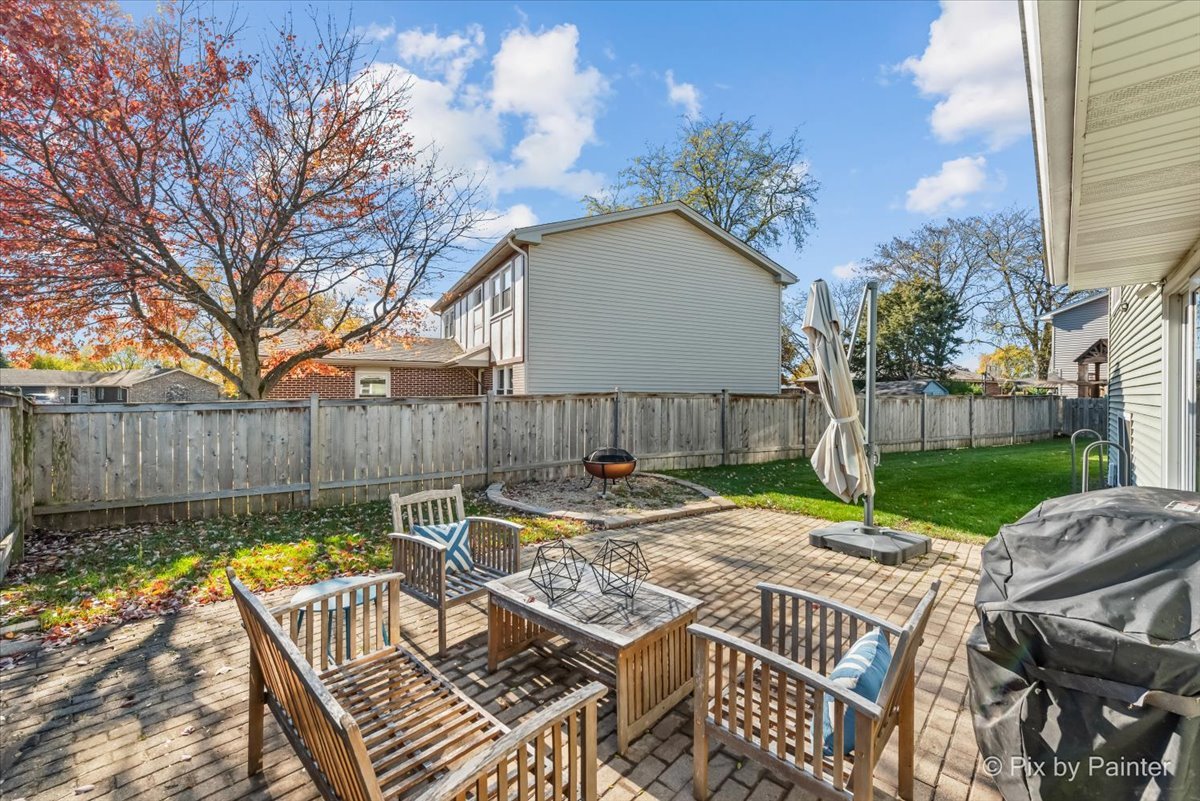 Fantastic, updated split-level home with 3 bedrooms, 2 baths, office and 2-car garage on a spacious corner lot in the Western Trails subdivision is lovely inside and out! Step inside to an open living room with a big bay window bringing in tons of natural light and LVP floors that flow through the main level. The updated kitchen has ample custom slow close cabinets with huge lazy susan, pull out drawers and amazing storage, quartz counters, stainless steel appliances, center island with seating space and eat-in area with glass sliders that lead to the back patio. A few steps down is the family room with a beautiful wood-burning fireplace. Private office with great built-ins and a full bath with step-in shower completes the lower level. Head upstairs to the master bedroom with hardwood floor, walk-in closet, and private access to the shared bathroom with dual sinks and shower over tub combo. 2 additional roomy bedrooms with hardwood floors and fresh paint. Relax outdoors on the brick paver patio or in the greenspace of the fully fenced in backyard. Walking distance to elementary and high schools, Armstrong Park and nearby endless shopping and dining!