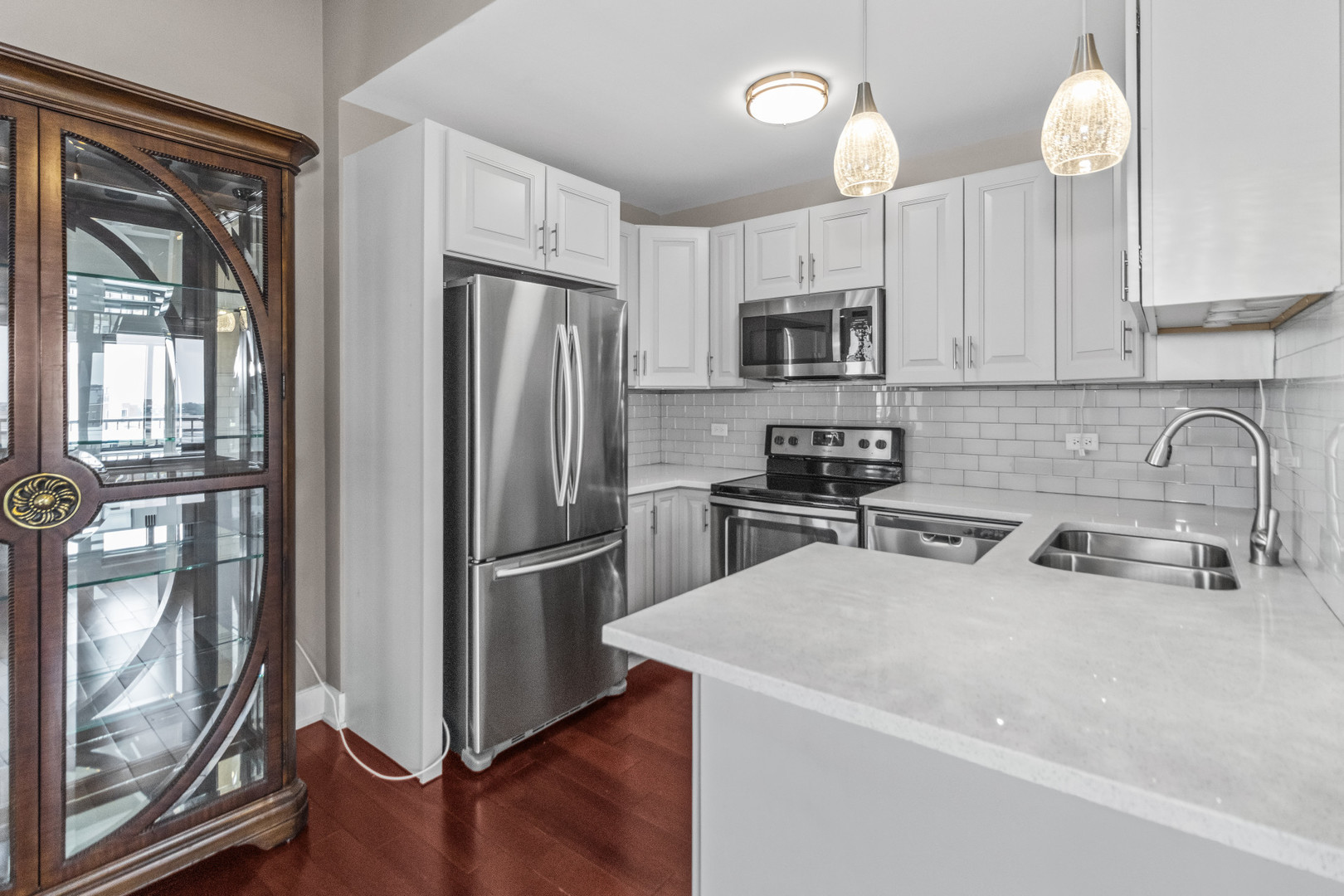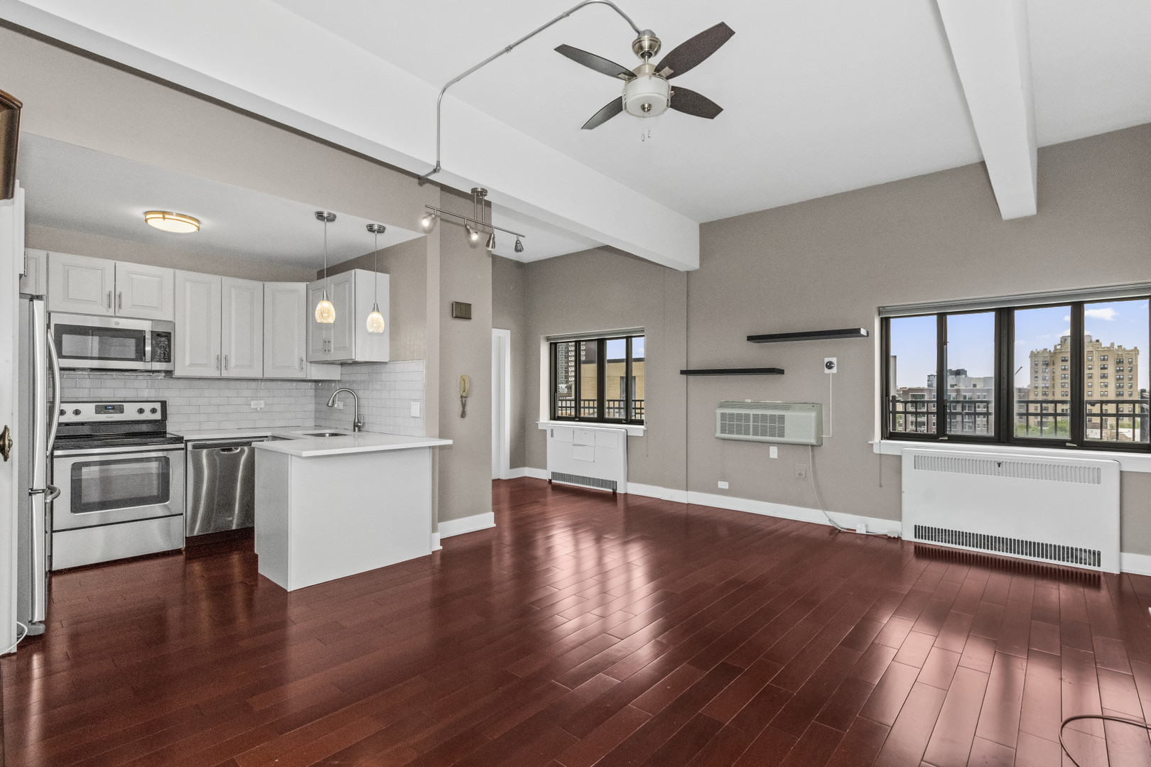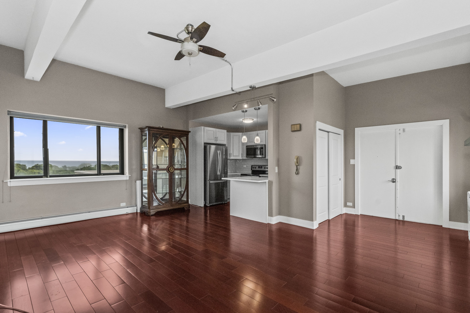 Experience Urban Serenity in this Stunning Penthouse Retreat! Welcome to your private oasis atop a historic landmark Art Deco building, beautifully transformed in 2018. This spacious open-concept penthouse boasts soaring 16-foot ceilings and breathtaking eastern and western exposures, flooding the space with natural light and offering unobstructed panoramic views of the shimmering lake – a true sanctuary in the heart of the city. Step inside to find rich mahogany hardwood floors that exude warmth and sophistication. The chef’s kitchen is a culinary dream, featuring sleek stainless steel appliances-including an electric range, over-the-range microwave, dishwasher, and a French door refrigerator with ice maker-paired with elegant white marble quartz countertops and solid wood cabinetry for ample storage. The versatile second bedroom boasts a charming floor-to-ceiling bookshelf with a classic ladder, perfect for your library or workspace. Whether relaxing or entertaining, you’ll appreciate the airy ambiance created by the high ceilings, generous windows, and access to the roof terrace. This exceptional building offers 24-hour security, a modern gym, a tranquil private courtyard with a fountain, a stylish party room, laundry facilities, and parking options nearby. Located just minutes from Mariano’s, Foster Beach, Montrose Beach, and the vibrant shops, bars, and restaurants of Andersonville. Conveniently close to Lakeshore Drive, CTA bus stops (147, 92), and the Red Line, making city commuting a breeze. Discover the perfect blend of historic charm and modern luxury – your urban sanctuary awaits!