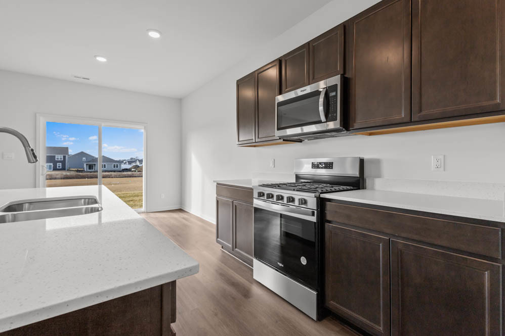 Prepare to be wowed at 505 Arbor Ridge Dr in Hampshire, Illinois. A beautiful new Henley floor plan in our Prairie Ridge community. This home will be ready for an early year move-in! This scenic home site includes a fully sodded yard. This open concept Henley plans offers 2,600 square feet of living space with 4 bedrooms, a loft, 2.5 bathrooms and a 1st floor flex room. Entertaining will be easy in this open-concept kitchen, dining and family room layout with a large island with overhang for stools. Additionally, the kitchen features a walk-in pantry, designer soft close cabinetry, modern stainless-steel appliances, quartz countertops, and easy-to-maintain luxury vinyl plank flooring. For everyday ease, enjoy coming home to a large mud room right off the garage which also leads to a huge 1st floor walk-in storage closet. Plus, the 1st floor flex room offers a flexible space for an office, playroom, or create a formal living or dining room. As you head upstairs, you’ll first notice even more space waiting in the 2nd-floor loft, offering unlimited potential like a movie room, 2nd family room, playroom or study/work area. Escape to your private getaway in your large primary bedroom and ensuite bathroom with dual sinks, quartz top vanity, and walk-in shower. Convenient 2nd floor walk-in laundry room, 3 additional bedrooms with a full second bath and linen closet complete the second floor, Need more space? This home also includes a huge, blanket wrapped insulated basement! All Chicago homes include our America’s Smart Home Technology. Photos are of similar home, actual home may vary.