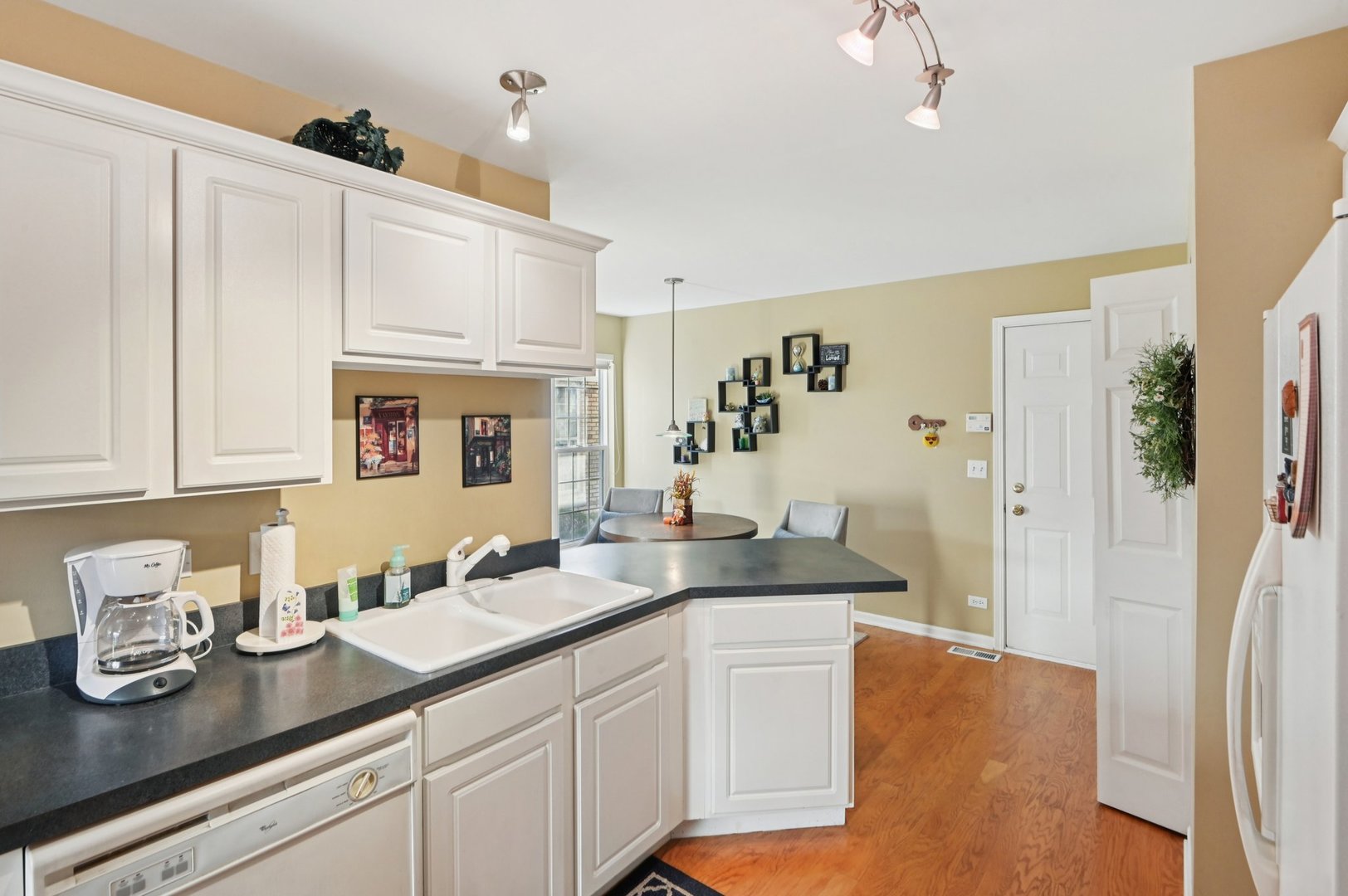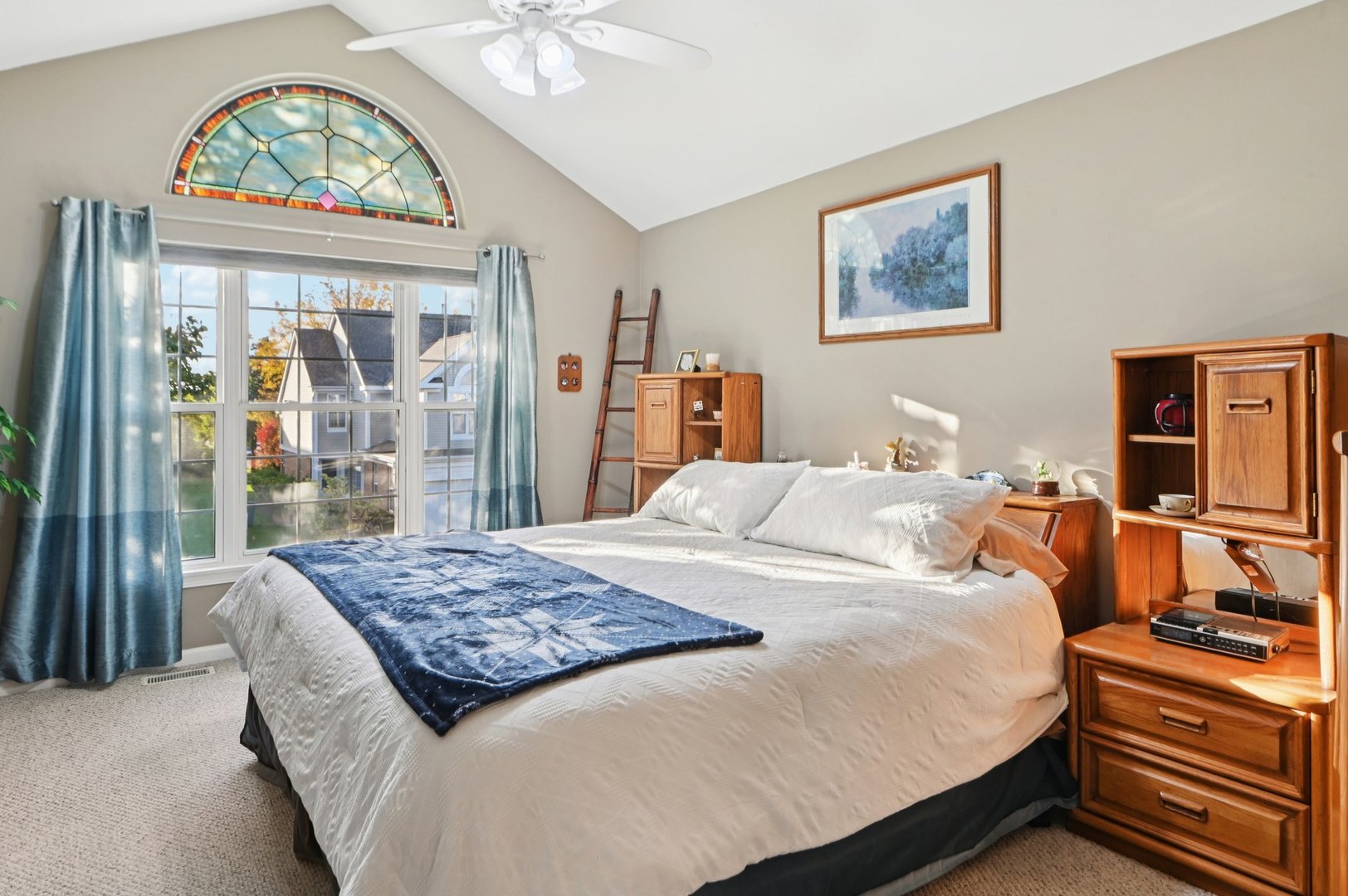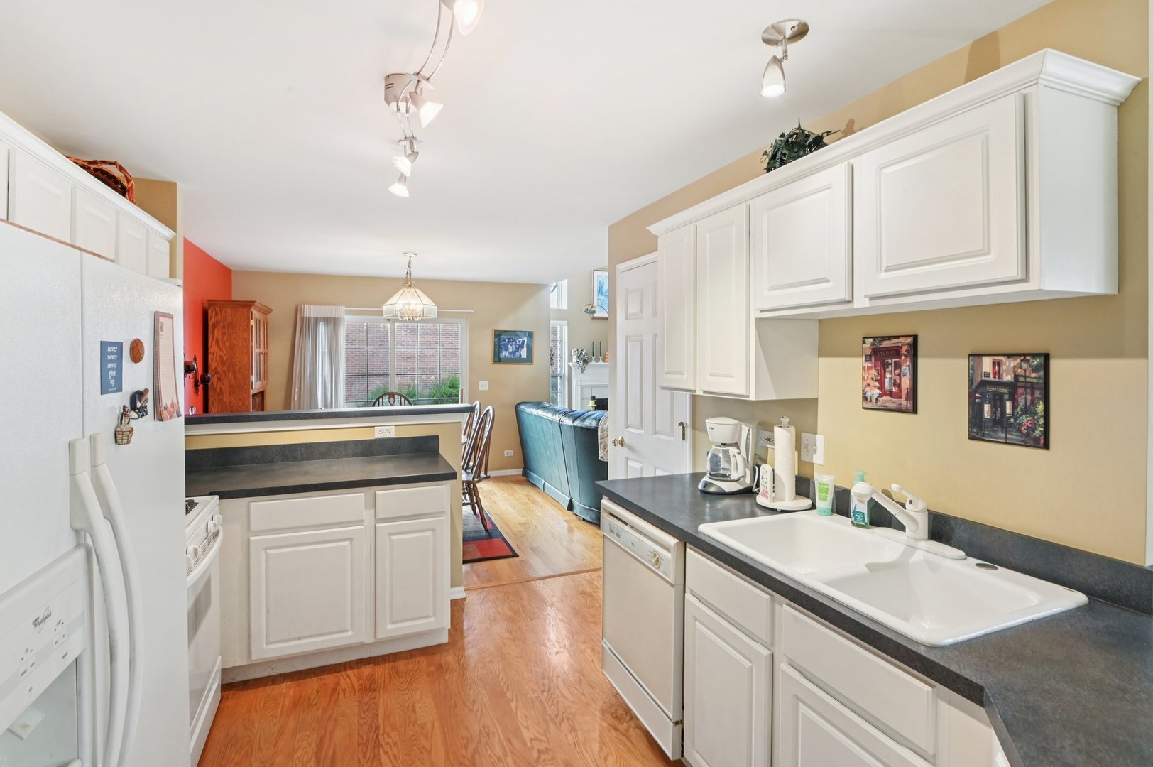 Beautiful 2-bedroom, 2.5-bath townhouse in the highly sought-after and private Citadel on the Lake community. This exceptional home blends comfort, style, and convenience in a thoughtfully designed layout. An inviting entryway opens to a dramatic living room with floor-to-ceiling windows, skylights, hardwood floors, and a cozy gas fireplace. The open-concept design flows seamlessly into the dining area and out to a spacious patio-perfect for entertaining or relaxing outdoors. The bright kitchen offers plenty of cabinet space, updated finishes, and a sun-filled breakfast nook. Upstairs, the primary suite features vaulted ceilings, a large walk-in closet, and an ensuite bath with dual vanities, a soaking tub, and a separate shower. A second bedroom, full bath, and a versatile loft-ideal for a home office or sitting area-complete the upper level. The fully finished basement adds valuable living space with built-ins and abundant storage. Conveniently located near top-rated schools, Ty Warner Park, Westmont Fitness Center, FMC Natatorium pool, shopping, and with easy access to major highways, this move-in-ready home offers the perfect blend of privacy, comfort, and modern living.